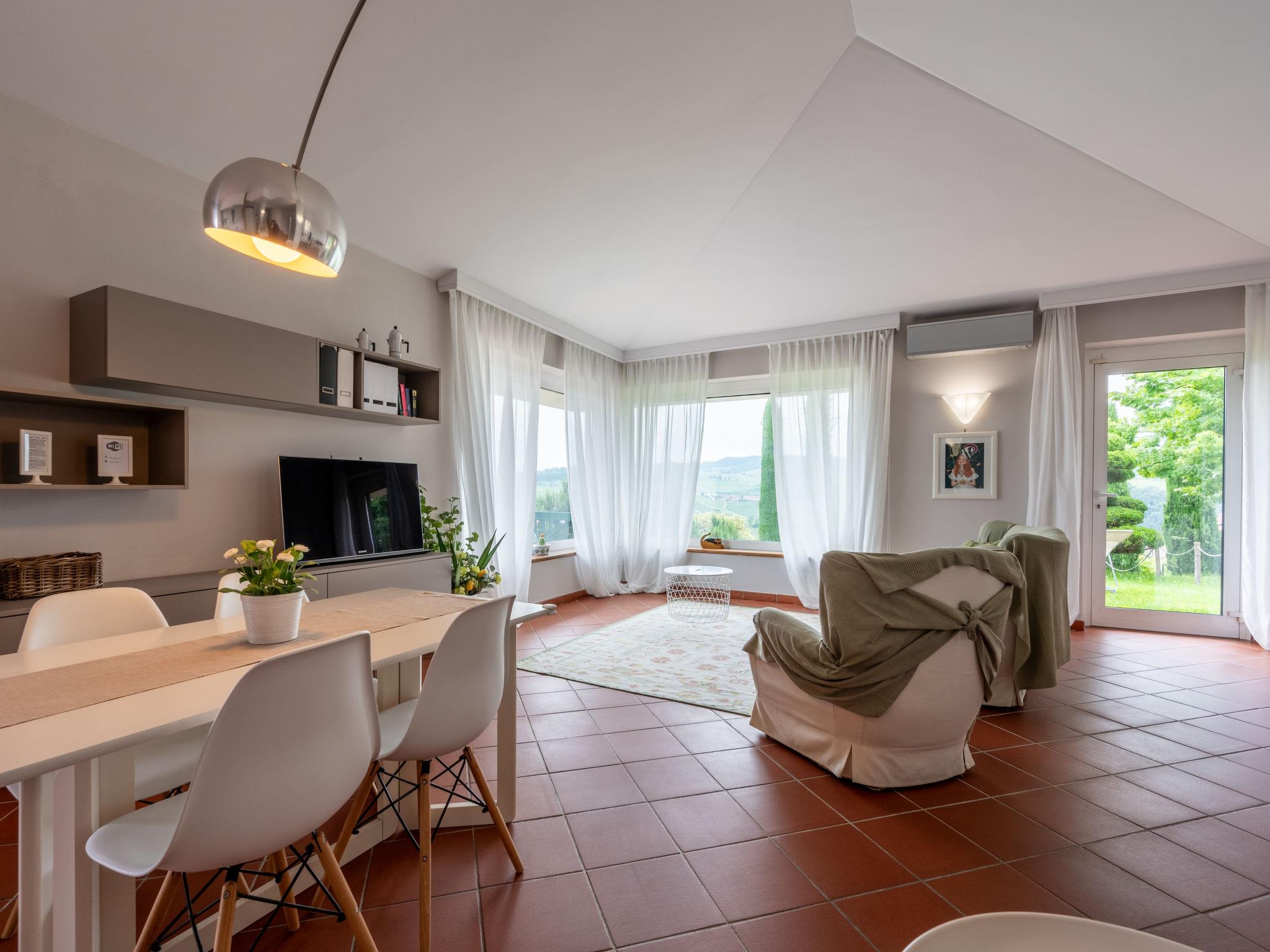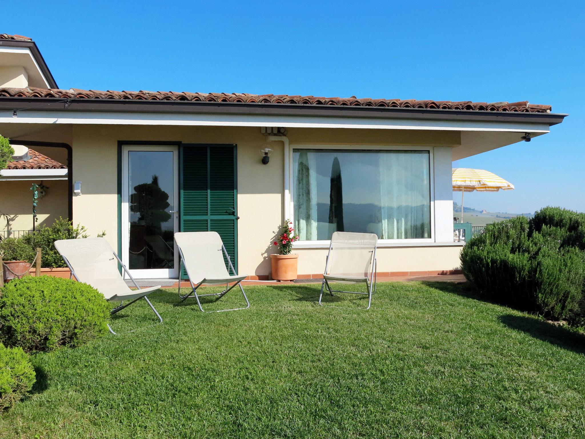 3-room semi-detached house 140 m2, on the upper ground floor. Bright, tasteful and cosy furnishings: living room with satellite TV. Exit to the garden. 1 double bedroom. 1 room with 1 french bed (140 cm). Open kitchen (oven, dishwasher, 4 induction hot plates, toaster, kettle, microwave, freezer, electric coffee machine) with dining table. Exit to the terrace. Shower/WC. Underfloor heating. Heating available only from 01.10. to 30.04. Natural stone floors. Terrace 40 m2. Terrace furniture, barbecue (portable), deck chairs (4). Panoramic view of the countryside and Castello di Barolo. Facilities: children's high chair, baby cot, hair dryer. Internet (WiFi, free). Please note: private entrance. IT004013C2SU2EFWBY