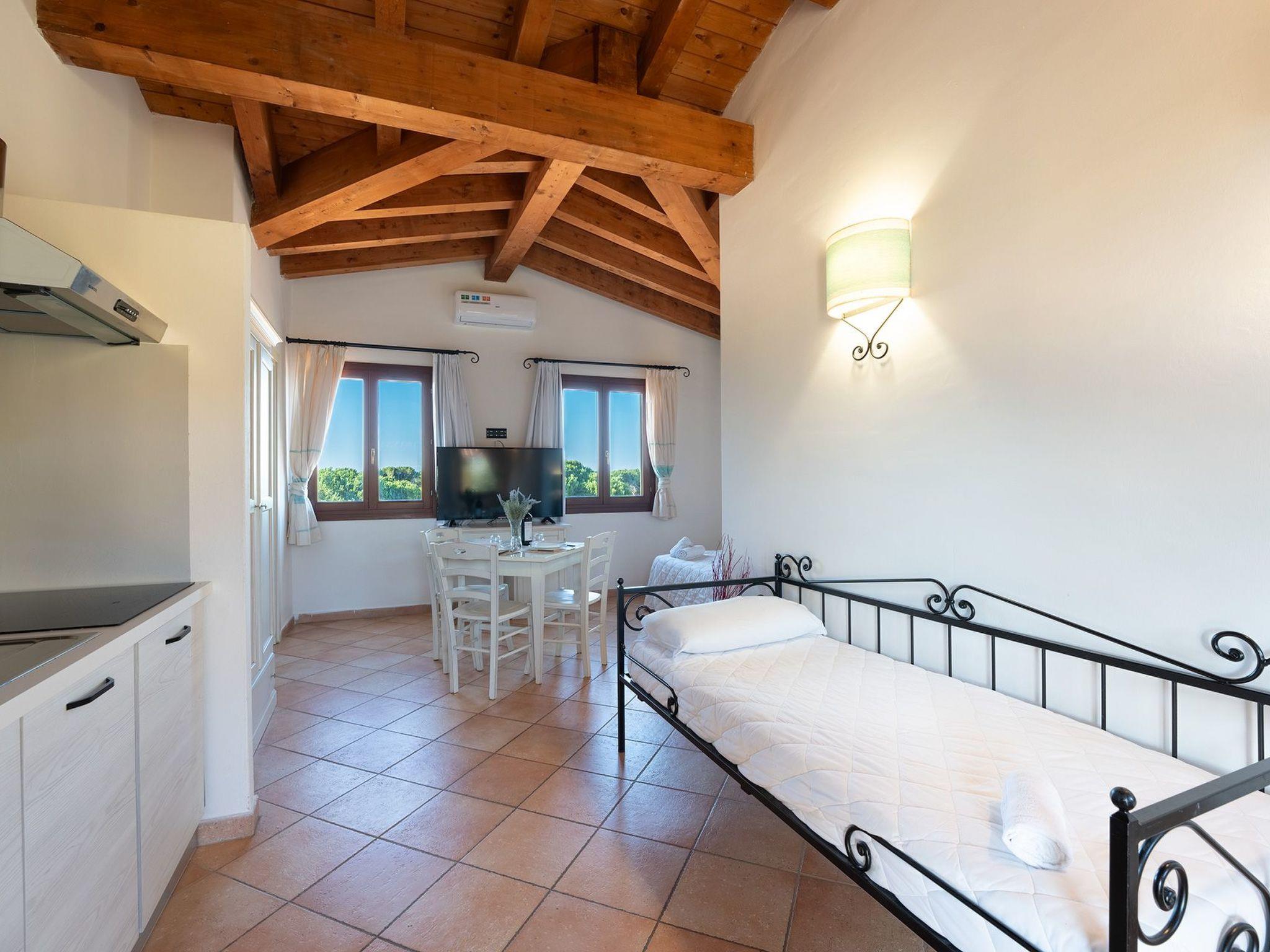 The studio flat 3 persons consists of a living room with kitchenette with induction hob (2 or 4 hotplates), single beds that can be joined together, single sofa bed, bathroom with shower. Inside you will also find all the necessary comforts: air conditioning, kitchenette equipped with microwave oven, kettle, induction hob, dishwasher, TV, hairdryer, safe, iron and ironing board on request, a beach umbrella. The first supply of bed linen and towels is included in the cost.