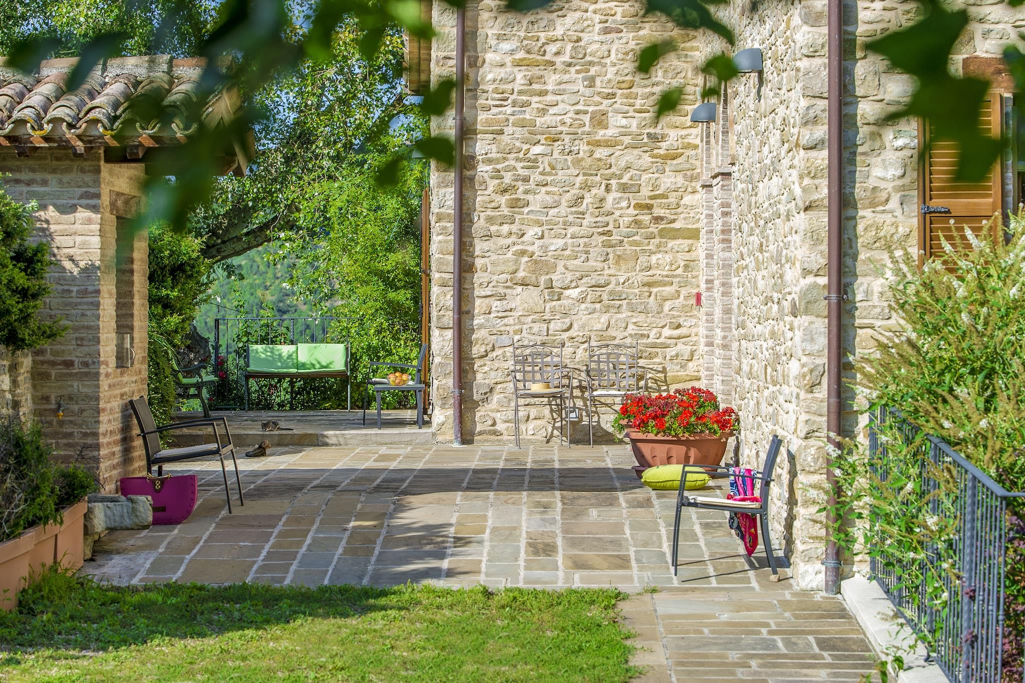 Denne rummelige uafhængige lejlighed er beliggende i et smukt renoveret bondehus i hjertet af Montefeltro. I stuehuset er der endnu en mindre lejlighed, som gæster deler brugen af swimmingpoolen med. Indkvarteringen har 3 soveværelser, der kan rumme op til 10 personer. Ideel til familier eller en gruppe af venner, det tilbyder en privat ekstern veranda med brændeovn og grill og bord og stole til at spise ude, en have med en "stor fælles swimmingpool med udsigt over det typiske Marche-landskab, samt en bowlingbane. Et par kilometer fra villaen er der en smuk forlystelsespark, Parco di Carpegna, ideel for voksne og børn; i nærheden vil du have mulighed for at tage på vandreture eller mountainbike på et hvilket som helst tidspunkt af dagen, eller nyde mange andre udendørs aktiviteter. "inde i naturparken. Indgangen fører til en stor stue og til køkkenet, og i stueetagen finder vi endnu en opholdsstue med tekøkken og fransk dobbelt sovesofa samt et soveværelse med dobbeltseng med badeværelse. Går ovenpå er der en lille mezzanin med 2 enkeltsovesofaer, så er der 1 soveværelse med dobbeltseng, et soveværelse med 2 enkeltsenge og et badeværelse med bruser. I kælderen er der også vaskerum. Firbenede venner er velkomne.