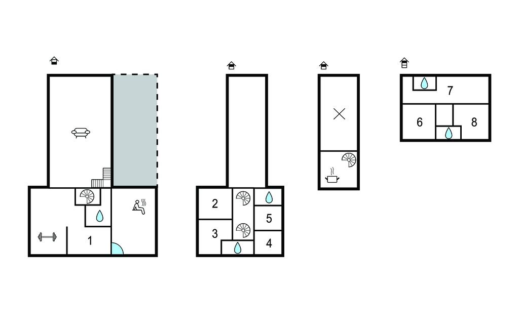 Soveværelse (nr. 6) - 1 Soveplads. (Enkeltseng(e)). 4 Sovepladser. (Dobbeltseng(e)).