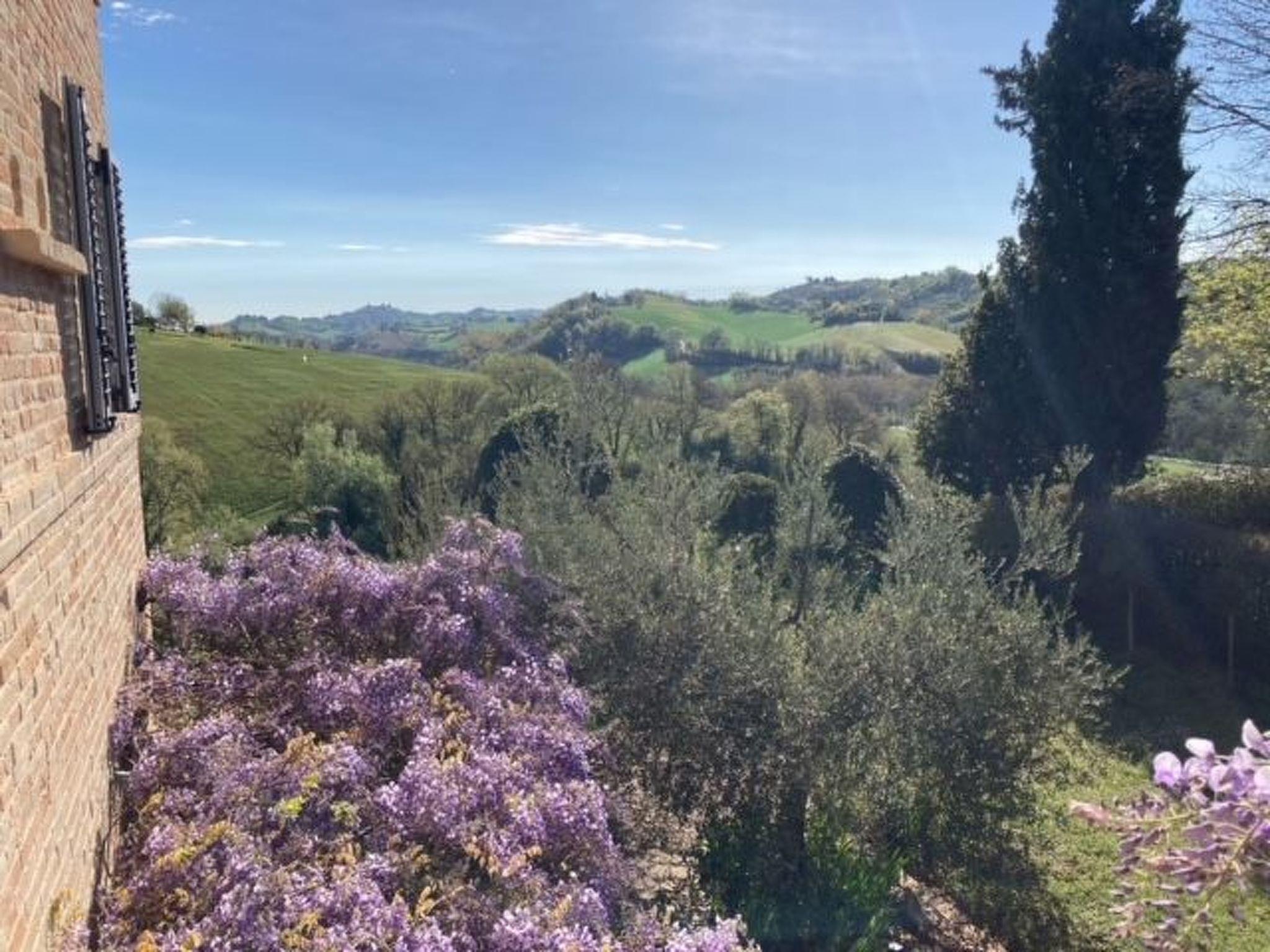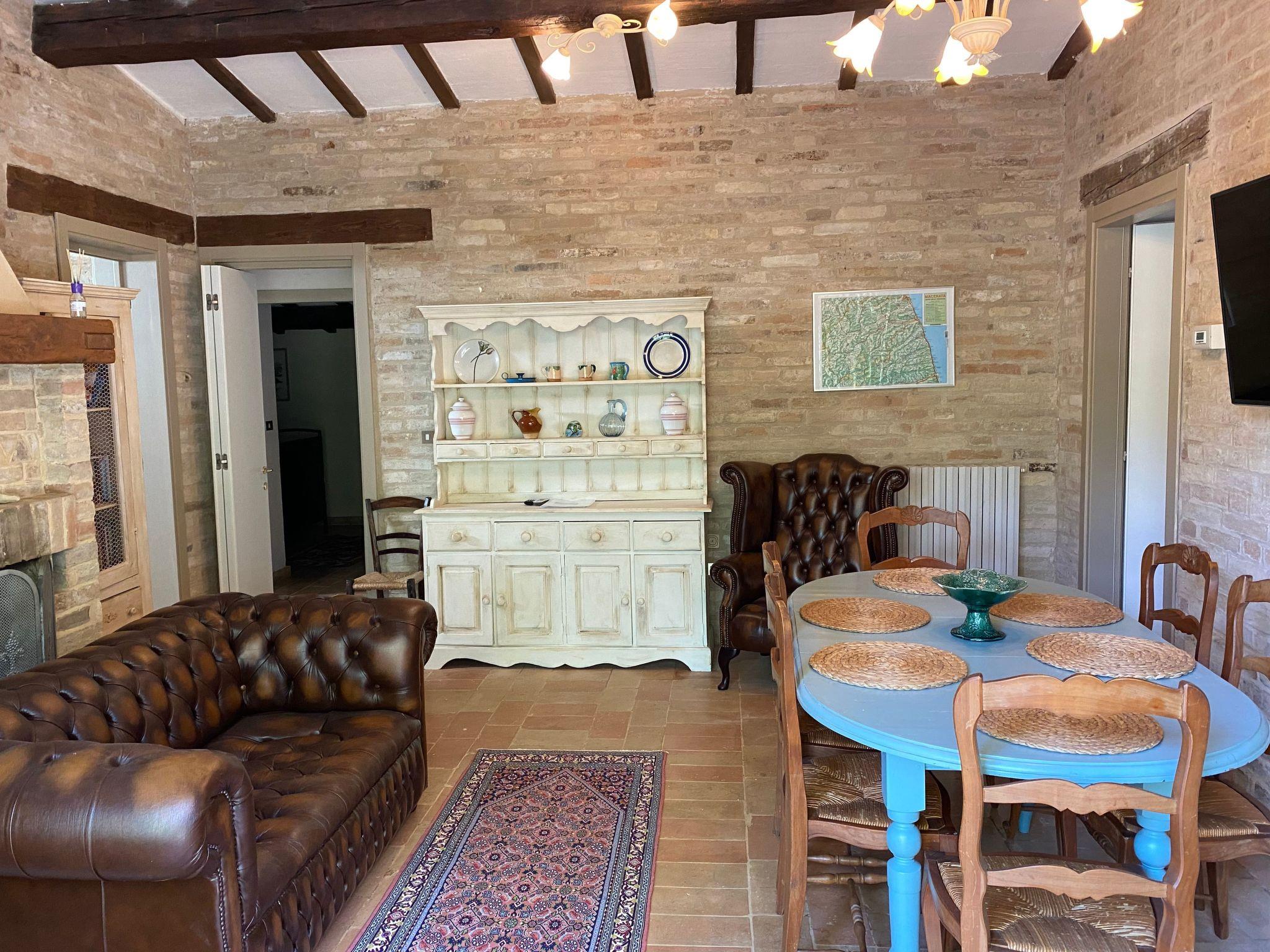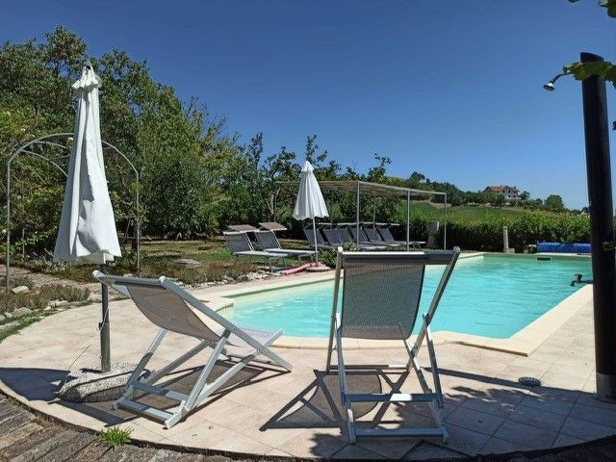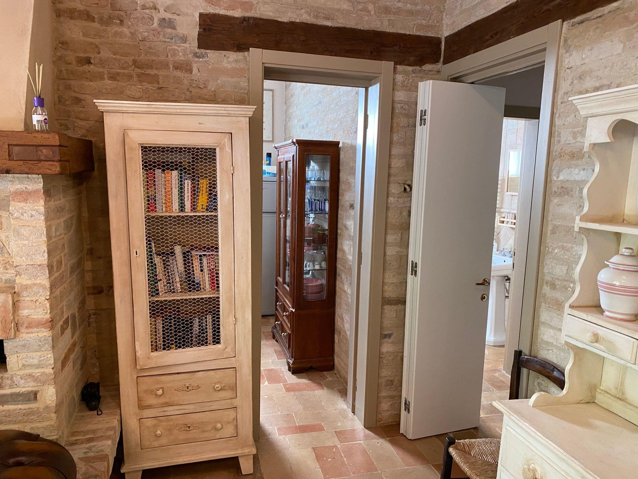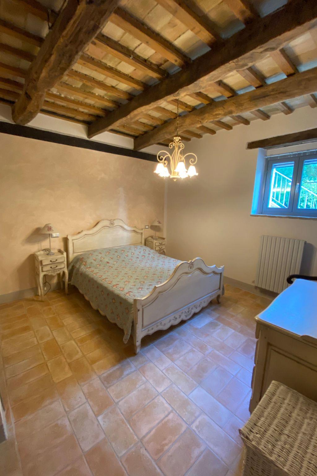 From the upper terrace there is a wonderful view of the hilly landscape of the Marches, the pool, the garden and the Sibillini mountains in the background. The garden is completely fenced, and the tarmacked access road is very quiet with no through traffic, which means that it is extremely quiet. There are 4-5 parking places in front of the house.