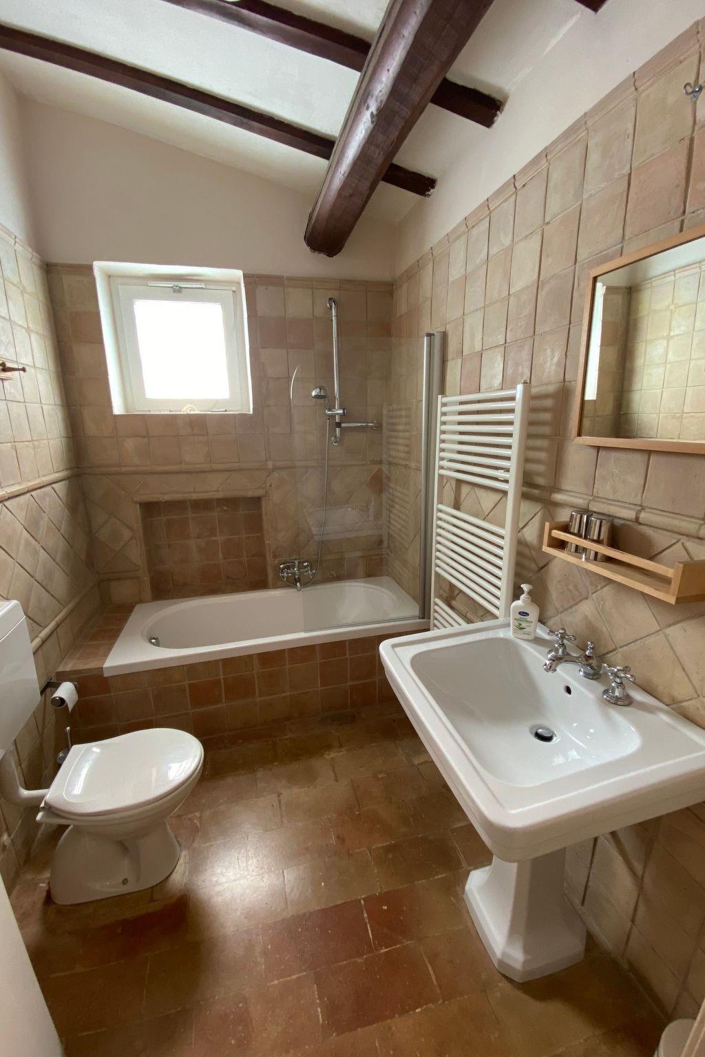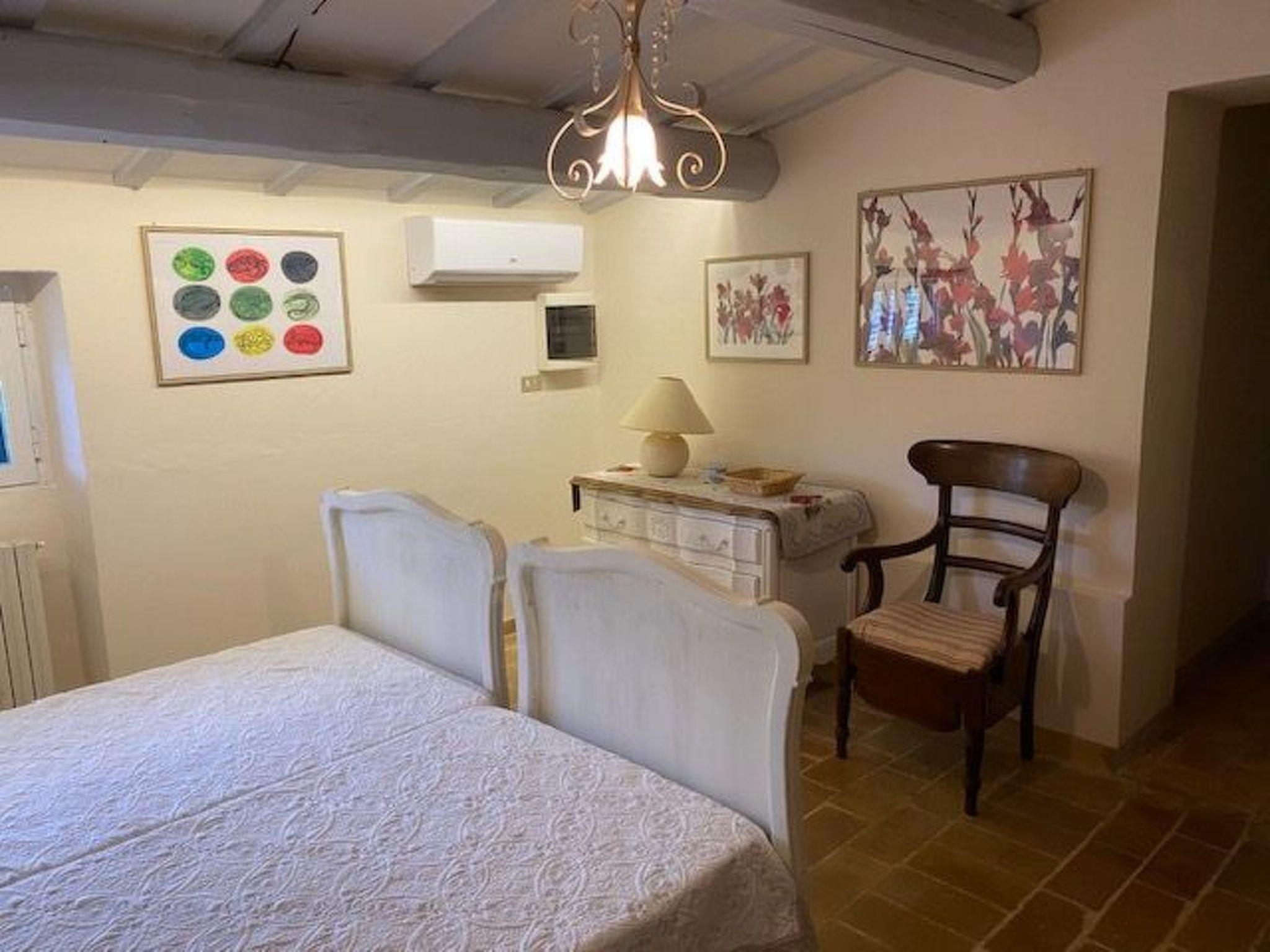 The holiday home is an authentic, recently renovated, farmhouse with seven bedrooms, seven bathrooms and all modern comfort (reversible air con, flat screen TV, internet, washing machines, dishwasher). It is divided into two apartments with separate entrances, of which one is on the ground floor, There are three bedrooms and three bathrooms on the ground floor (two with shower, one with full bath), and four bedrooms, three bathrooms and a separate toilet in the upper apartment.