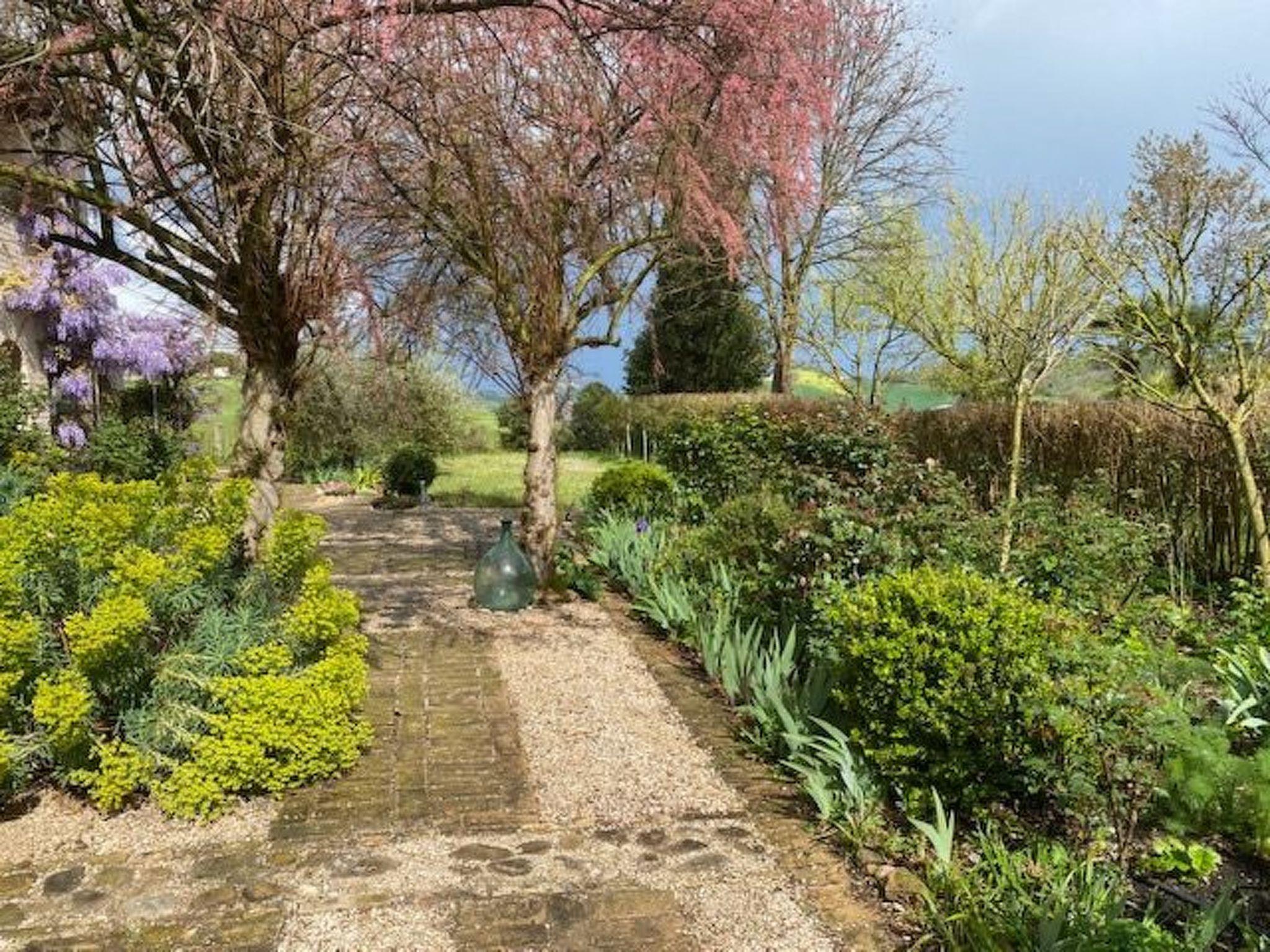 Our country home is surrounded by a lush garden with mature trees, Mediterranean shrubs, roses and flowers.