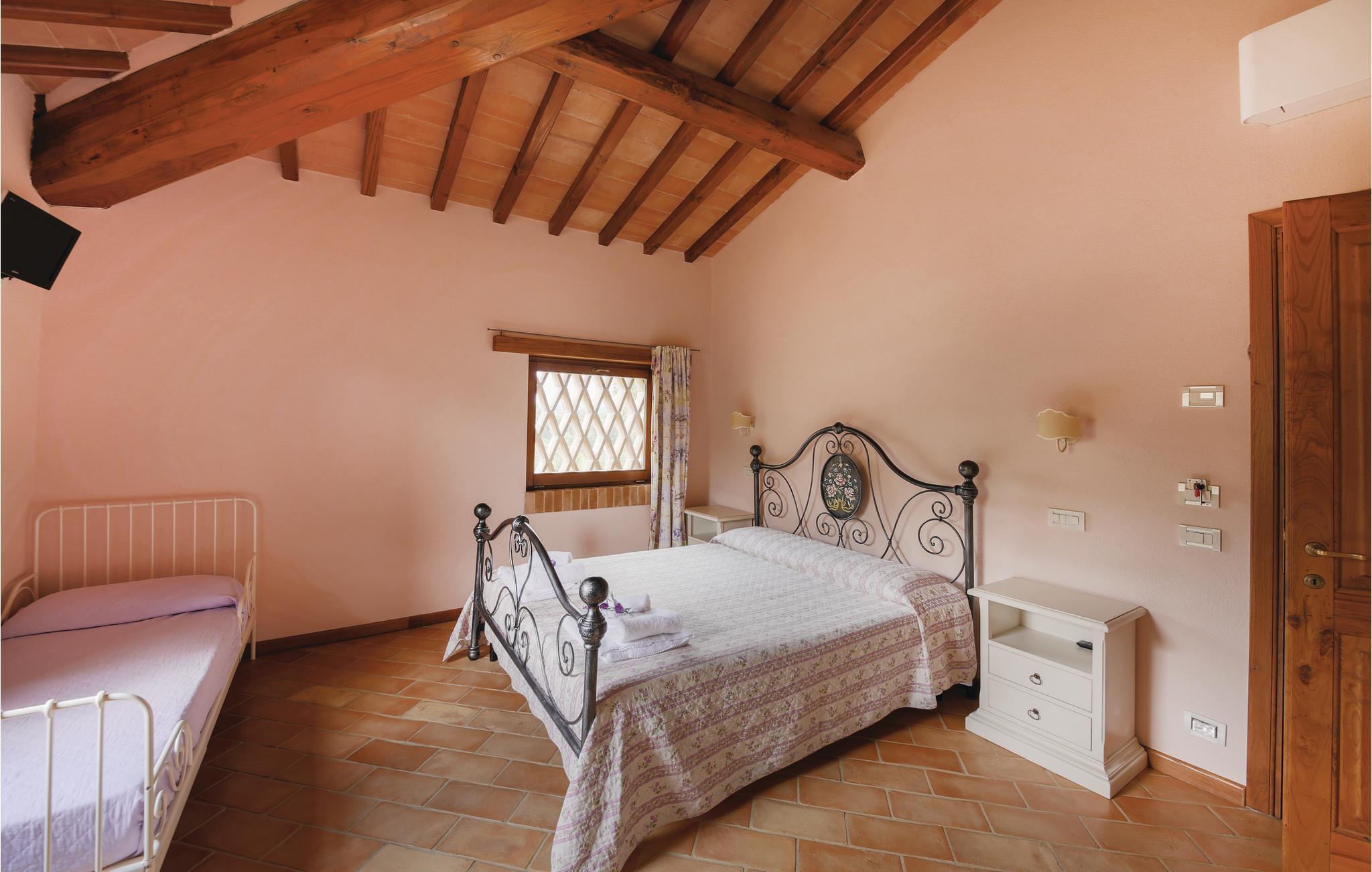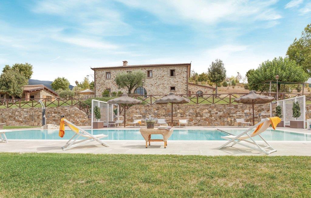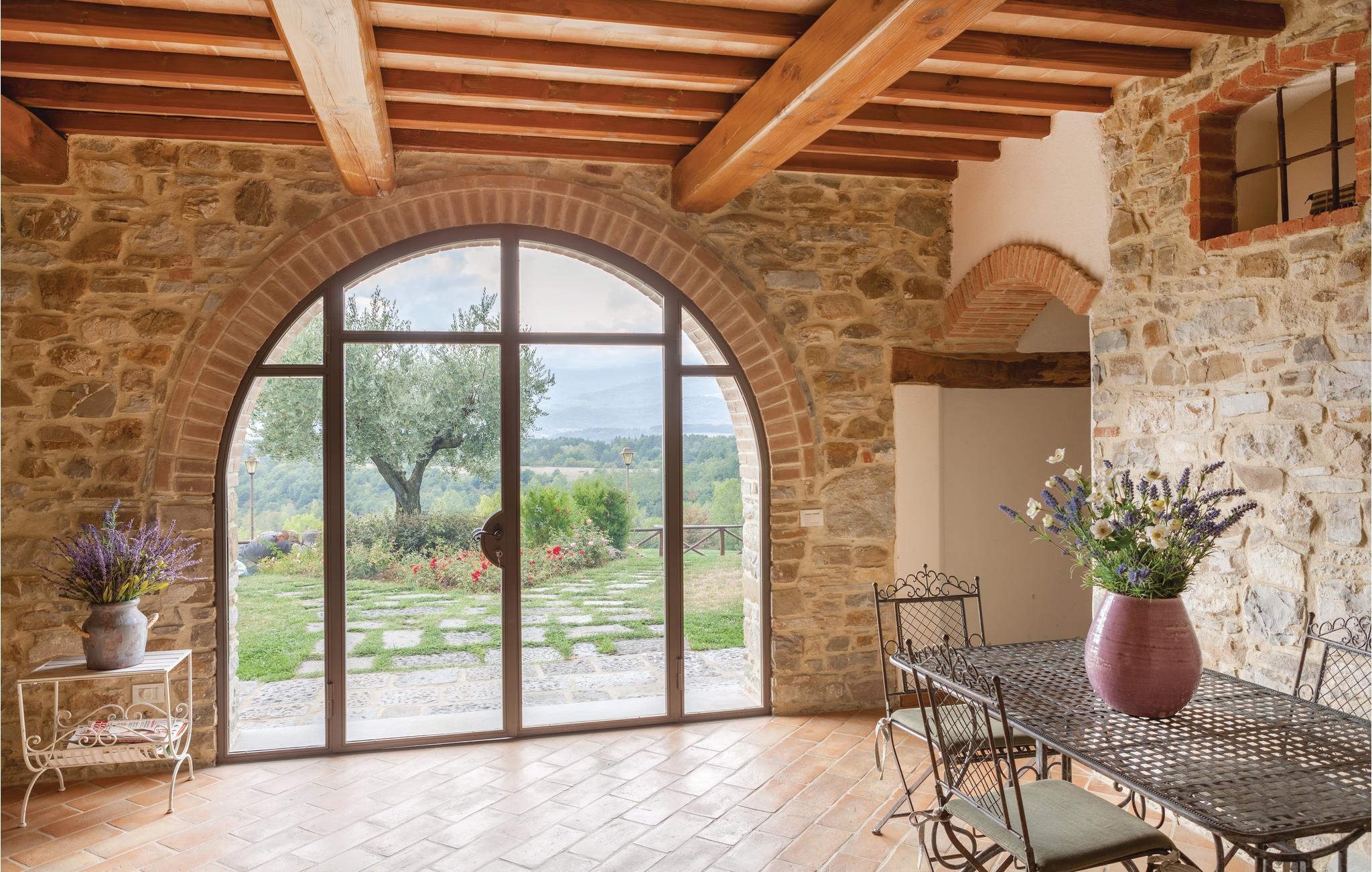Denne eksklusive feriebolig med udendørs pool i et roligt bakkelandskab består af to typiske naturstenshuse: Hovedbygningen med entré, pejseværelse og soveværelser (alle med bad). Sidebygningen med spisesal og professionelt køkken. Overdækket terrasse med drikkevandsbrønd. På den parklignende grund er der flere overdækkede siddekroge, en grill og det store pool-område med solterrasse. Overalt på grunden er der en enestående udsigt til Casentinos skove. I kan bestille mad og nyde den på terrassen ved solnedgang. Et ferieparadis, hvor I rigtigt kan slappe af. Vandreture og udflugter til det nærliggende franciskanerkloster La Verna og Casentinos små byer og borge. Der er 3,5 km til Bibbiena, 35 km til Arezzo og 60 km til Firenze.