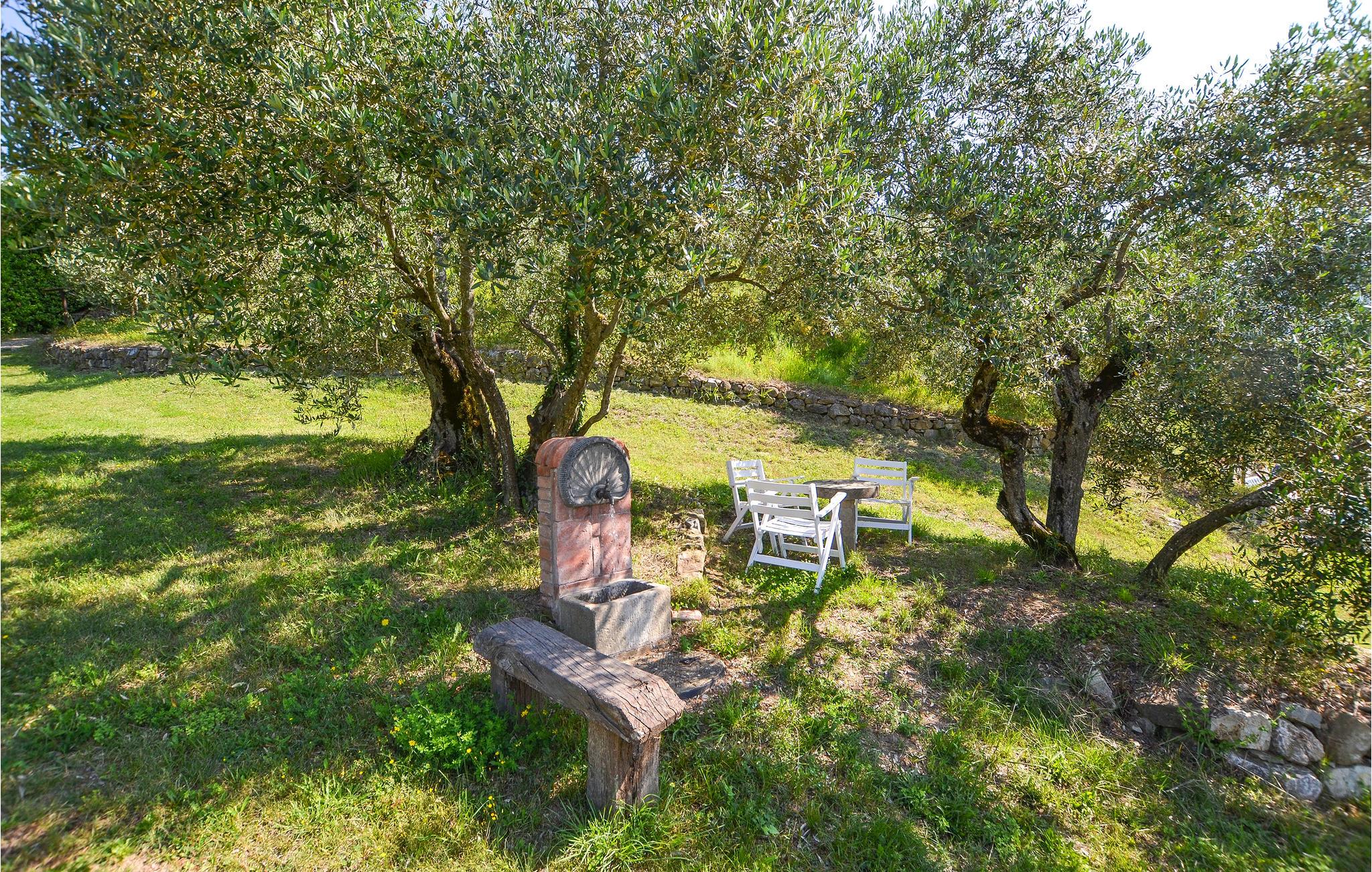 Nær poolen er der et lille udhus med en enkelt sovesofa og under poolen et andet badeværelse med bruser. På to sider i huset er der en overdækket terrasse med grill, og på terrasserne på bjergskråning er der forskellige siddepladser i haven i skyggen af ??træerne - plus flere brønde med frisk kildevand!