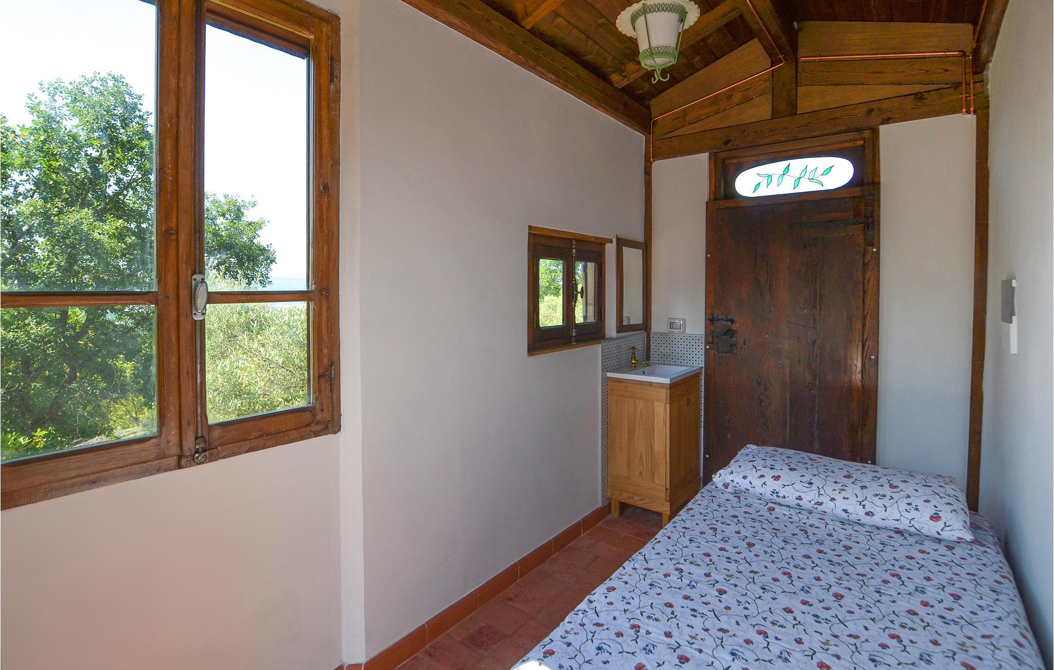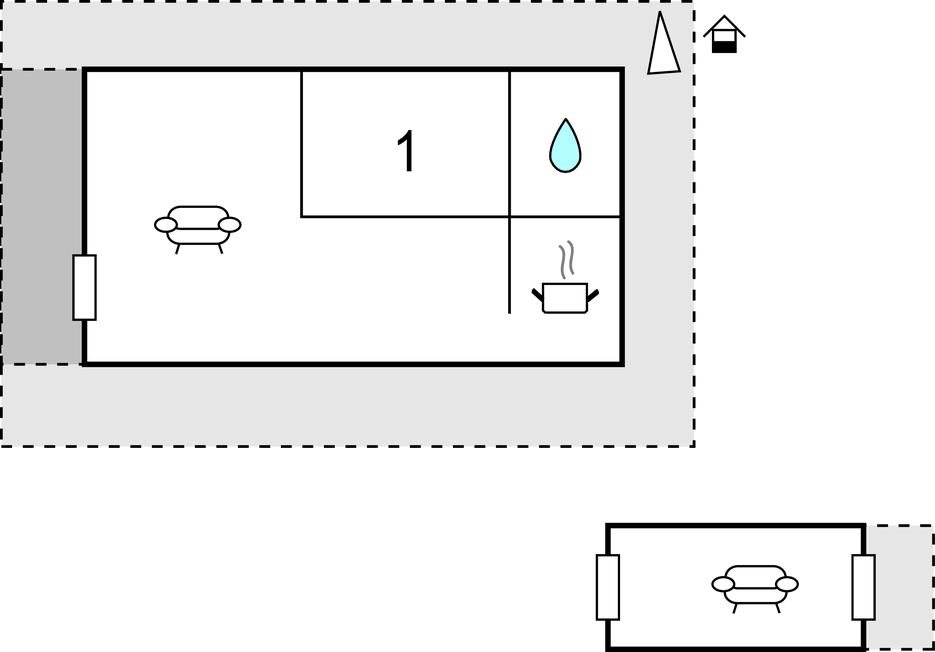 Du kan nyde en vidunderlig udsigt over dalen fra de store åbne områder. Huset består af et lille køkken og et enkeltværelse, der er opdelt i et opholds- og soveværelse med en dobbeltseng, adskilt af en skærm.