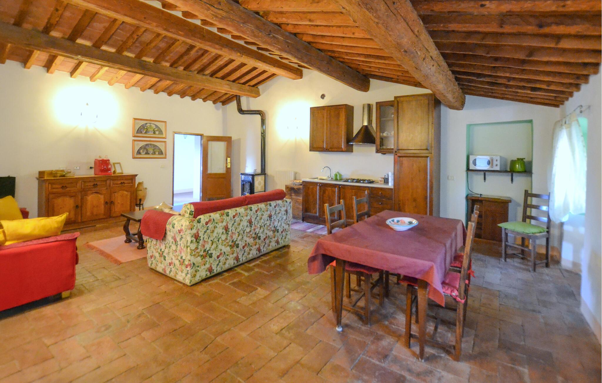 Denne komfortable og rummelige lejlighed er beliggende i et tidligere kloster fra 1800-tallet. Nyd den rustikke atmosfære, mens I nyder afslappede måltider, planlæg jeres udflugter i jeres eget tempo, og efter en lang dag i den friske luft kan I slappe af med familien under en hyggelig spilleaften på sofaen.