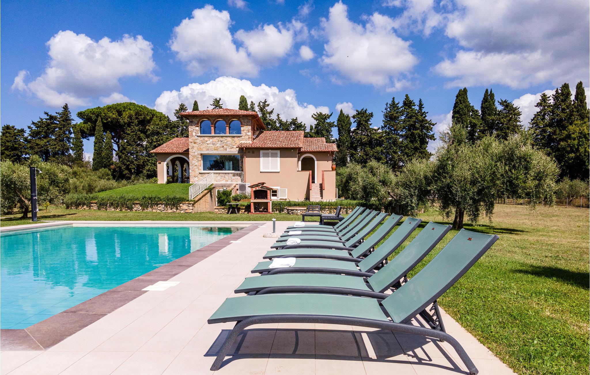 Velkommen til dette rummelige og komfortable hjem beliggende i det idylliske toscanske landskab. De lyse værelser med deres enkle og funktionelle indretning byder på masser af plads og gør huset til det ideelle udgangspunkt for afslapning med flere familier. Nyd et fortryllende landskabspanorama, mens I laver mad sammen, hvilket giver jer lyst til at gå på opdagelse i området.