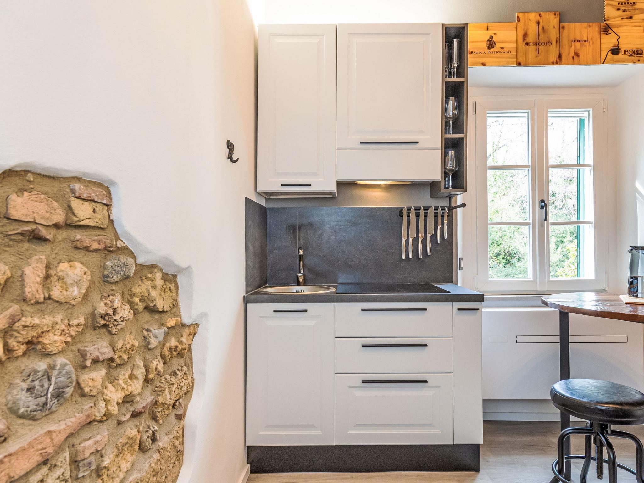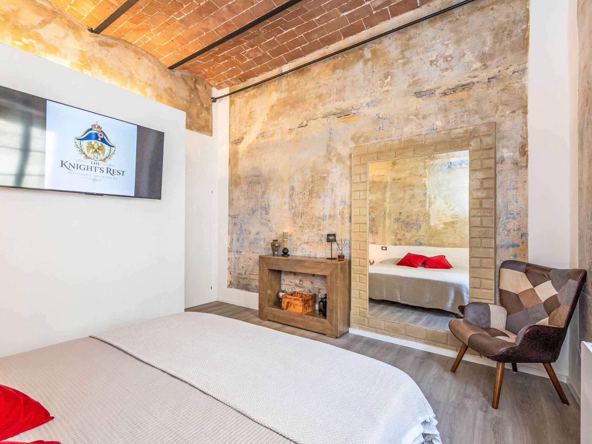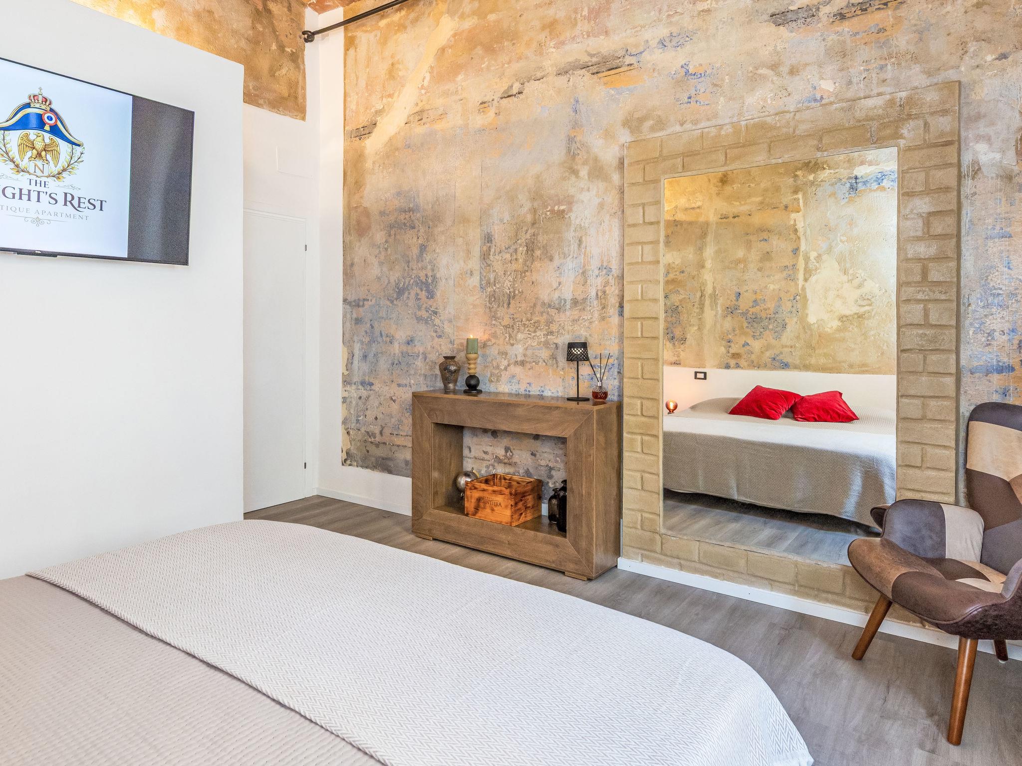 "The Knight’s Rest", 2-room apartment 35 m2 on 1st floor. Spacious and bright, comfortable and tasteful furnishings: upper floor: (steep stair) living/dining room with dining table. 1 double bedroom with 1 double bed (180 cm, length 200 cm). Open kitchen (oven, 4 induction hot plates, toaster, kettle, microwave, electric coffee machine). Shower/bidet/WC. Electric heating, air-conditioning. Facilities: washing machine, iron, baby cot for up to 2 year olds, hair dryer. Internet (WiFi, free). Please note: fire extinguisher. IT049001C22O2D2G7I