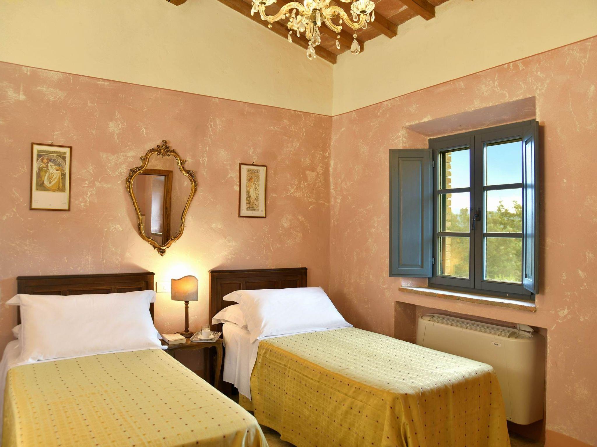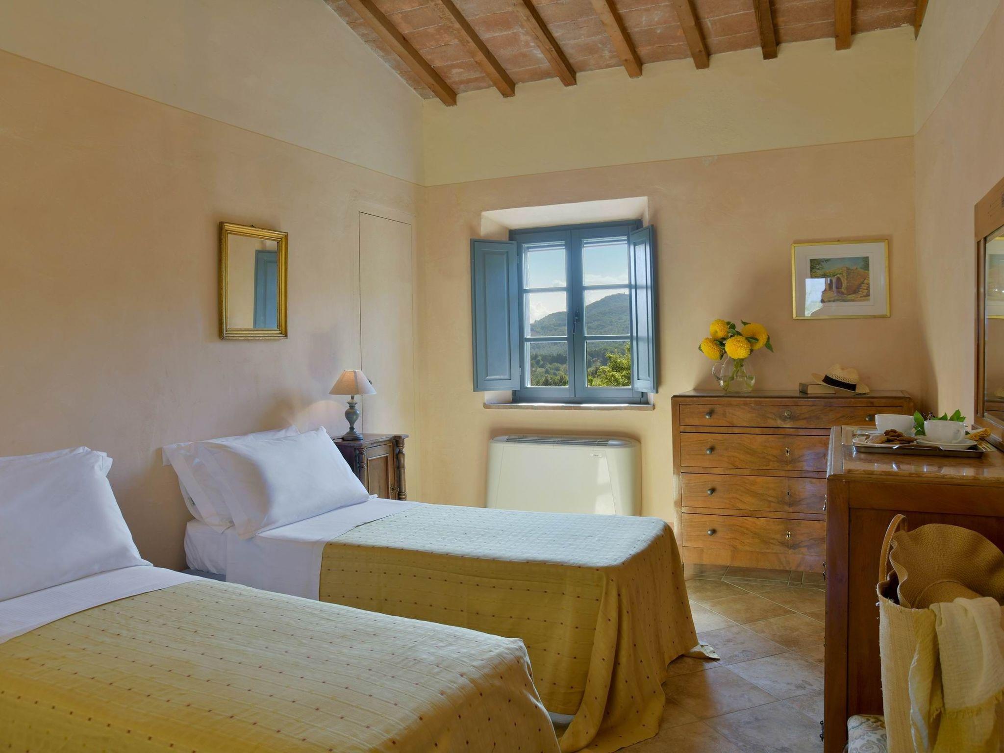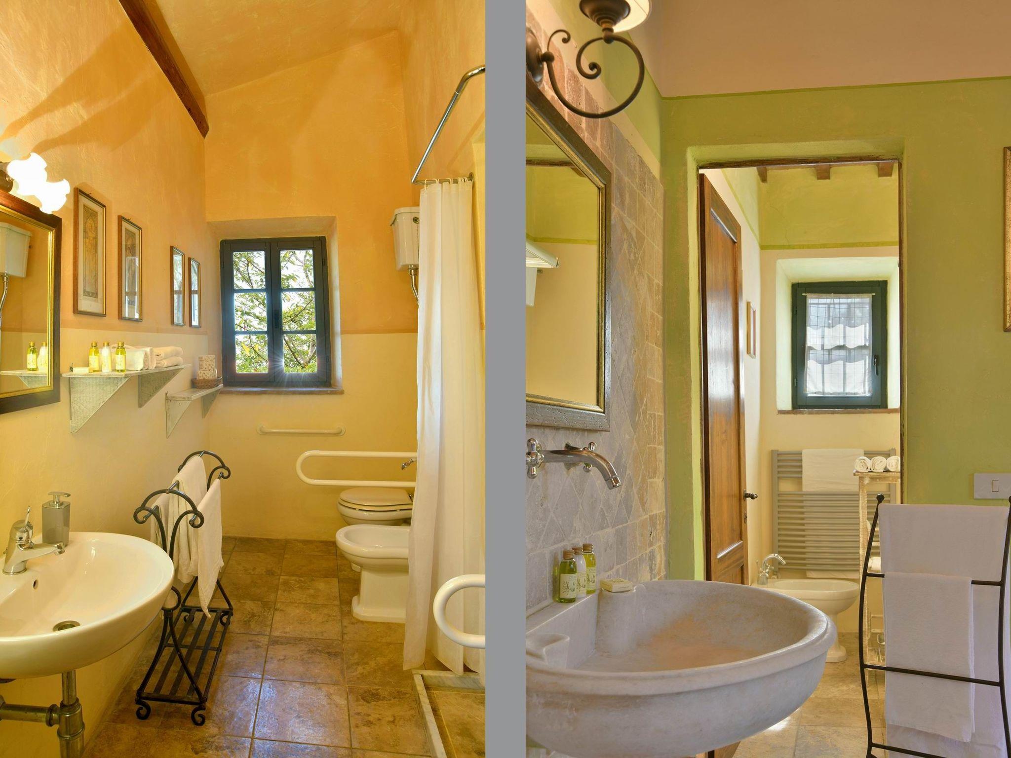 The villa, measuring approximately 500 square metres, is located in a very quiet area, spread over two floors and can accommodate up to 20 people in 9 air-conditioned bedrooms, all with private bathrooms. The interiors of the villa preserve the original architecture of Tuscan farmhouses, with vaulted ceilings and warm, cosy colours.