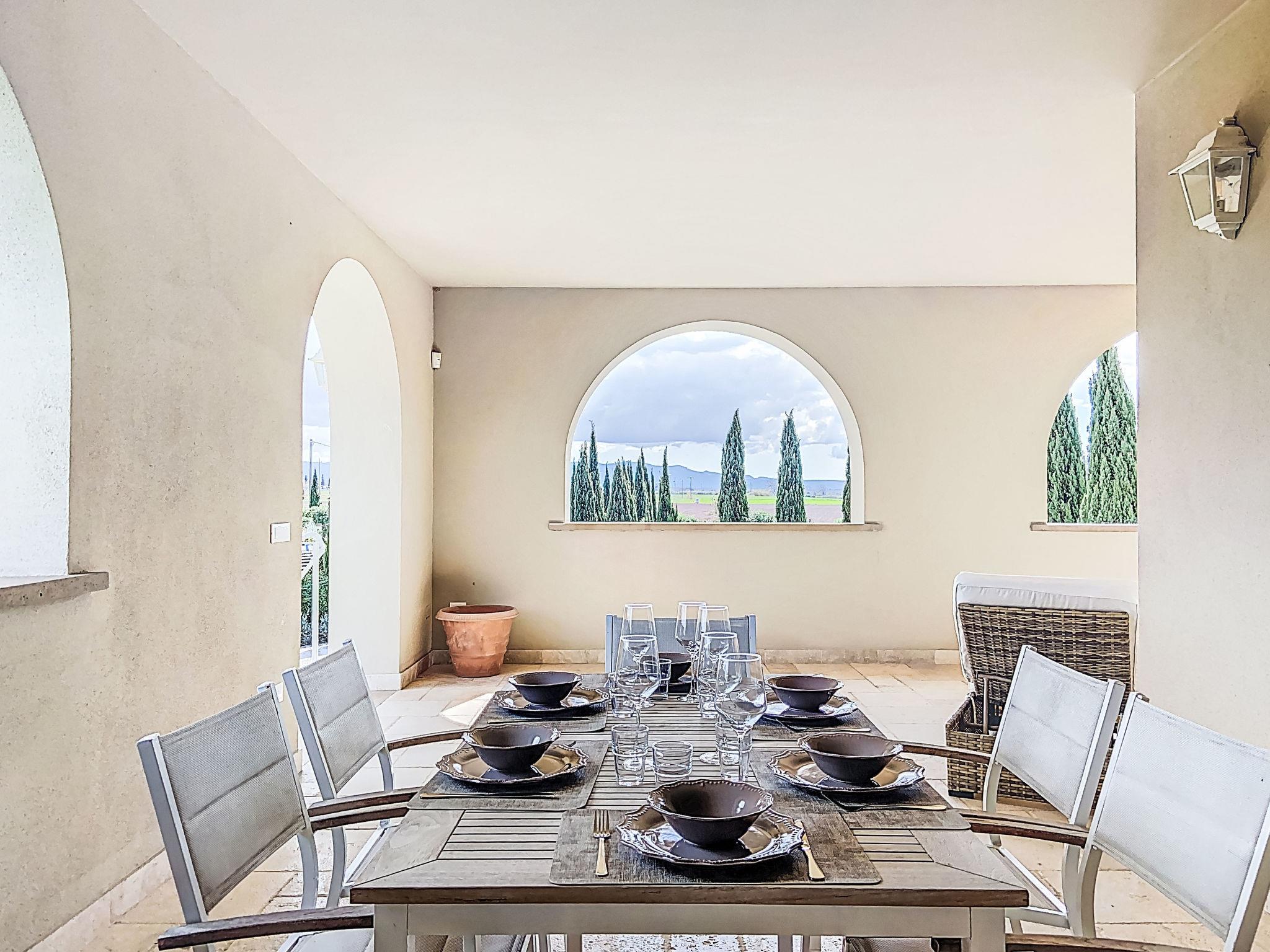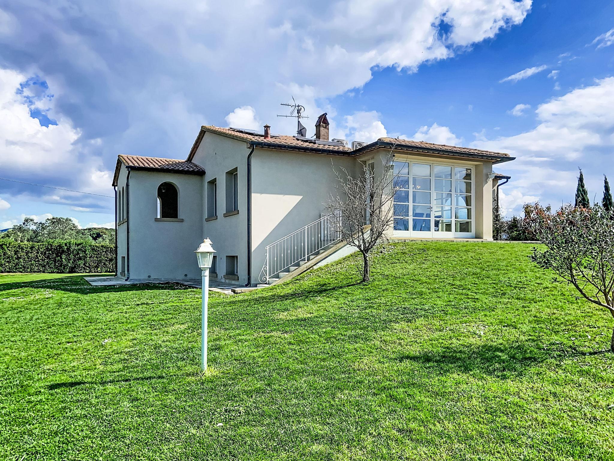 5-room villa 150 m2. Spacious, comfortable and tasteful furnishings: living/dining room with panoramic window with 1 double sofabed, dining table and air conditioning. Exit to the veranda. 1 room with 1 double bed. 1 room with 1 double bed. Exit to the loggia. Open kitchen (dishwasher, Gas stove, 4 gas rings, toaster, kettle, electric coffee machine). Shower/bidet/WC. Electric heating, gas heating, air-conditioning. On the lower ground floor: 1 room with 1 double bed. 1 room with 2 beds. 2 showers/bidet/WC. Terrace 70 m2, roofed. Terrace furniture, box-room. Beautiful panoramic view of the swimming pool and the countryside. Facilities: washing machine, dryer, iron, mosquito net, children's high chair, baby cot, hair dryer. Internet (WiFi, free). Parking. Please note: non-smokers only. 2 small pets/ dogs allowed. Smoke alarm, fire extinguisher. IT049001B4IKBDUL7V