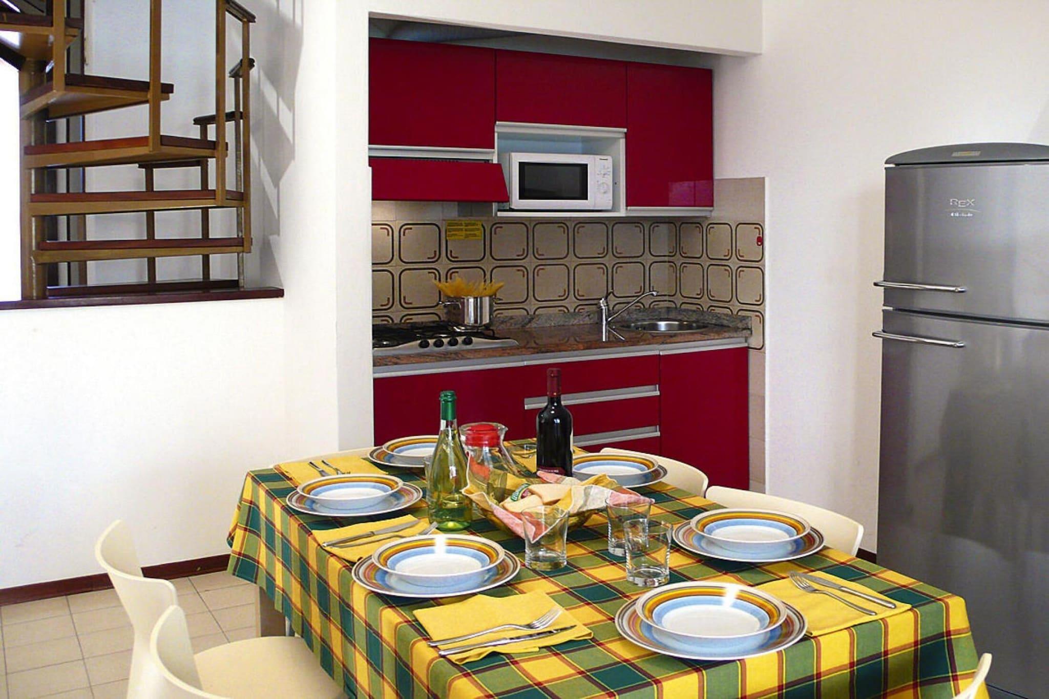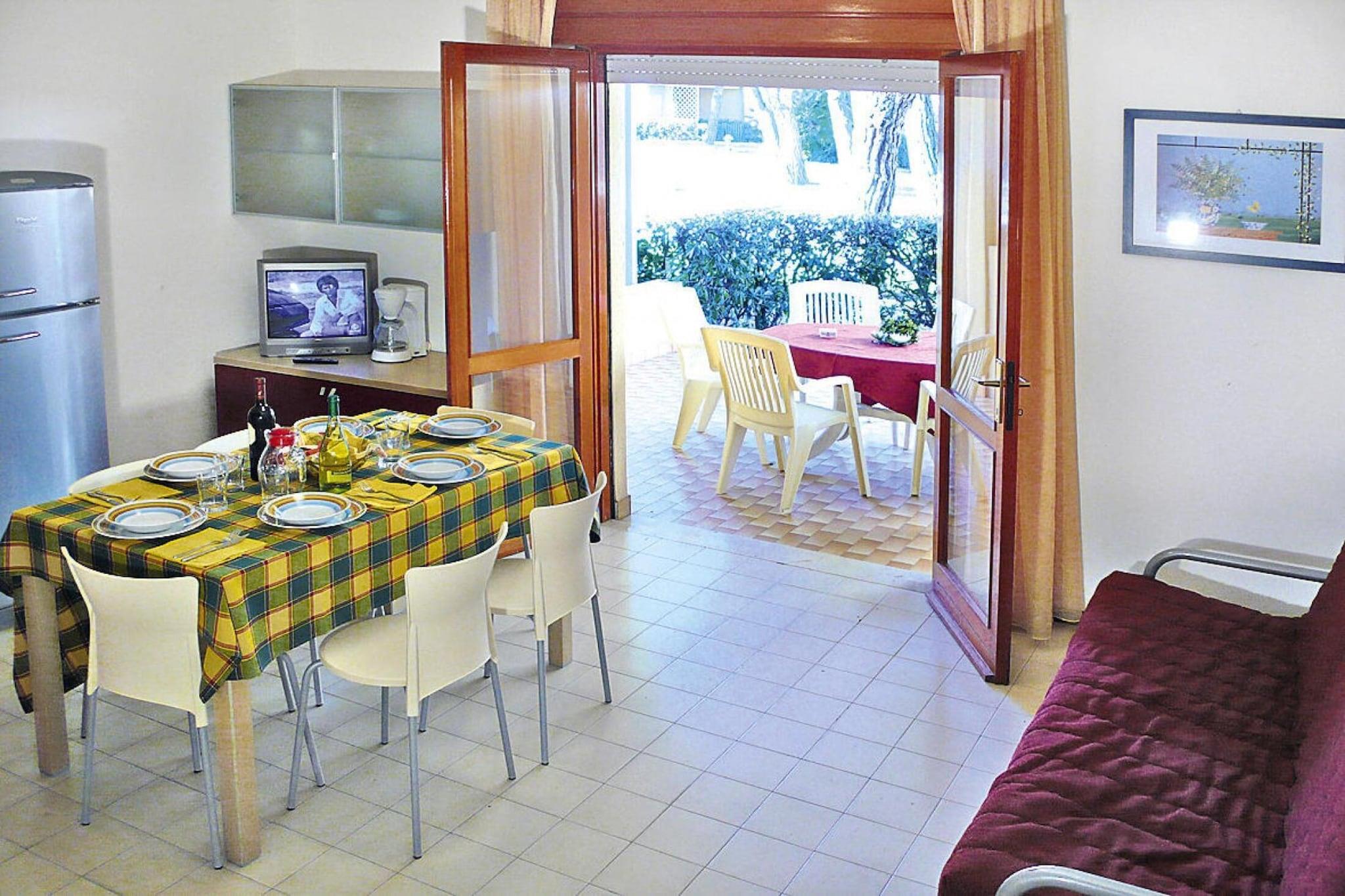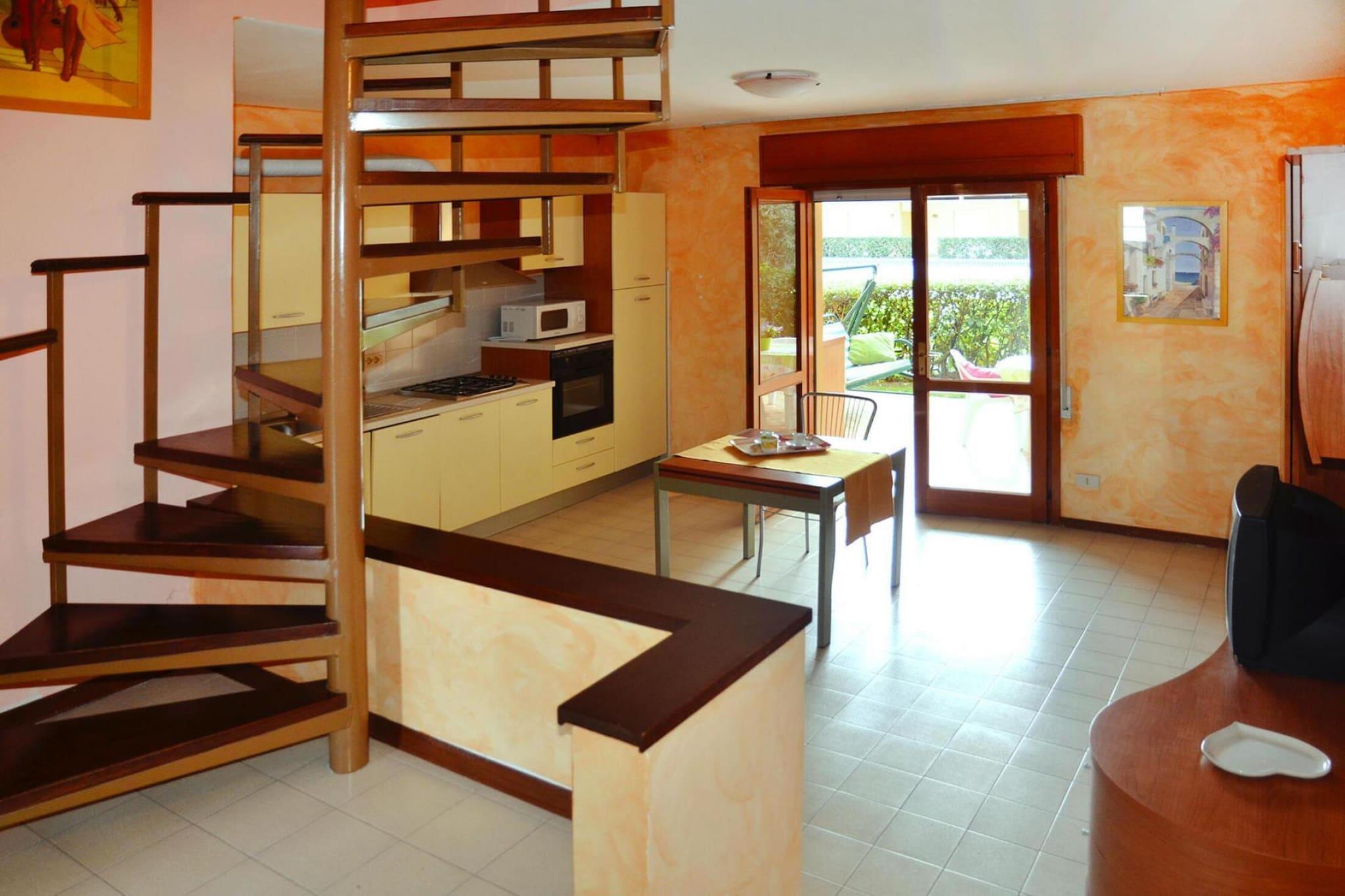 Feriekompleks med hyggelige rækkehuse, kun 500 m fra centrum af Bibione-Spiaggia. Hvis du holder af en badeferie, er dette stedet for dig, da du kan vælge mellem den store swimmingpool med separat børnepool og den lange sandstrand. Lejlighederne er som etagelejligheder i to etager, der hver er forbundet med en vindeltrappe. Detaljer: 1x pr. ophold deltagelse i en spaghettifest (fra slutningen af maj til midten af september, afhængigt af vejret) invitation til en vinsmagning med typiske snacks (fra ca. midten af april til midten af oktober) strandservice ( 1 liggestol, 1 solseng, 1 parasol), slutningen af april til slutningen af september 10% rabat i forskellige restauranter og butikker 20% rabat på greenfee (fra mandag til fredag) på den 18-hullers golfbane Lignano Aktiviteter i nærheden: på 8 til 10 km lang og bred sandstrand er der gratis 3 timer om morgenen, ligesom der tilbydes et bredt underholdningsprogram om eftermiddagen. En shuttlebus tager dig til strandsektor nr. 30 fra 30/05 - 11.09. Dette appellerer til børn såvel som teenagere og voksne. Der er også mulighed for at dyrke alle former for vandsport (mod betaling). Lej for eksempel en vandcykel, surfbræt eller sejlbåd. Selv paragliding er muligt. Den brede strand har også baner til beachvolley, fodbold, tennis og boccia. Du kan kontakte nøgleudleveringskontoret indtil 15.05. og fra 19.09. Cykler kan lånes gratis med et depositum (afhængigt af tilgængelighed) for at udforske området Ikke egnet til personer med nedsat mobilitet