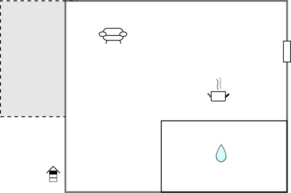 Opholdsstue/køkken - 2 Sovepladser. (Enkeltseng(e)). 2 Sovepladser. (Sofa, madras eller lignende).