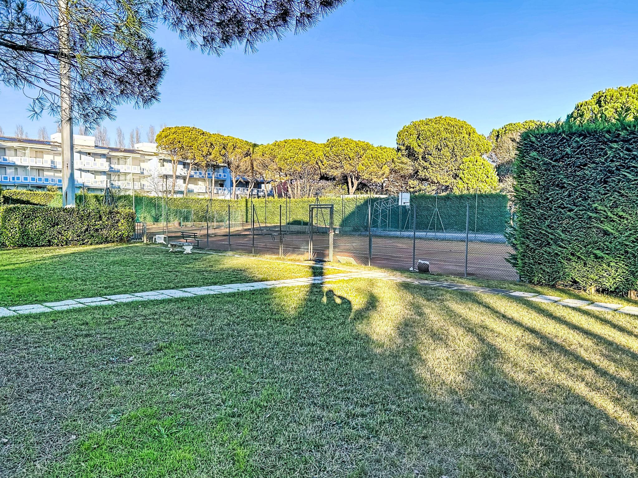 Large, comfortable residence "Olimpia", 3 storeys. In the centre of Bibione, in a sunny position, excellent location: right in the centre but still quiet, 1.2 km from the sea, 1.2 km from the beach. For shared use: park 10'000 m2, large garden lawn and plants, swimming pool (24 x 9 m, depth 150 - 220 cm, seasonal availability: 15.May. - 15.Sep. pool opening hours: 09:00-13:30 and 15:30-22:00). Children's pool, outdoor shower, hot tub, tennis, basketball, boccia. In the complex: bar. Parking at the house. Bus stop 200 m.