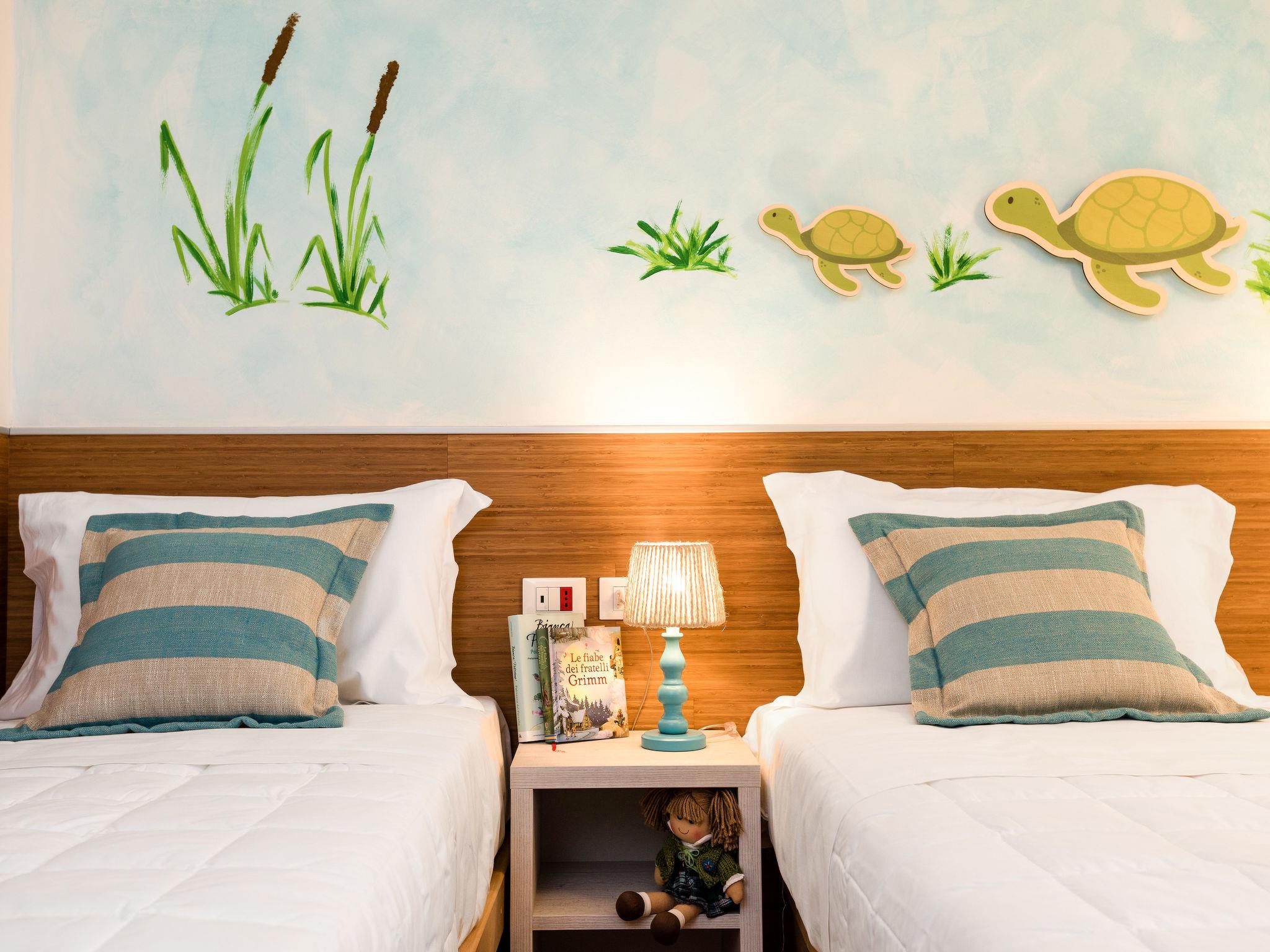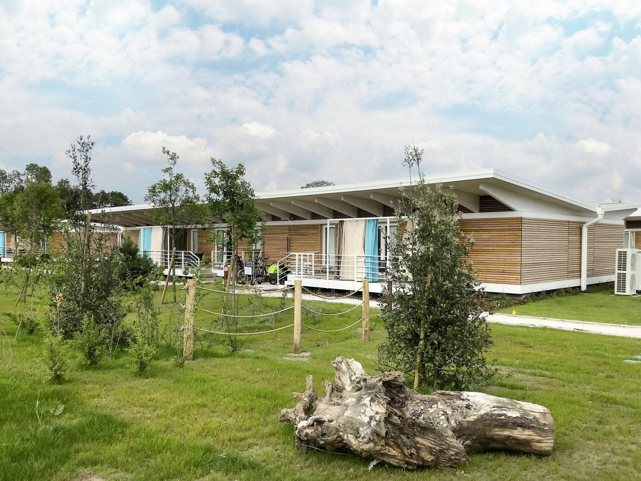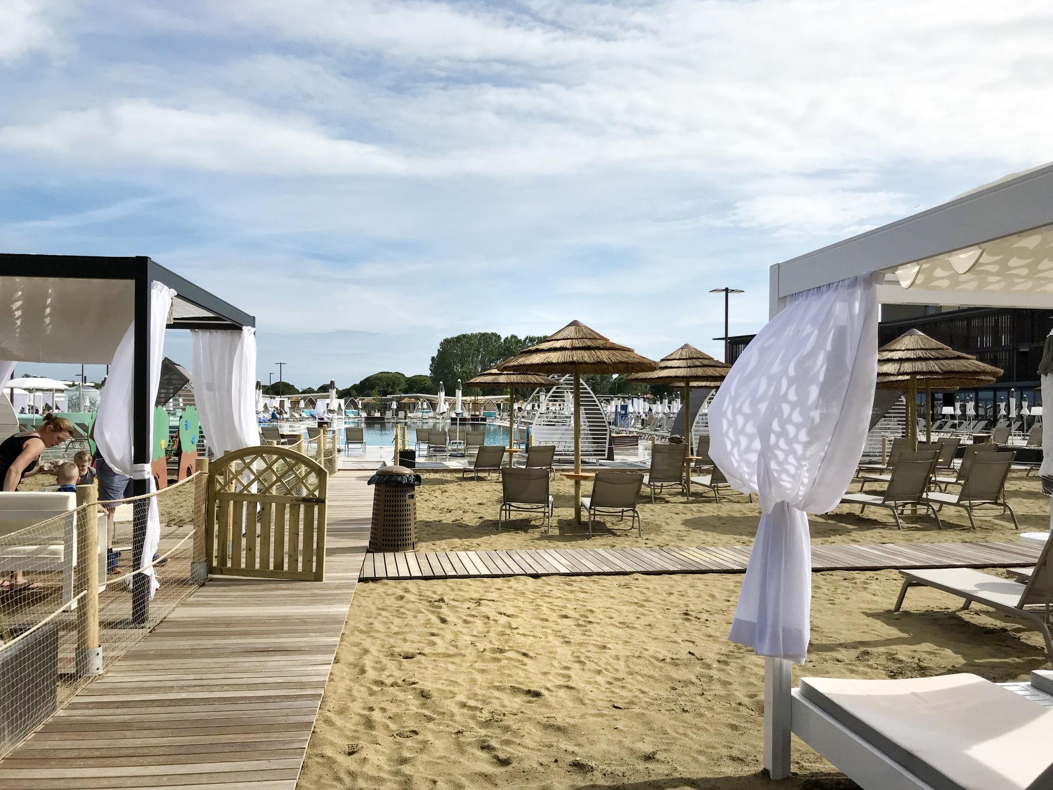 Large, child friendly, modern resort "Lino delle Fate Eco Village". 290 apartments in the residence. In the district of Bibione-Lido dei Pini 1.8 km from the centre of Bibione, 13 km from the centre of Lignano, 100 km from the centre of Venezia, 450 m from the sea, 450 m from the beach. For shared use: property 25 ha, park, well-kept garden with lawn and plants, biotope, swimming pool (1'000 m2, seasonal availability: 28.Mar. - 02.Nov.). Children's pool, outdoor shower, private beach, hot tub, children's playground. In the complex: restaurant, bar, washing machine, tumble dryer (for shared use, extra), bicycle rental. Linen change weekly. Towel change 2 times per week. Room cleaning weekly. Breakfast and half board possible (extra). Communal covered parking. Central parking spaces. E-charging station. Shop, grocery 300 m, bus stop 900 m, railway station "Latisana (Venezia-Trieste)" 21 km, sandy beach 700 m, thermal baths "Bibione Thermae" 3.5 km. Golf course (18 hole) 8 km. Nearby attractions: Oasi Naturalistica Val Grande 3.5 km, Golf Club Lignano, 20 % reduction on, green fee. Please note: car-free holiday complex. Entertainment in the season. Suitable for families. Beach service: During summer season 1 parasol and 2 sunbeds per apartment included in the price.