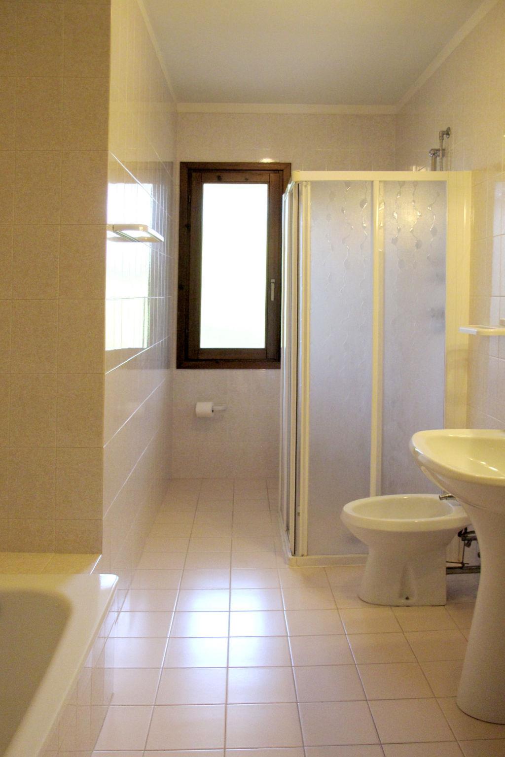 3-room terraced house 85 m2 on 3 levels. Practical and stylish furnishings: living/sleeping room with 2 sofabeds and satellite TV. Exit to the terrace. Kitchen (Gas stove, 4 gas rings, microwave, freezer, electric coffee machine) with dining table. On the lower ground floor: shower/WC. Upper floor: 1 room with 1 bed and 1 double bed. 1 room with 1 bed and 1 x 2 bunk beds. Bath/shower/WC. Heating, air-conditioning. 2 balconies, terrace roofed, small garden. Terrace furniture, barbecue, deck chairs (2). Facilities: washing machine, safe, children's high chair, baby cot. Parking (1 car), garage on the property (1 car) at the house, height 250 cm. Maximum 1 pet/ dog allowed. No mandatory extra charges to be paid on-site except for local tax. Bedlinen, towels, final cleaning and all energy costs are included. IT027034B4GH4V3DDD