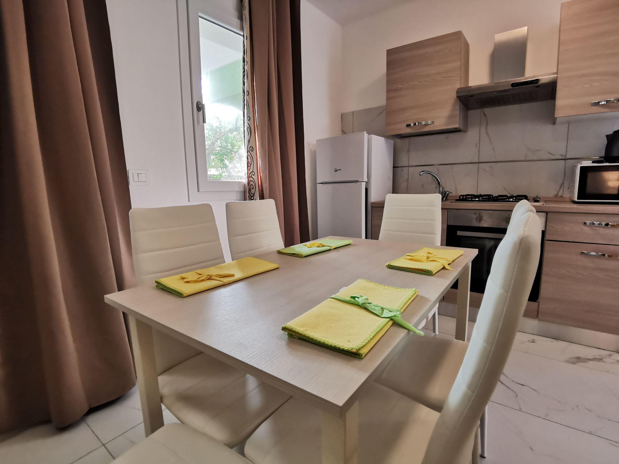 Nella zona giorno si trova un cucinino fornito di piano cottura, ampio frigorifero con freezer, forno ventilato, microonde.