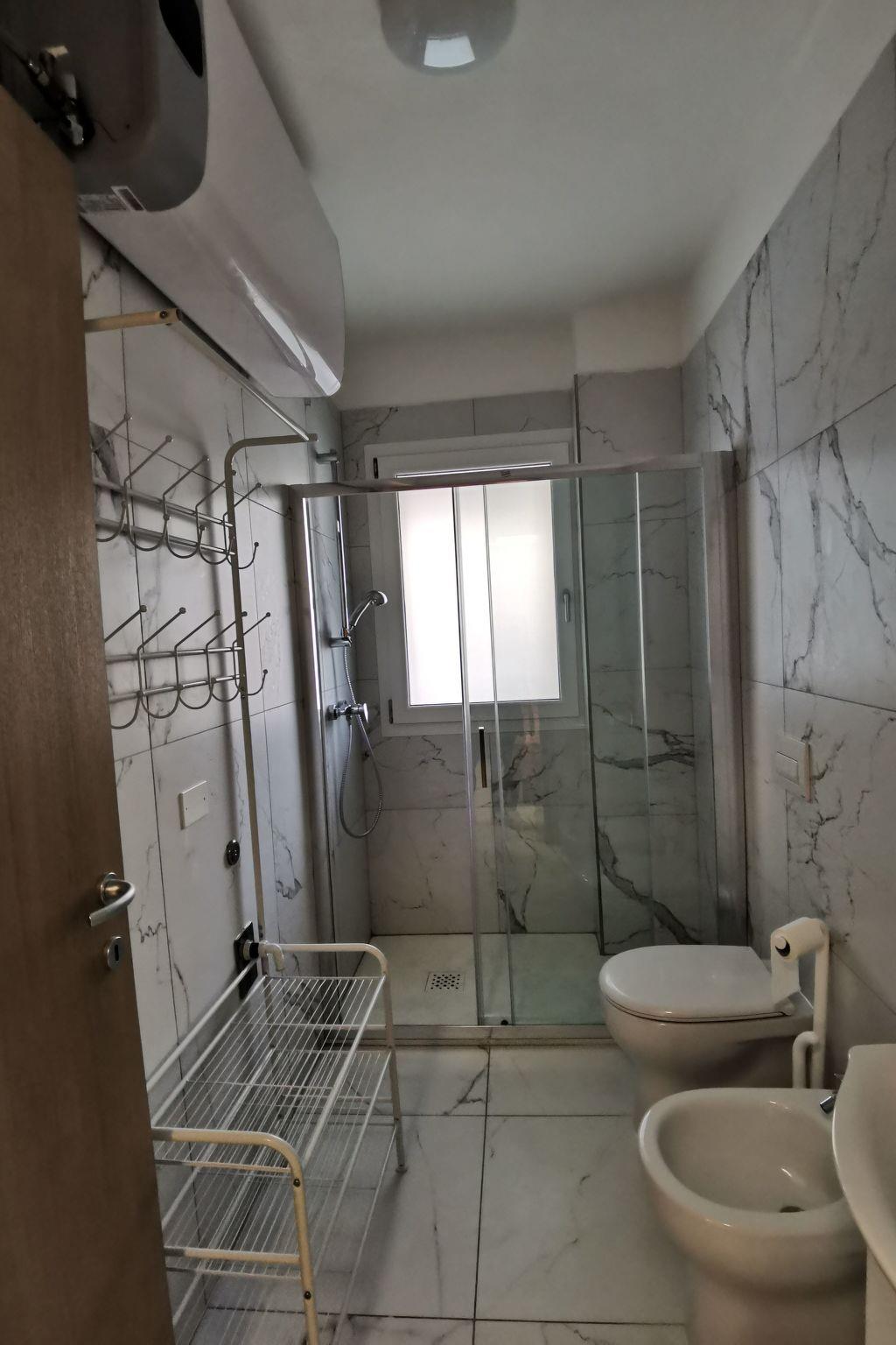Each flat has a graceful and modern design, with sober lines and monochrome colours, and is designed to ensure a comfortable stay for both couples and families with children. The studio is equipped with a double bed with a faux leather headboard and a single bed, complete with a kitchenette equipped with a hob, a large fridge with freezer, a ventilated oven and a microwave. A sofa bed that can be converted into an additional comfortable bed. A cosy balcony where you can relax in the fresh air. The bathroom is bright and windowed, with modern tiling, and offers a clear glass shower stall. In addition, the apartment is equipped with air conditioning and a heat pump to ensure an ideal climate in every season, TV and free WiFi . Washing machines are available on the ground floor for all guests.