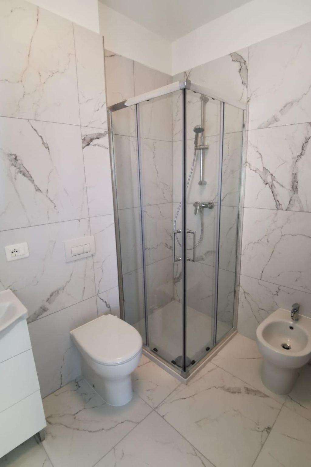 Each flat has a graceful and modern design, with sober lines and monochrome colours, and is designed to ensure a comfortable stay for both couples and families with children. The studio is equipped with a double bed with a faux leather headboard and a practical bunk bed, complete with a kitchenette equipped with hob, large fridge with freezer, ventilated oven and microwave. A sofa bed that can be converted into a further comfortable bed. A cosy balcony where you can relax in the fresh air. The bathroom is bright and windowed, with modern tiling, and offers a clear glass shower stall. In addition, the apartment is equipped with air conditioning and a heat pump to ensure an ideal climate in every season, TV and free WiFi . Washing machines are available on the ground floor for all guests.