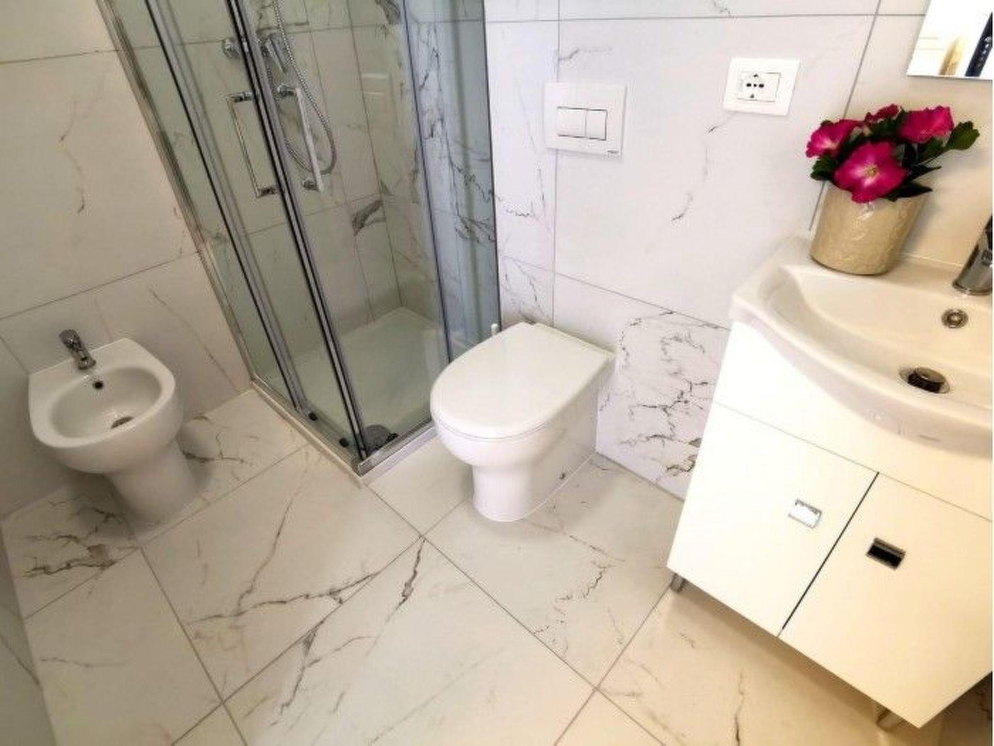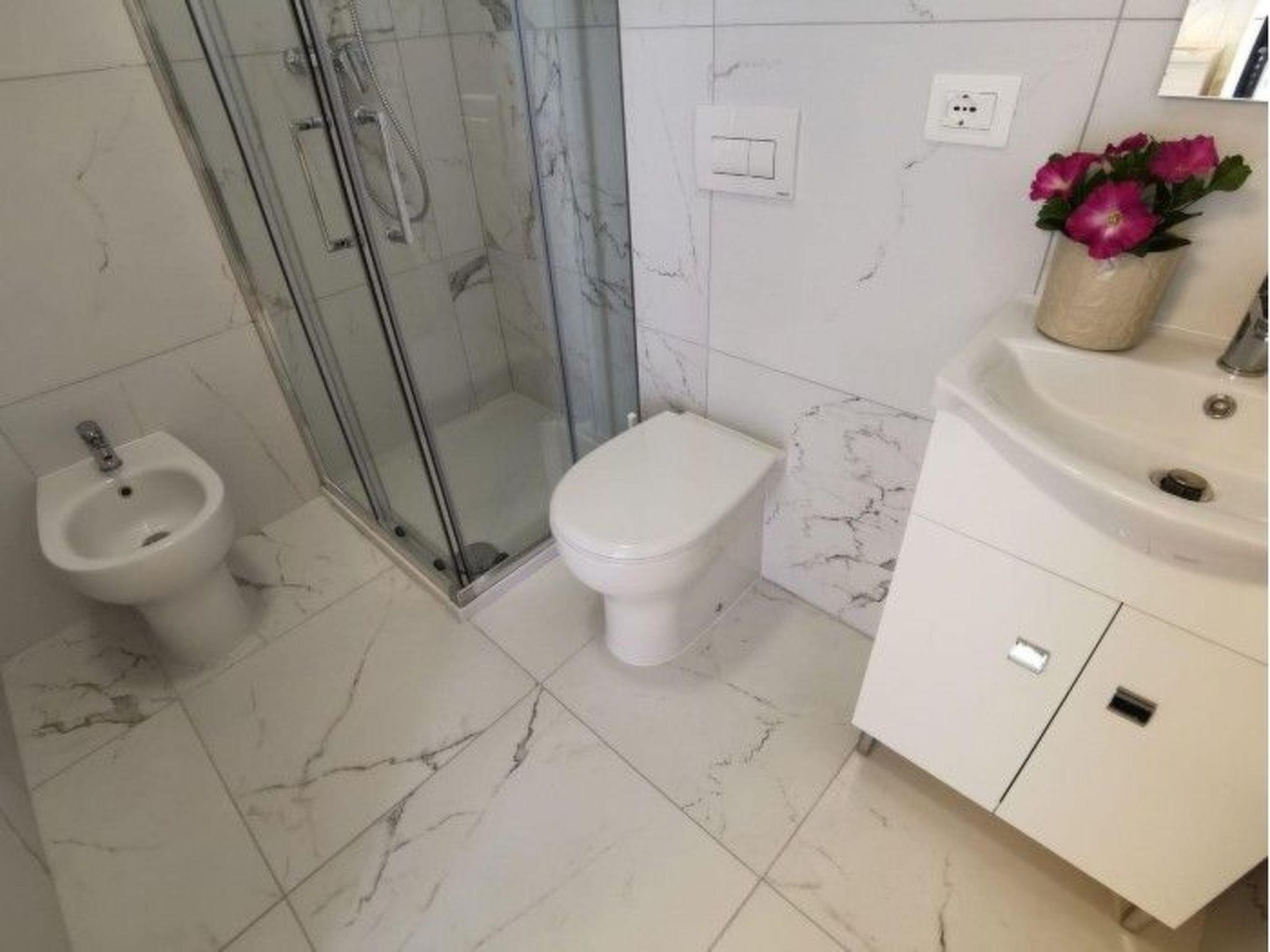 Each flat has a graceful and modern design, with sober lines and monochrome colours, and is designed to ensure a comfortable stay for both couples and families with children. The studio is equipped with a double bed with a faux leather headboard and a practical bunk bed, complete with a kitchenette equipped with hob, large fridge with freezer, ventilated oven and microwave. A sofa bed that can be converted into a further comfortable bed. A cosy balcony where you can relax in the fresh air. The bathroom is bright and windowed, with modern tiling, and offers a clear glass shower stall. In addition, the apartment is equipped with air conditioning and a heat pump to ensure an ideal climate in every season, TV and free WiFi . Washing machines are available on the ground floor for all guests.