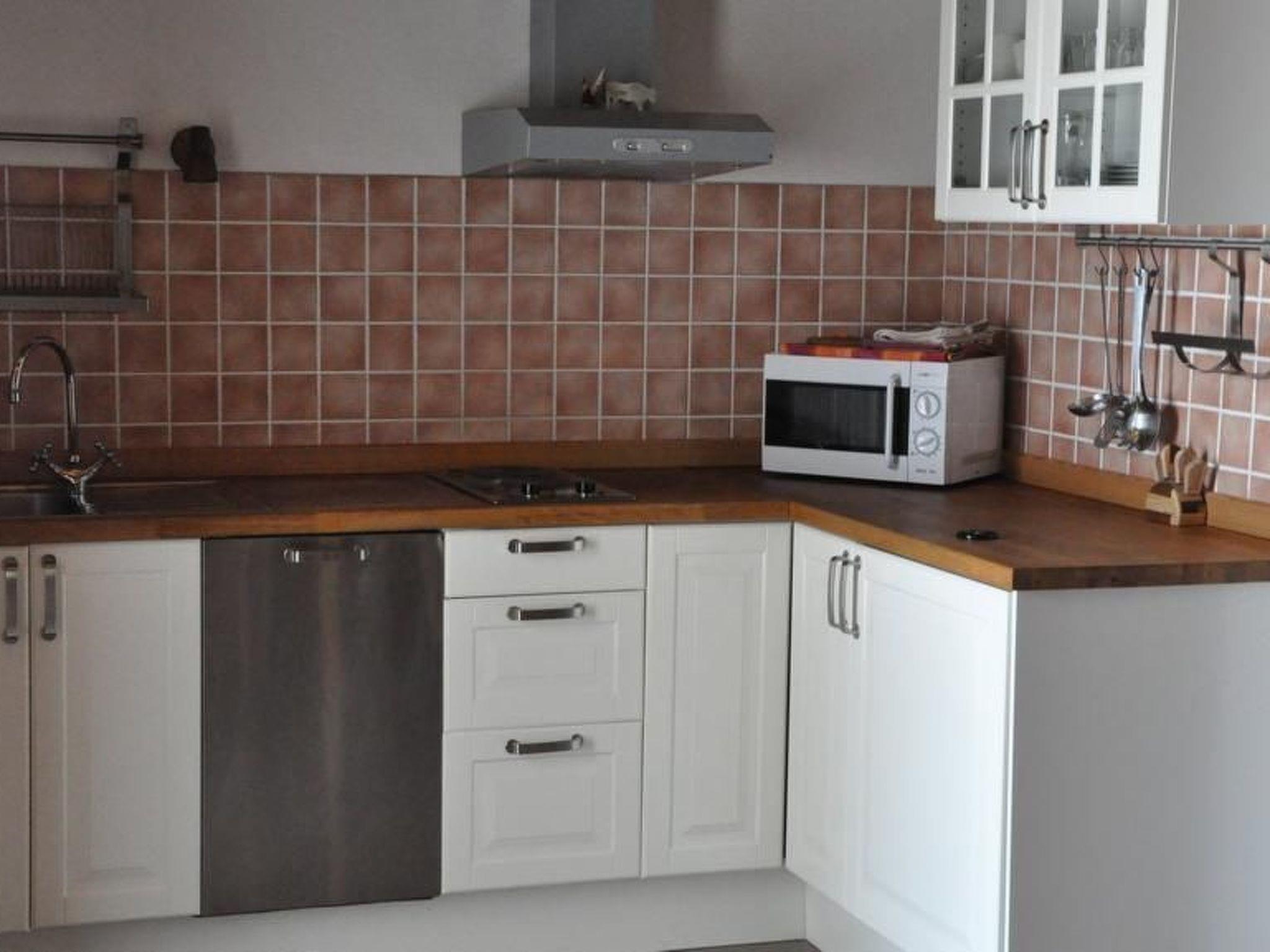 Living area with kitchenette (equipped with fridge, two electric hotplates, microwave oven, dishwasher),19" LCD TV, satellite decoder,One bedroom with a 160 cm double bed, with built-in wardrobe and chest of drawersOne bedroom with two 80 cm single beds, with built-in wardrobe and deskBathroom with accessible showerLarge furnished private terrace
