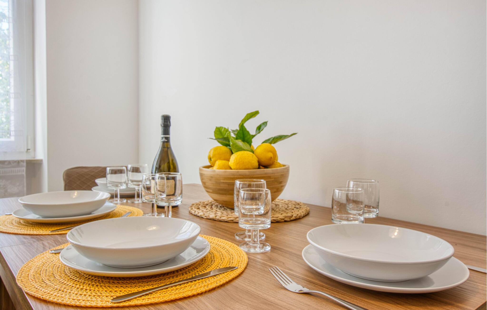 Denne lejlighed imponerer ikke kun med sin fantastiske havudsigt, men også med sine tidløst moderne møbler. Gør det behageligt i sofaen med en kop kaffe, tilbring hyggelige timer med at spille bræt- og kortspil eller stream den nyeste serie.