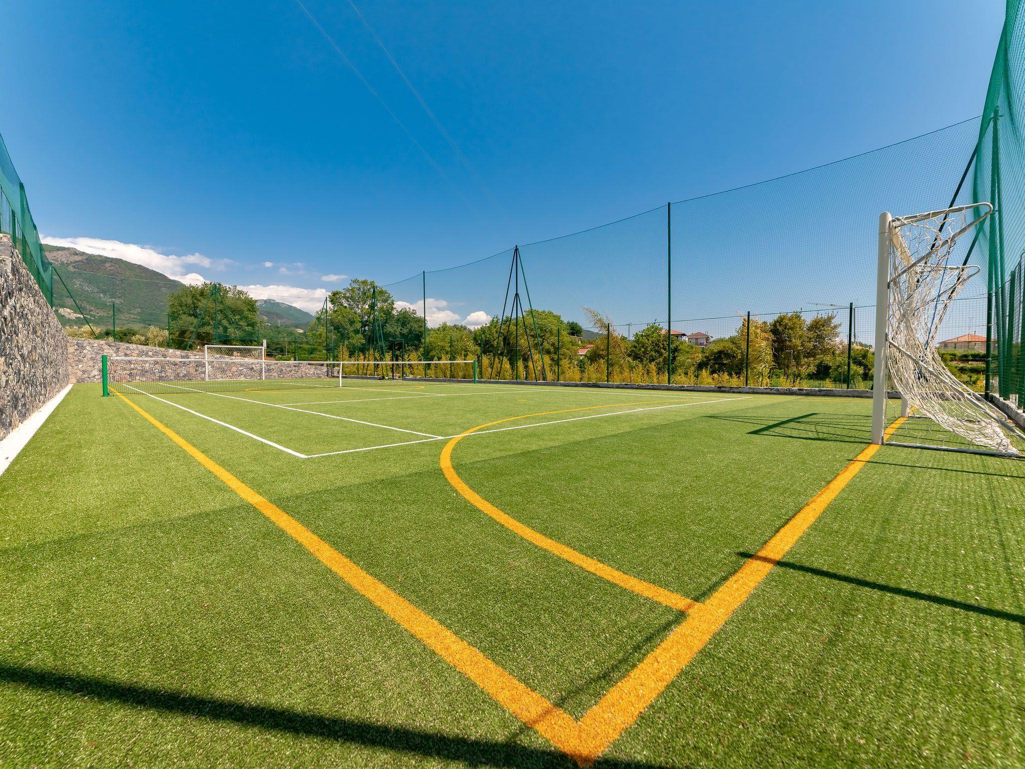 The large 400-square-metre swimming pool designed by architect Luigi De Filippo is the fulcrum on which rest important benefits such as the chaise longues with hydromassage and the emotional showers by the poolside. The solarium area for relaxing in complete safety and the outdoor area for refreshments complete the environment. Nearby is the multifunctional sports field for tennis and five-a-side football.