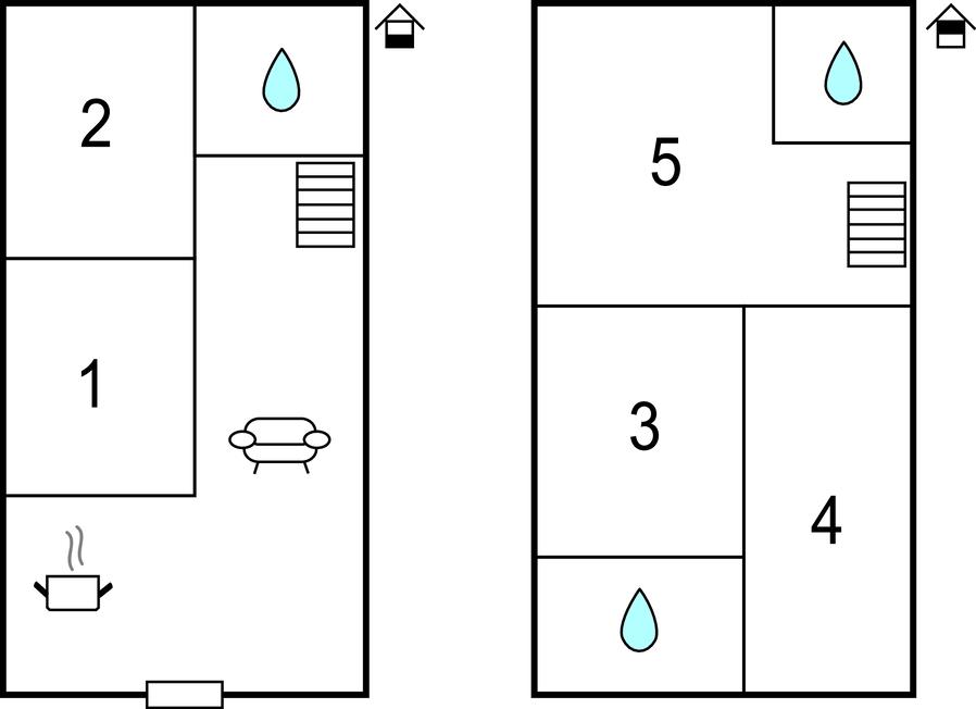 Soveværelse (nr. 5) - 1 Soveplads. (Enkeltseng(e)). 2 Sovepladser. (Dobbeltseng(e)).