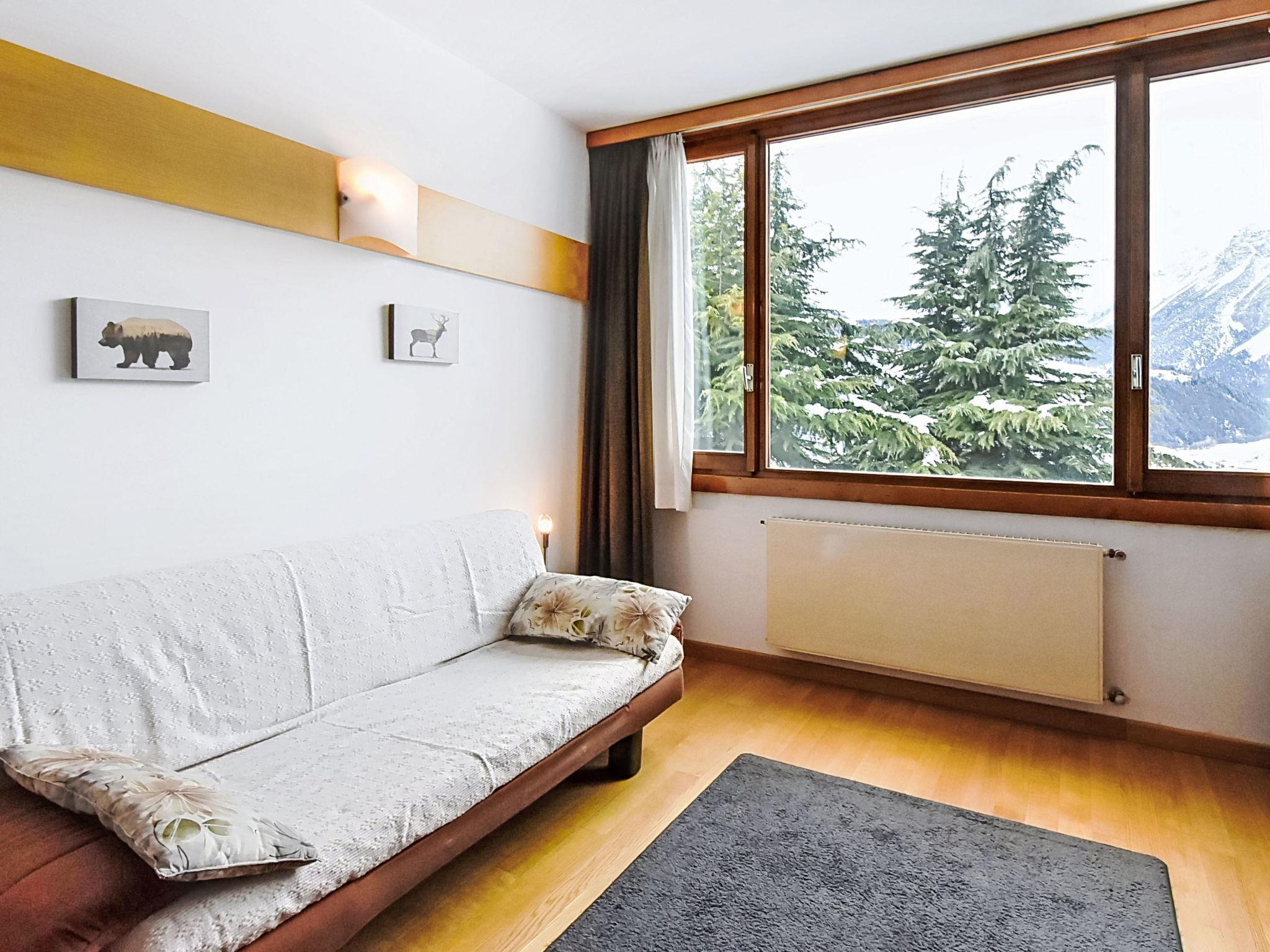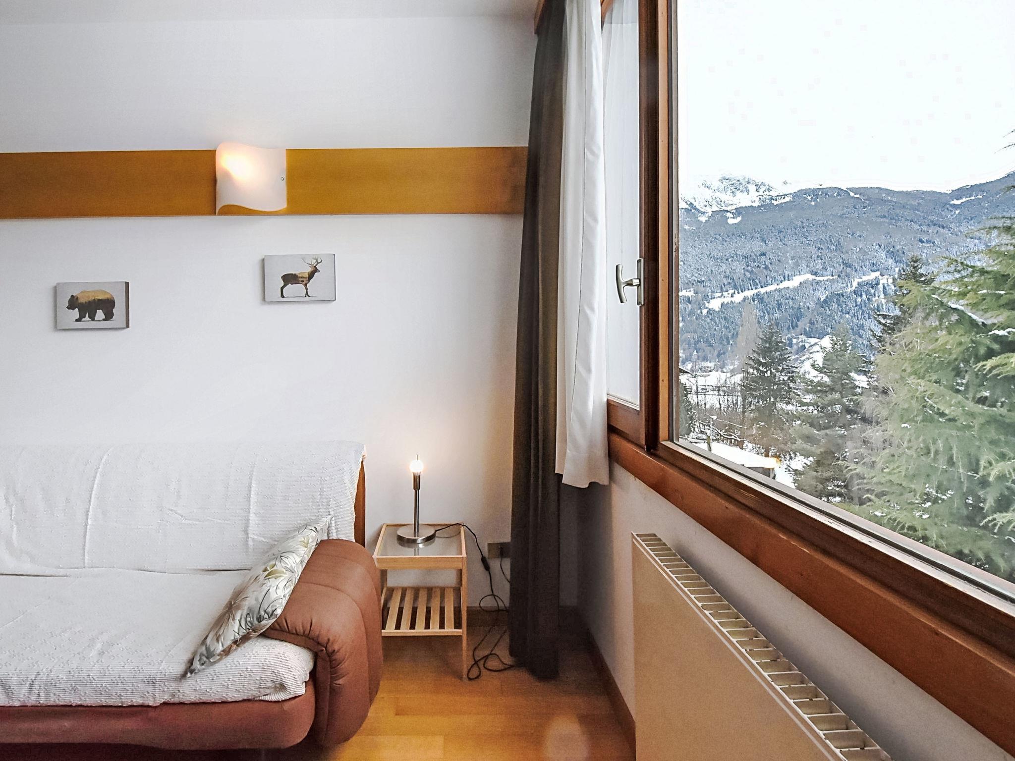 "Nevada View", 2-room apartment 55 m2, on the upper ground floor, north facing position. Bright, simple and comfortable furnishings: living/dining room with panoramic window with 1 double sofabed, dining table and TV. 1 room with panoramic window with 1 double bed. Exit to the terrace. Small kitchenette in the entrance (4 hot plates, oven, toaster, kettle). Shower/bidet/WC. Heating. Parquet floors. Small terrace roofed. Terrace furniture. Very beautiful panoramic view of the mountains, the valley and the town. Facilities: children's high chair, baby cot, hair dryer. Garage space n 2. Please note: fridge without freezer. Maximum 1 pet/ dog allowed. Smoke alarm, fire extinguisher. IT014072C2AZS5BJWD