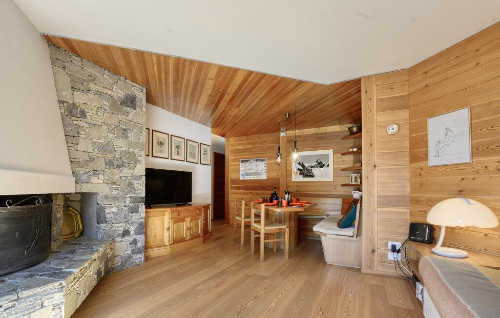 Nyd jeres ferie i denne lejlighed, der udstråler varme og komfort. Lad blikket Tag på vandretur gennem de store vinduer i opholdsstuen og nyd bjergudsigten. Læn jer tilbage i den komfortable sofa foran pejsen og nyd den rolige atmosfære. Træpanelerne på væggene og loftet skaber en særlig indbydende atmosfære. Brug spisebordet til fælles måltider eller hyggelige spilleaftener. I kan tilberede lækre retter i det smukke trækøkken, selv mens I er på ferie.