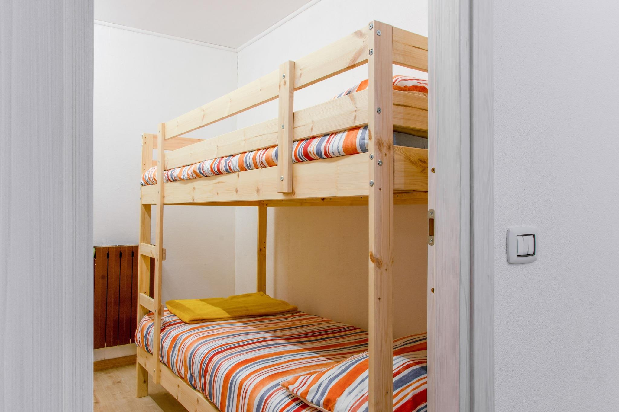 På 6. etage: (Køkken(elkedel, komfur, kaffemaskine, mikrobølgeovn, opvaskemaskine , køle-fryseskab), stue / spisestue(dobbeltsovesofa, Fjernsyn, sofahjørne(6 personer)), soveværelse(dobbeltseng), soveværelse(køjeseng eller 2 enkeltsenge), badeværelse(bruser, håndvask, toilet, bidet, føntørrer), 4x elevator) skiopbevaring, varme, have, havemøbler, parkering
