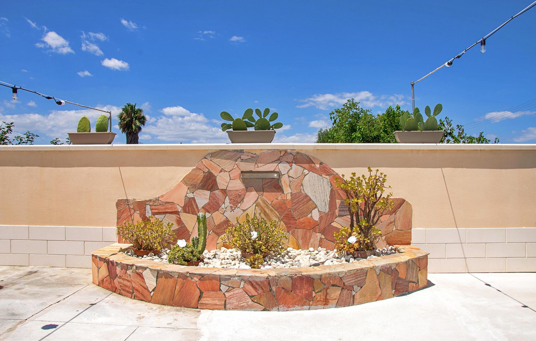 Træd ud på terrassen og nyd solen. Tag en forfriskende dukkert i poolen og se børnene hoppe på trampolinen.