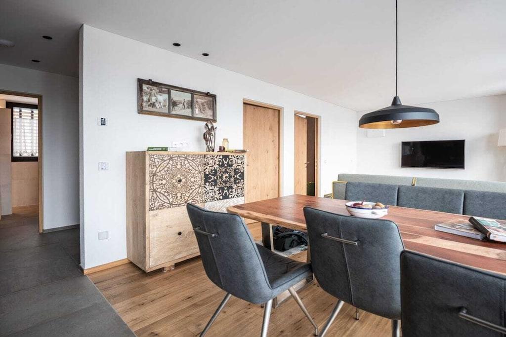 Vores nybyggede Klimahus A fra 2017 tilbyder vores gæster en 60 m² stor lejlighed i Reischach ved foden af Kronplan, udstyret med alle bekvemmeligheder, for to til seks personer. Nyd et glas vin eller slap blot af på din sydvestvendte private træterrasse. Lejlighedens faciliteter: Komfortabelt møbleret dobbeltværelse med garderobe. Soveværelse med to separate senge og garderobe. Moderne badeværelse med regnbruser, toilet, bidet, håndvask og hårtørrer. Åben opholdsstue med sydvestvendt glasfacade, fuldt udstyret moderne køkken (opvaskemaskine, elektrisk komfur, køleskab med fryser, ovn, brødrister, kaffemaskine), spiseplads og sovesofa, satellit-tv, gratis Wi-Fi og pengeskab. Privat træterrasse med siddepladser til afslapning. Rygning er ikke tilladt i denne lejlighed.