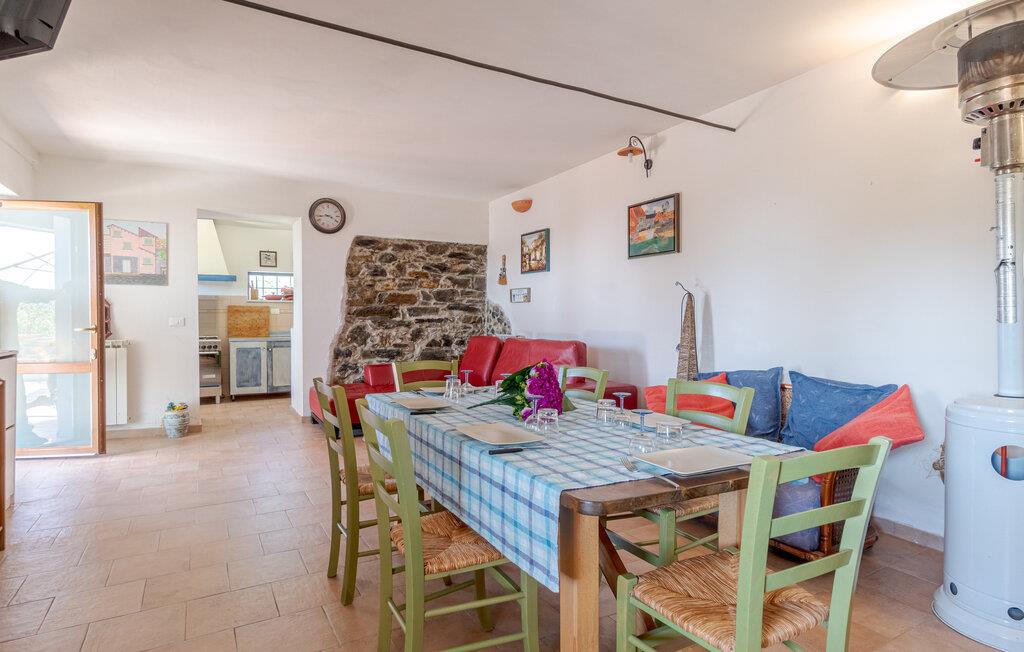 Pæn ferielejlighed i et hus til to familier i bakkerne af Lunigiana, ved grænsen til den levende Versilia-kyst og til vidunderlige Cinque Terre. Huset rummer to etager med køkken og stor stue i stueetagen samt tre soveværelser ovenpå, deraf to med eget badeværelse. Foran stuen ligger en dejlig, overdækket terrasse med indhegnet have, hvor I kan spise i det fri og børn kan lege med legeredskaberne. Her bor I ideelt til at opdage parken af Montemarcello (33 km), der er kendt for sit vidunderlige landskab, og hvor I kan dyrke trekking, sejle i kano på floden Vara eller se på fugle. Den lille by Tellaro (29 km) er opført på klipper og kendt for sin karakteristiske fejring af Jesus‘ fødsel under vandet. I nærheden ligger også Portovenere (38 km), bugtens perle, med sit eksklusive bycentrum og den berømte store trappe. Besøg også dejlige (27 km) med sit slot og tag på vidunderlige gåture til strandene af San Terenzo, yndet af romantikkens forfattere som Byron og Shelley. Her, fra Lerici, er der færger til de vidunderlige Cinque Terre (Riomaggiore 36 km). La Spezia (22 km) byder på første weekend i august på sin Palio del Golfo, en særlig attraktion, hvis I brænder for sejlads og maritime traditioner; her kan I iagttage, hvordan 13 håndbyggede fiskerbåde dyster om den første plads ved kajen. Lige så vigtig er Festa della Marineria i de første fire dage af oktober, der også fejrer de maritime traditioner af La Spezia. Andre udflugtsmål herfra er Marina di Massa (45 km) og Forte dei Marmi (57 km). Hvis I holder af trekking, kan I vandre fra de Apuanske Alper til Colonnata (50 km), hvor I kan smage det lækre spæk Lardo di Colonnata. Mod forespørgsel er der undervisning i det liguriske køkken. En ellers asfalteret del af vejen (2,5 km) er meget ujævn og skal køres på forsigtigt.