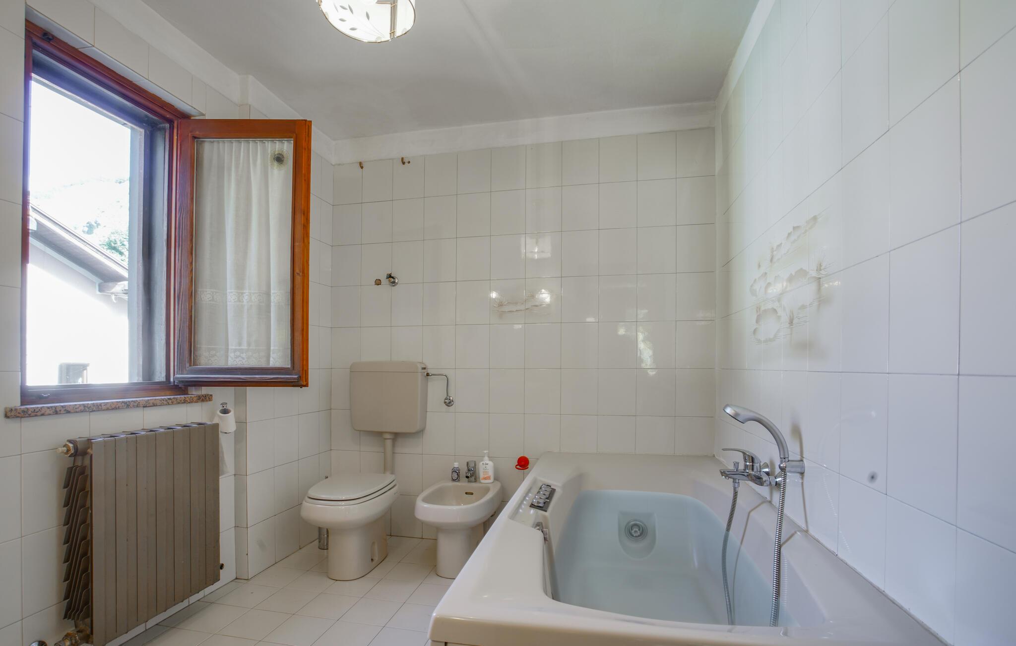 Badeværelse (nr. 1) - WC. Varmt og koldt vand. Håndbruser og badekar