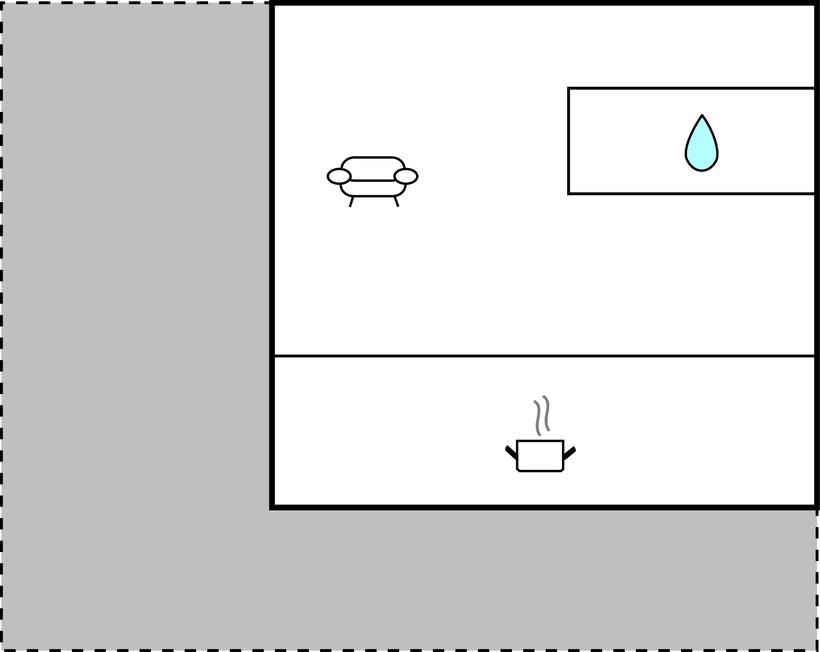 Køkkenet har v/k vand