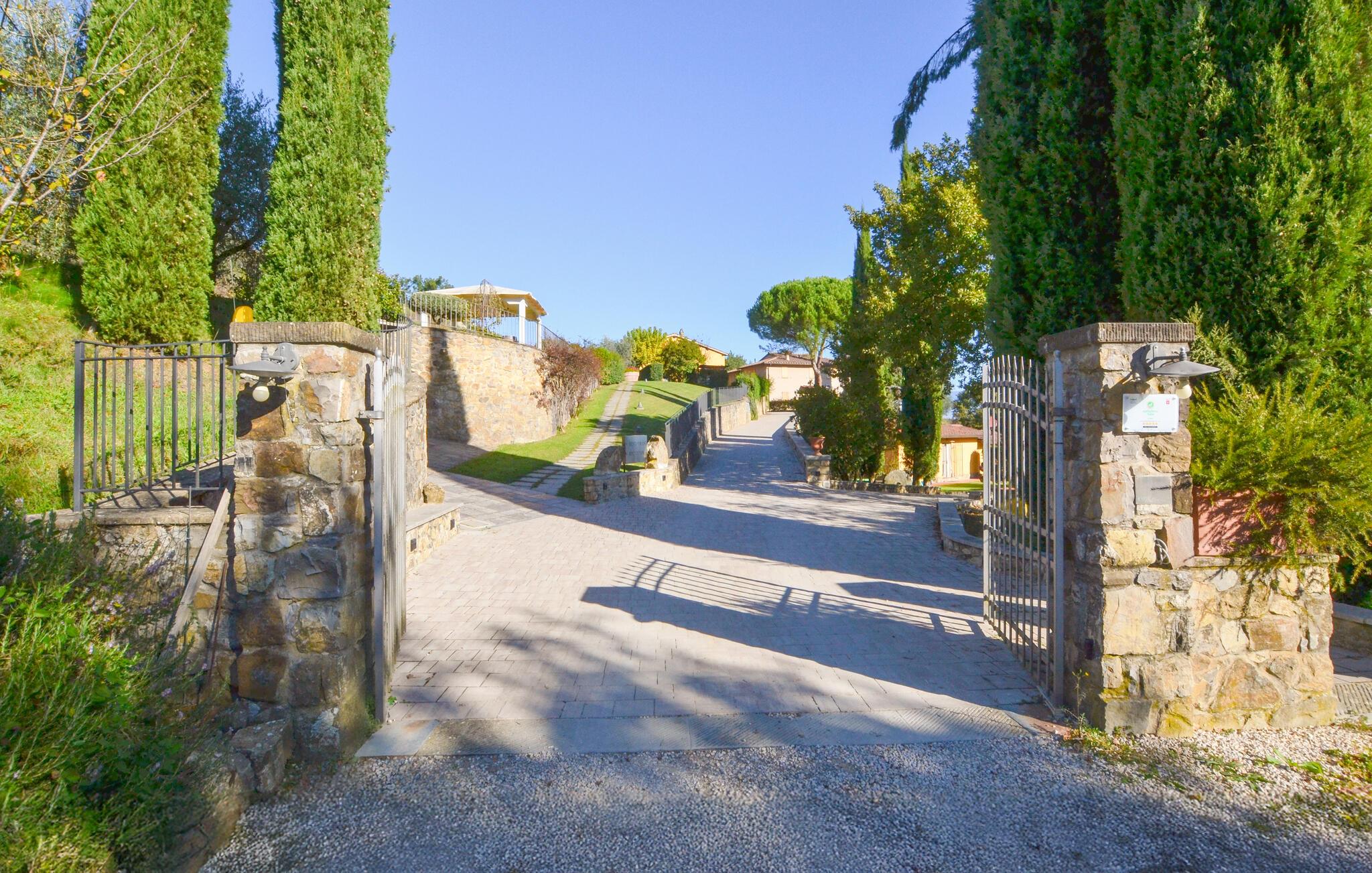 Vandr eller cykl gennem Chiantis bølgende bakker, forbi olivenlunde og vinmarker, prøv ejendommens egen olivenolie og regionale retter, og udforsk middelalderbyerne Arezzo, Siena og Montevarchi. Slentr gennem de historiske gader og livlige markeder, og nyd en dag med wellness i Rapolano Termes termiske bade.