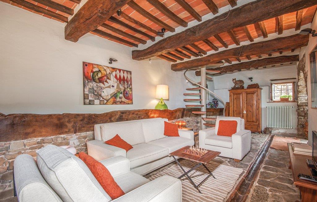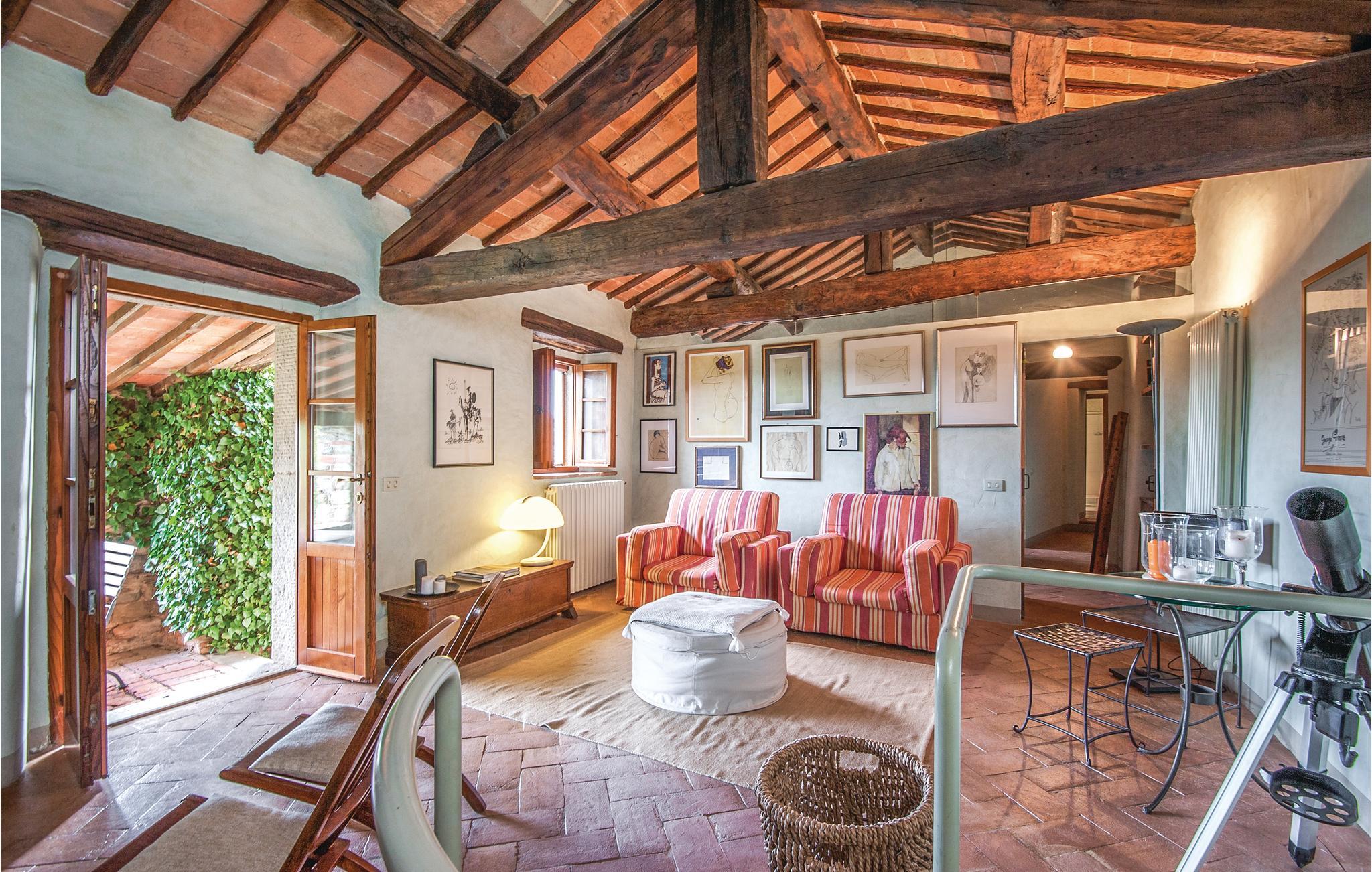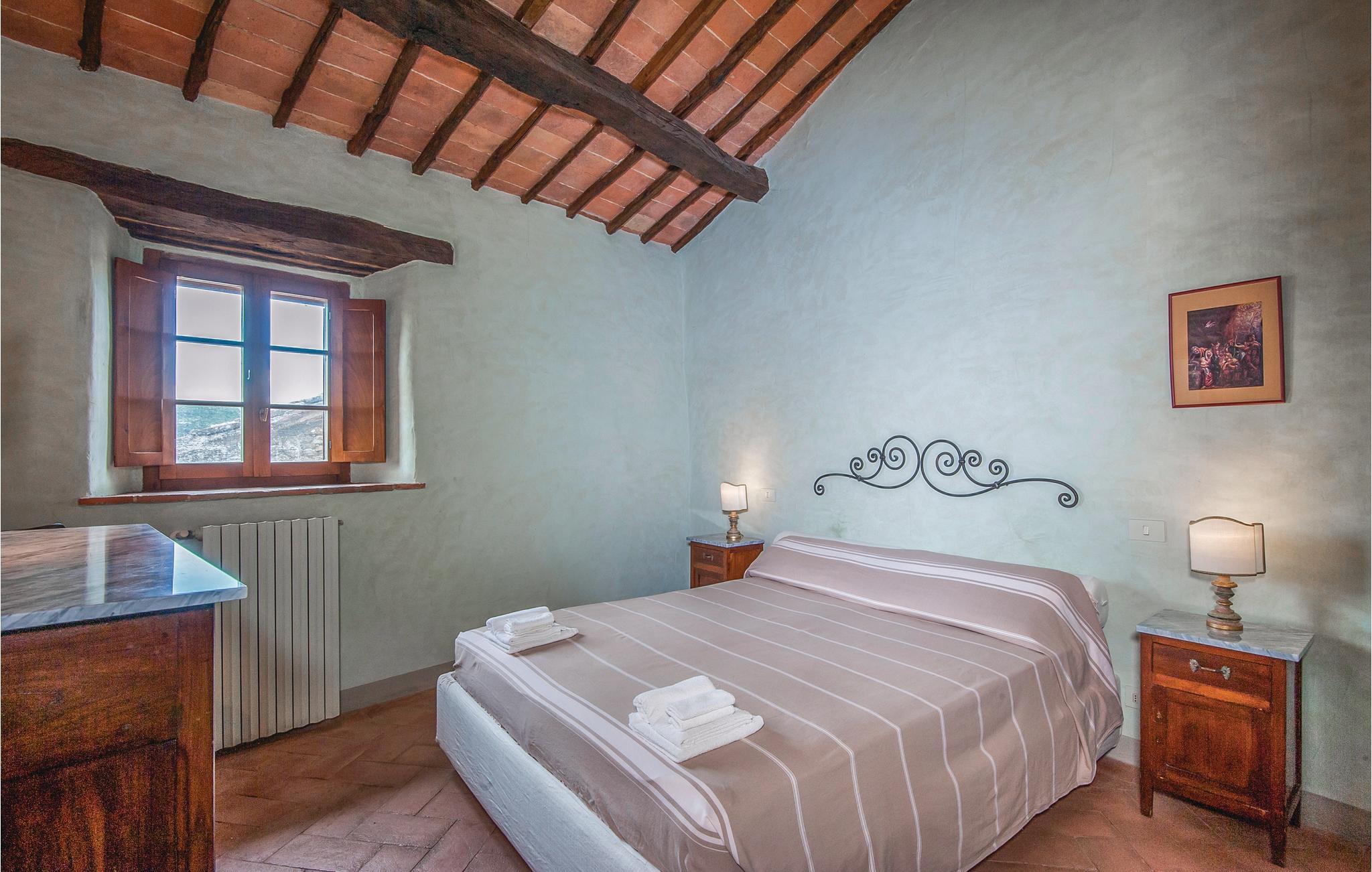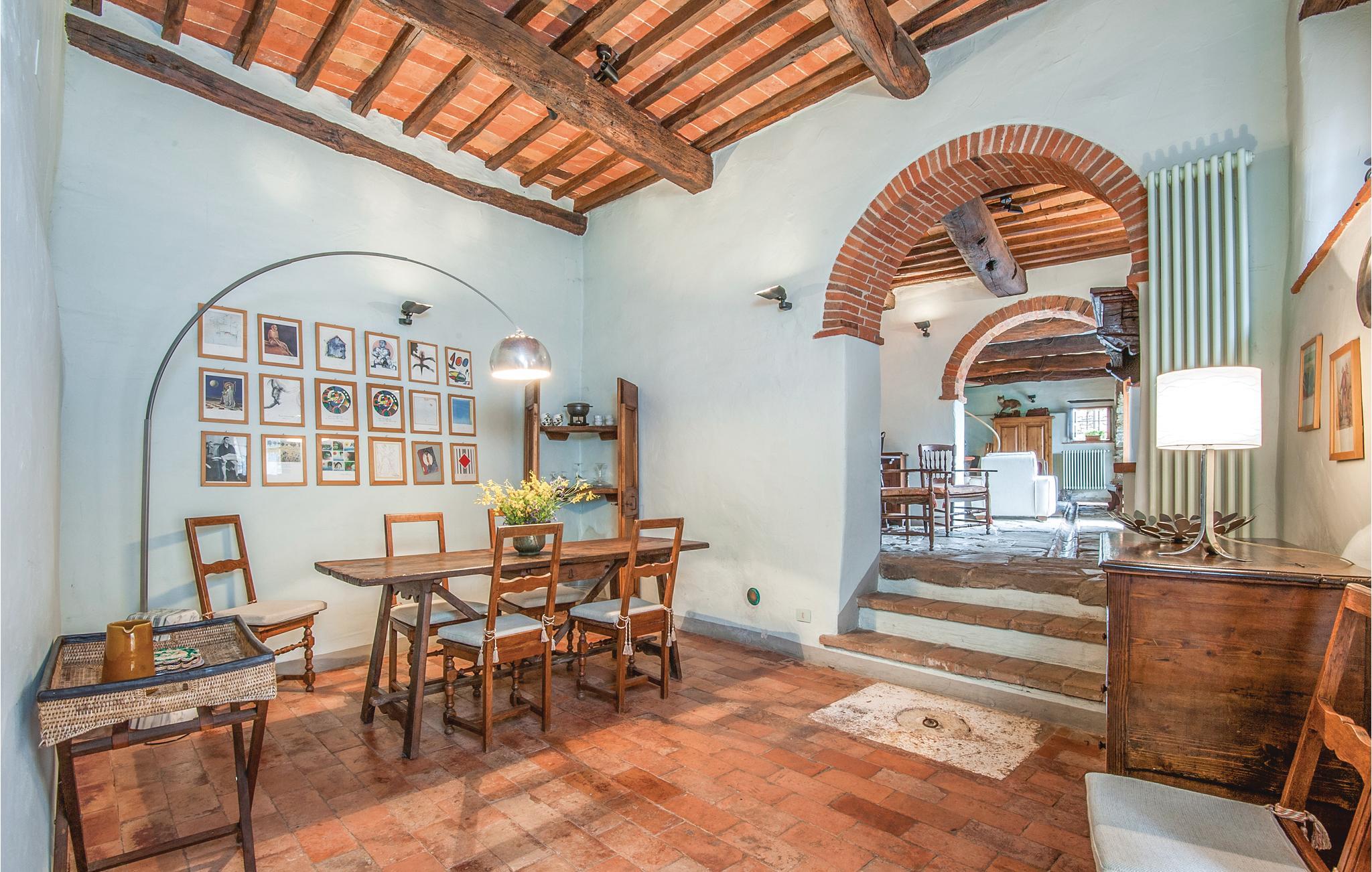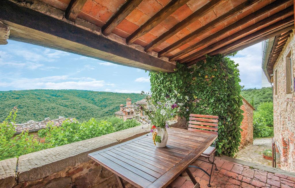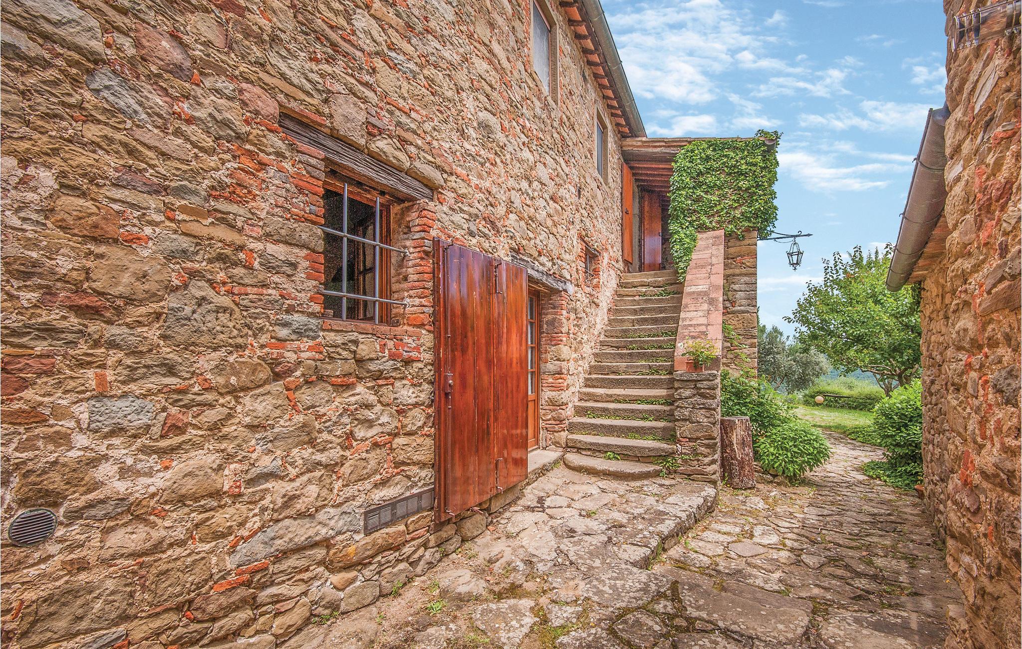 I en malerisk Borgo, ikke langt fra Ambra (6 km) ligger dette smagfuldt indrettede feriehus (halvdel af dobbelthus). Der er en langstrakt stue med åben kamin i stueplan, soveværelserne på første sal nås enten via en indendørs vindeltrappe eller en udendørs trappe. Foran huset er en overdækket loggia. Borgoen ligger på en lille bakke, i et rolig og skovrig sidedal. Der hører ren lille kirke til, med moderne skulpturer – en lille by for kunstnere og individualister. Lidt ovenfor huset ligger en pool i naturomgivelser med plæne til solbad og en tennisbane. I omgivelserne er der skønne udflugtsmål: Til Siena er der 30 km, til Monte San Savino og til de varme kurbade ved Rapolano ca. 15 km, Arezzo 35 km. I Ambra er der butikker, bar og restauranter. De sidste 1,8 km op til huset er ad en stejl grusvej, der ikke er egnet til lave biler.