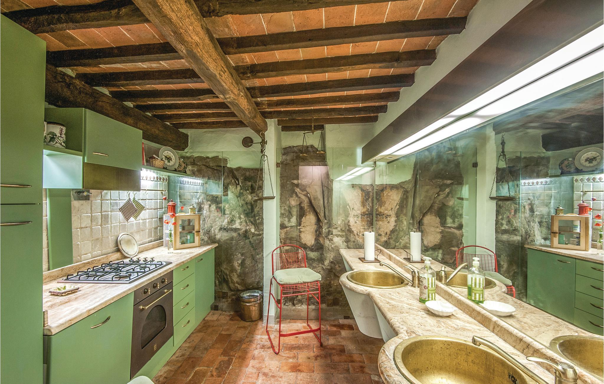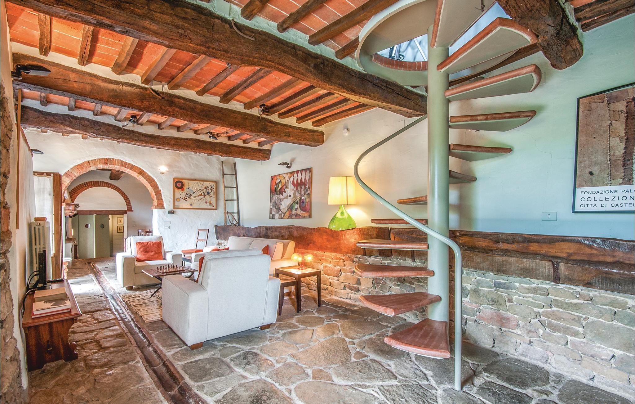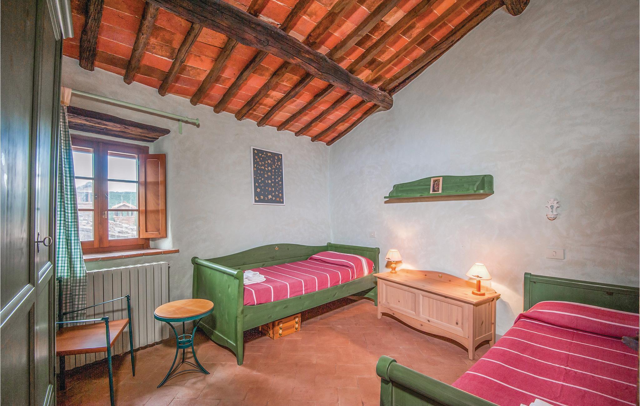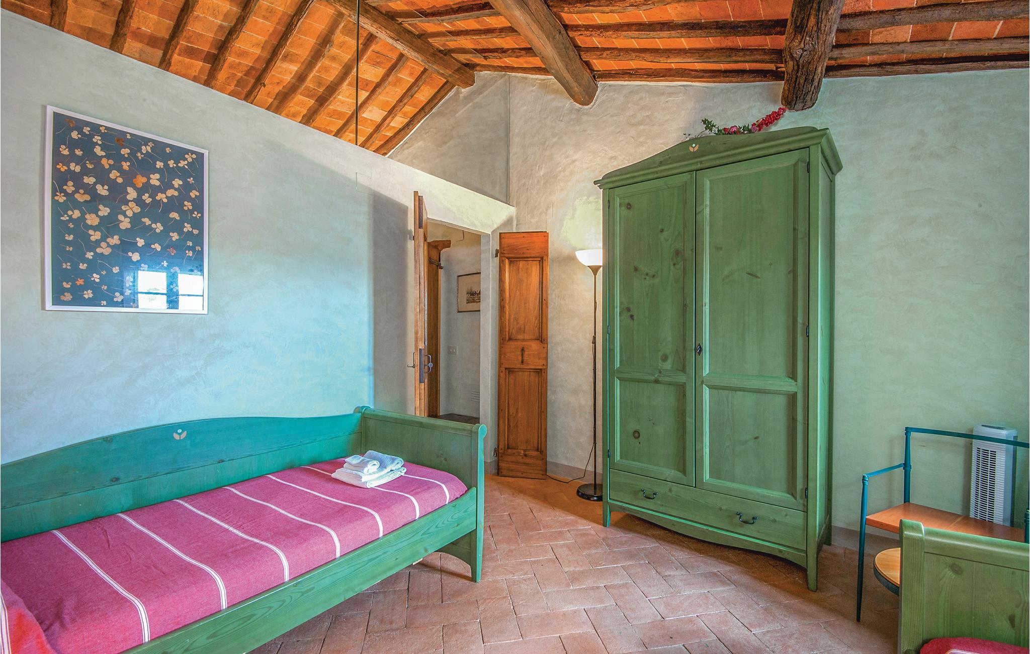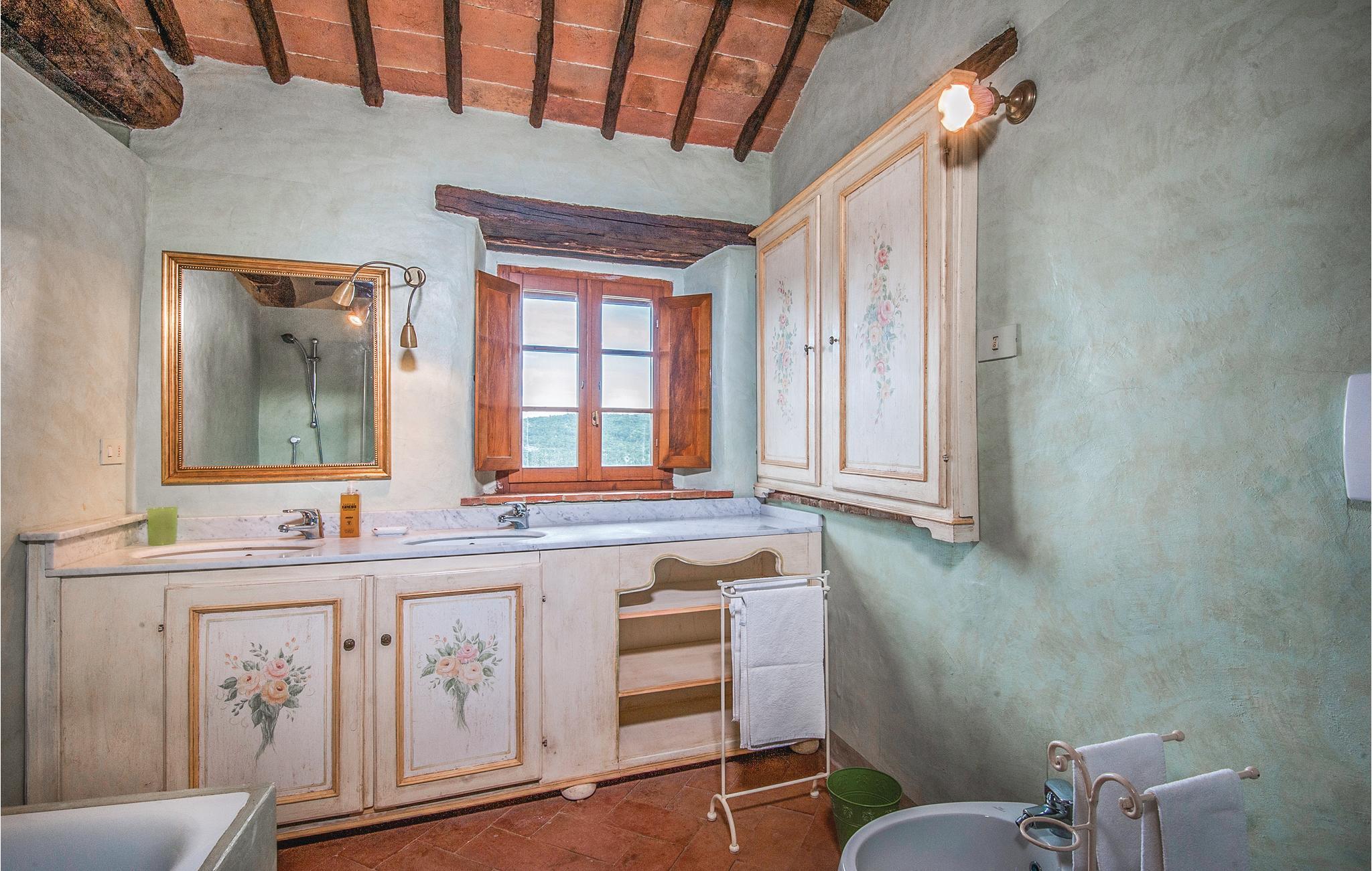 I en malerisk Borgo, ikke langt fra Ambra (6 km) ligger dette smagfuldt indrettede feriehus (halvdel af dobbelthus). Der er en langstrakt stue med åben kamin i stueplan, soveværelserne på første sal nås enten via en indendørs vindeltrappe eller en udendørs trappe. Foran huset er en overdækket loggia. Borgoen ligger på en lille bakke, i et rolig og skovrig sidedal. Der hører ren lille kirke til, med moderne skulpturer – en lille by for kunstnere og individualister. Lidt ovenfor huset ligger en pool i naturomgivelser med plæne til solbad og en tennisbane. I omgivelserne er der skønne udflugtsmål: Til Siena er der 30 km, til Monte San Savino og til de varme kurbade ved Rapolano ca. 15 km, Arezzo 35 km. I Ambra er der butikker, bar og restauranter. De sidste 1,8 km op til huset er ad en stejl grusvej, der ikke er egnet til lave biler.