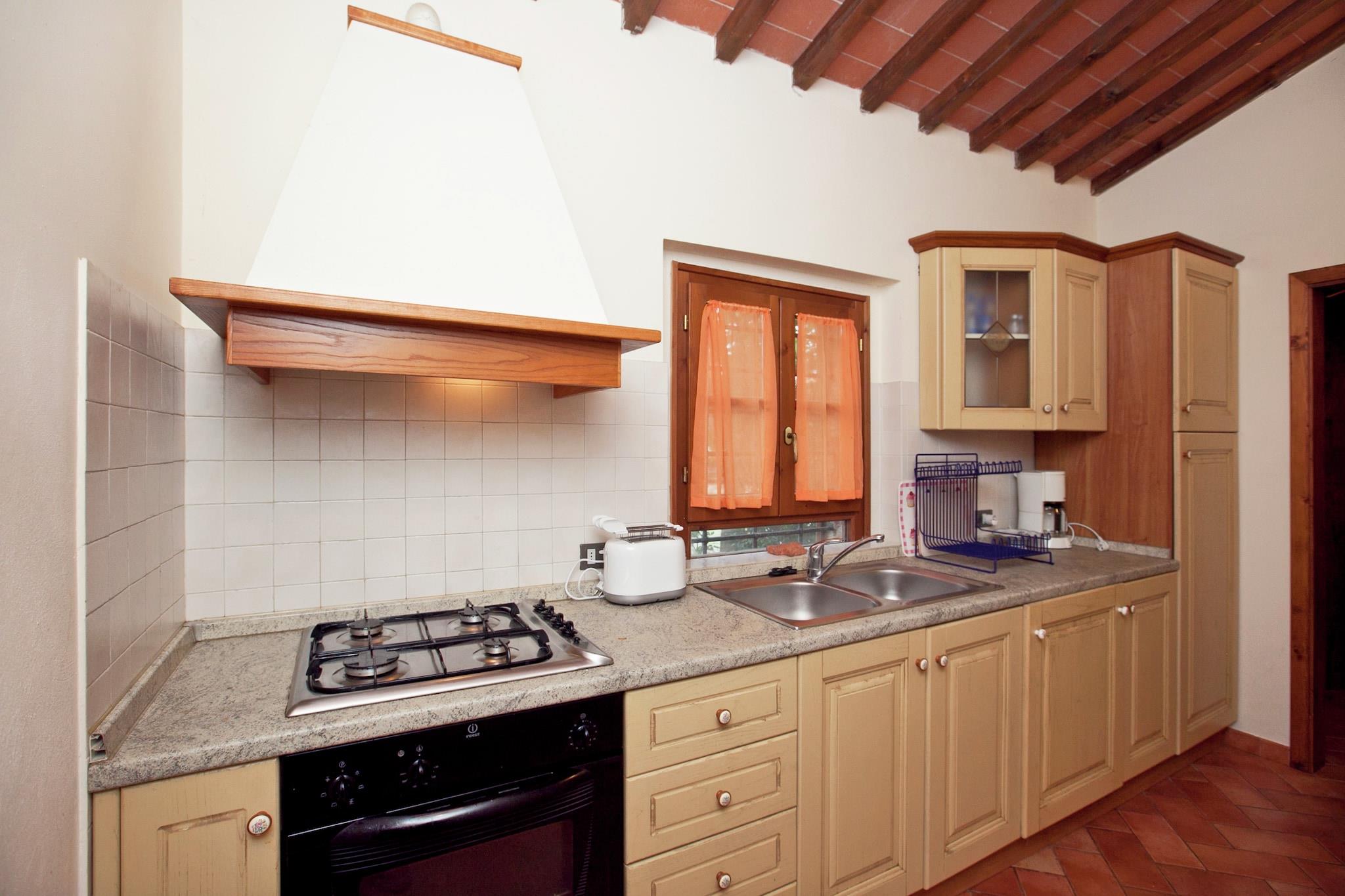 Dette rummelige feriehus ligger i Bucine og har en vidstrakt have med 2 soveværelser til 6 personer. Perfekt til små grupper, gæster kan slappe af i swimmingpoolen og få adgang til WiFi på denne kæledyrsvenlige ejendom. Klimaanlægget i hvert værelse sikrer, at huset forbliver køligt i sommermånederne. _x000D_ _x000D_ Eventyrelskere kan gå ned til skoven, 100 m væk, og følge adskillige vandrestier der. Byens centrum ligger 1,5 km væk. Hvis du ønsker at nyde et toscansk måltid, kan du gå til restauranterne, 2 km væk._x000D_ _x000D_ Gæsterne kan slappe af i den smukke have med havemøbler og nyde en varm grill ved poolen. Køkkenet er veludstyret med kaffemaskine, ovn og køleskab. Denne børnevenlige ejendom har også en rutsjebane, mens en barneseng og høj stol er til rådighed mod et mindre gebyr. Opvarmning er også tilgængelig, mens der også er en pejs i stuen. Gæsterne kan benytte parkeringspladsen på stedet._x000D_ _x000D_ Offentlig transport er tilgængelig 500 m væk._x000D_