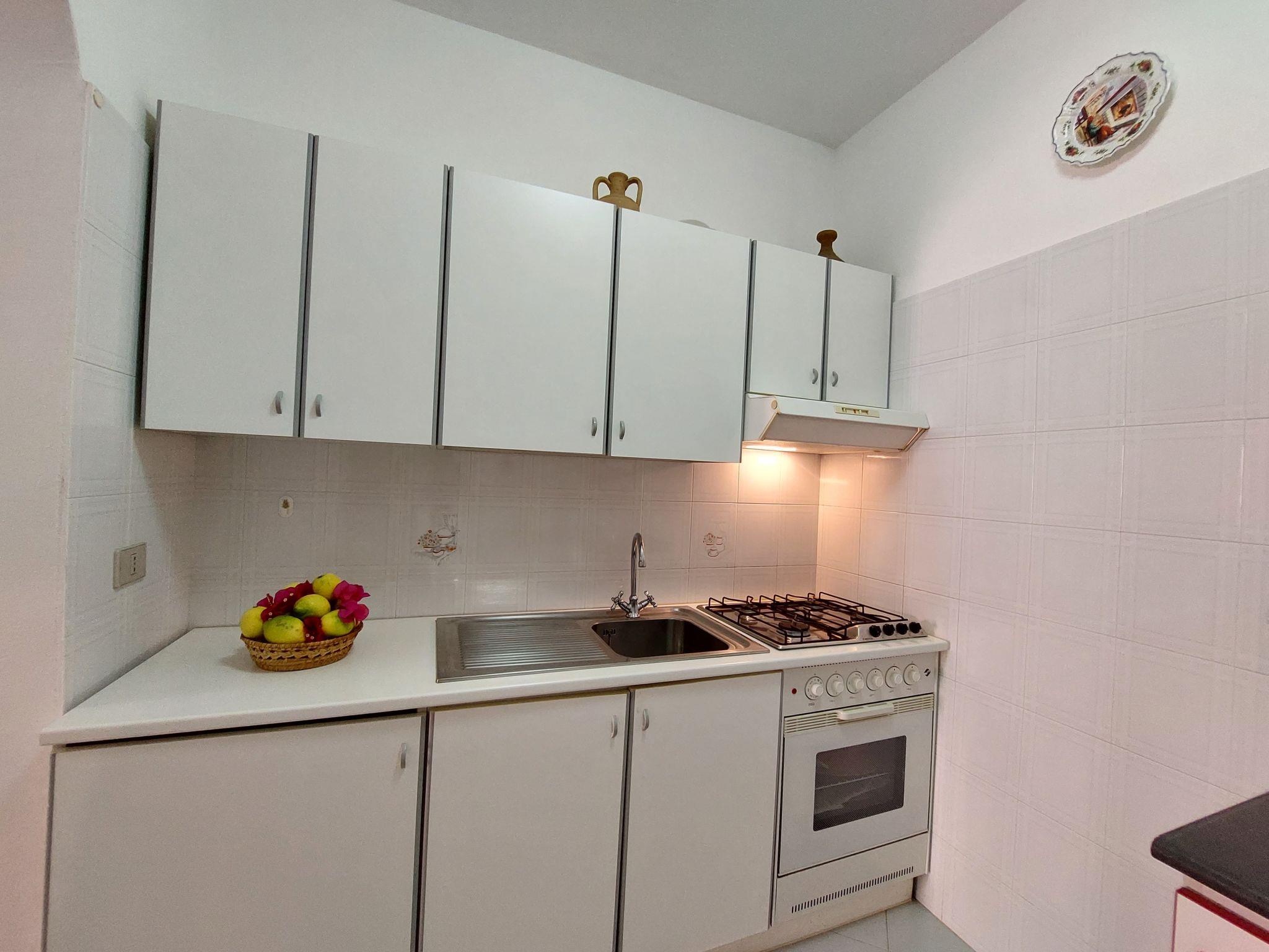 "Friscu", 2-room apartment 35 m2, on the ground floor. Simple and practical furnishings: open living/dining room with 1 double sofabed and open-hearth fireplace (only for decoration), satellite TV. 1 double bedroom. Open kitchen (oven, 4 gas rings, toaster, kettle). Shower/bidet/WC. No heating option. Terrace roofed. Terrace furniture. Facilities: washing machine, hair dryer. Maximum 1 pet/ dog allowed. IT090091C2000R8337