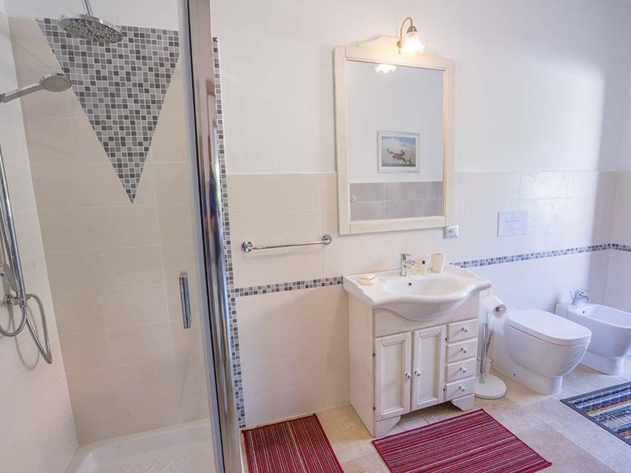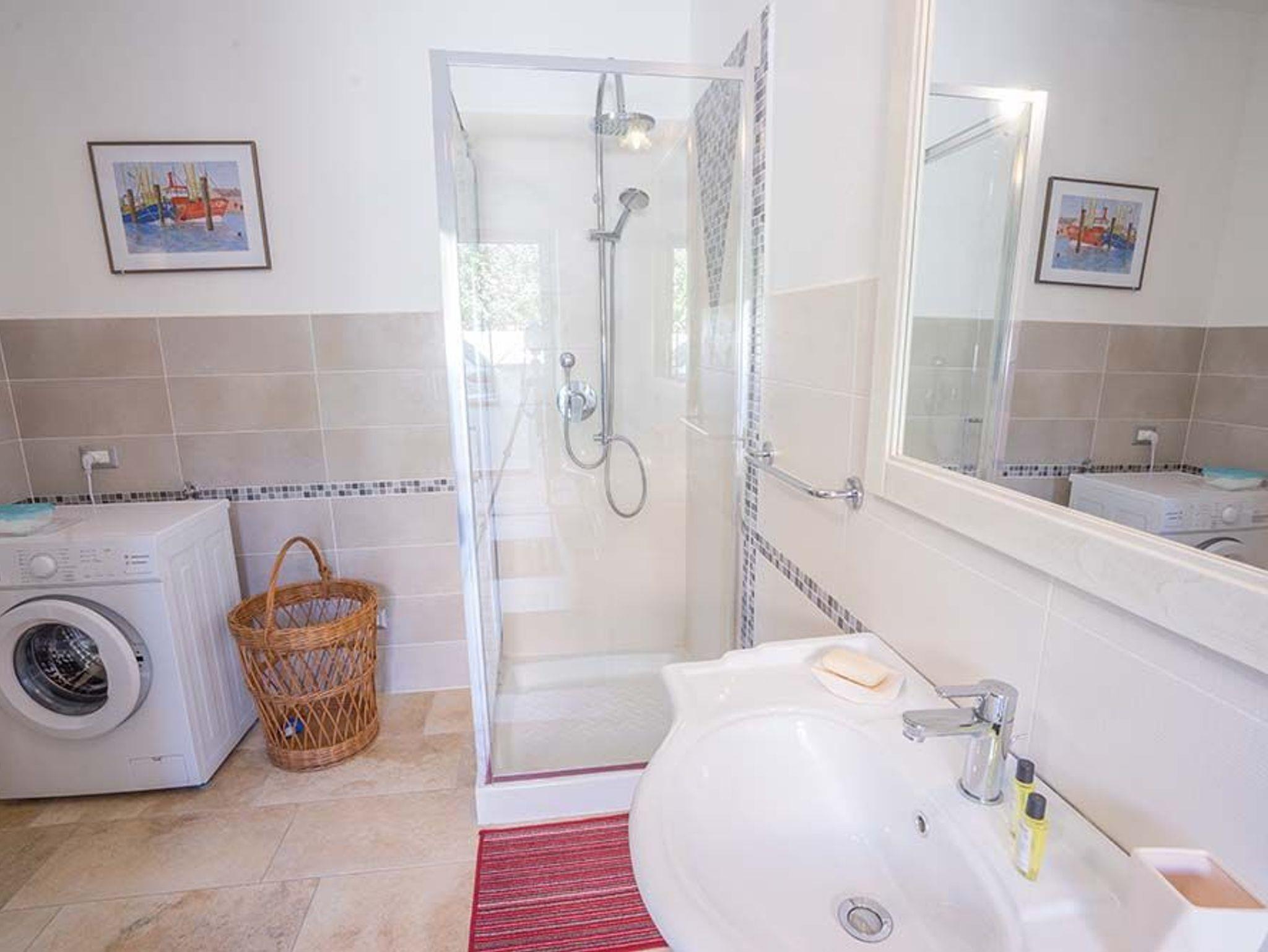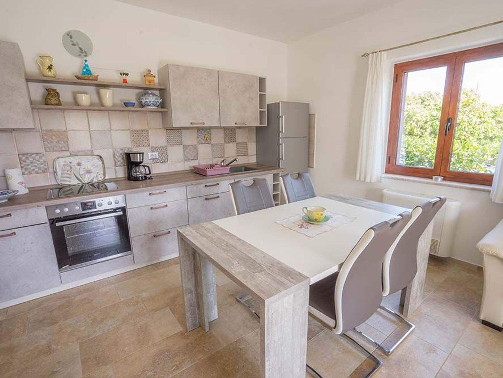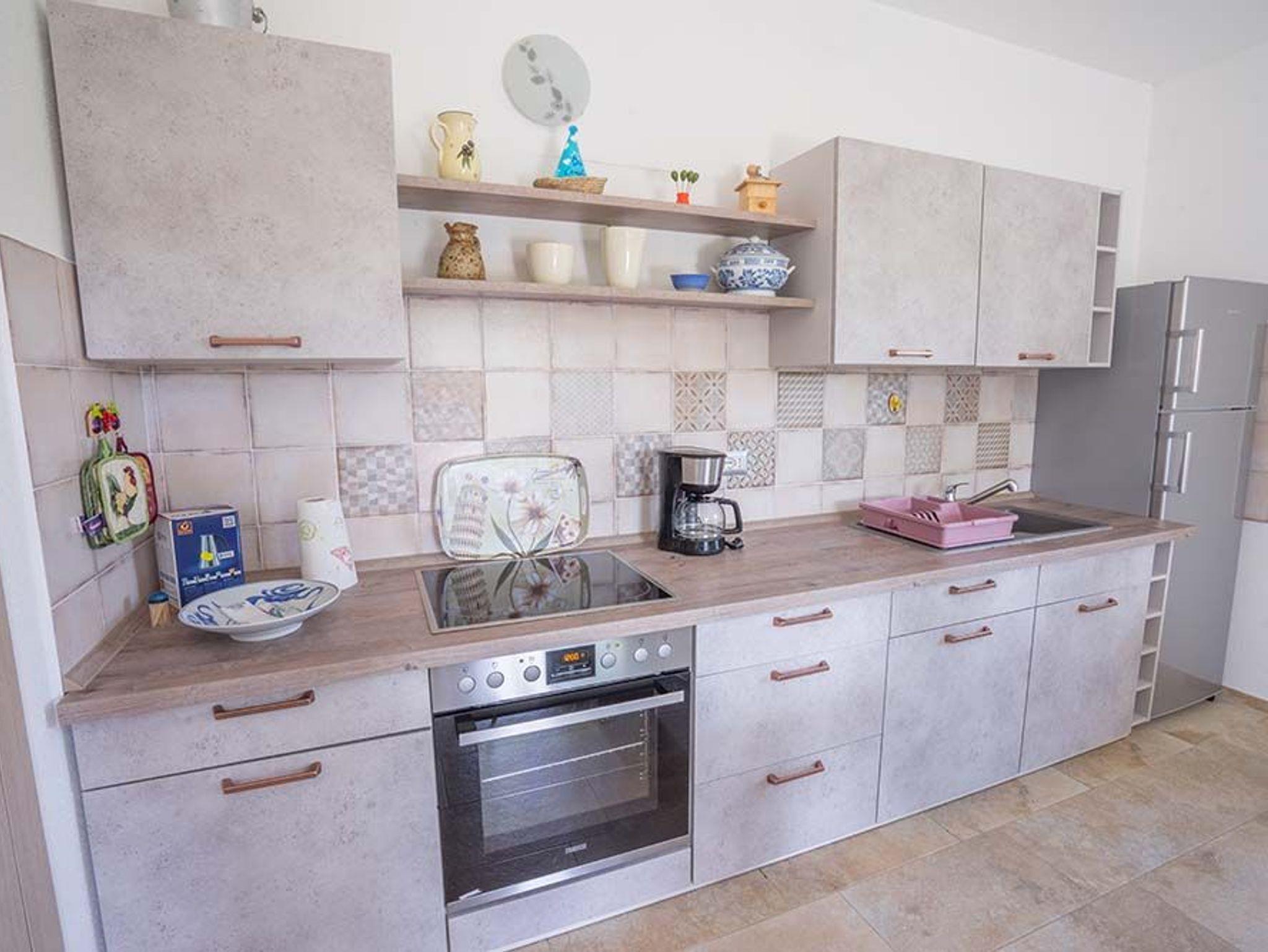 Eine schöne, gut separierte Terrasse auf der einen Seite, auf der anderen eine kleinere mit Außendusche (Die ist nach einem Strandtag besonders praktisch). Viel Platz zum Spielen für die Kinder, für Sie hingegen eine gemütliche Ecke zum Chillen. Hier macht das Planen Spaß: Direkt am Meer in der Tavernetta Pizza, Pasta und Pesce bestellen? Oder einkaufen und einfach mal zu Hause bleiben? Die Entscheidung ist nicht ganz leicht, denn die gut ausgerüstete Einbauküche ist für Hobby-Köche geradezu eine Herausforderung, und die Zutaten für ein zünftiges Barbecue von Schwein bis Wein gibt es ebenfalls ganz in der Nähe. Während die Gourmets Töpfe und Pfannen schwingen, erfreut sich der Rest der Familie am deutschen TV und WLAN an liebgewordenen Serien oder Sportsendungen. Wem es dabei zu heiß wird: Bitteschön, einfach eine der drei Klimaanlagen anwerfen!