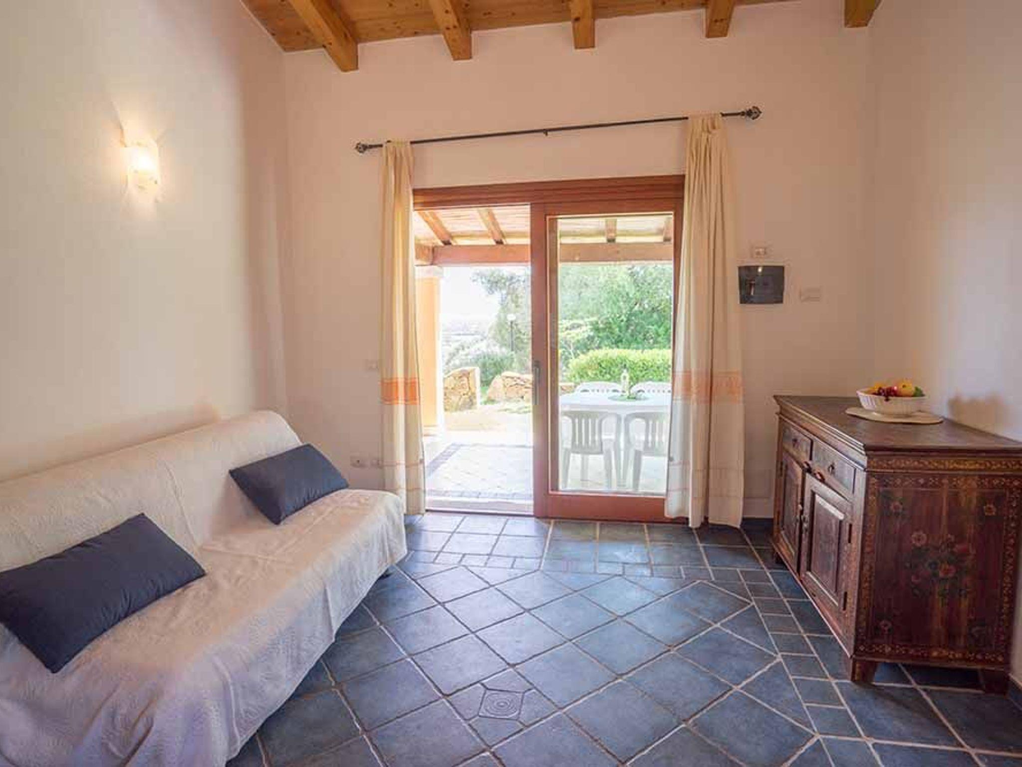 Warum nicht eine Villa im legendären Smeralda-Baustil? Zumal, wenn sie einen Pool und andere Vorzüge hat? Für diesen Baustil sind die Putz-Naturstein-Kombination mit Rundbögen typisch, hier ergänzt mit großzügigen Terrassen und herrlicher landschaftlicher Lage. Mit dieser können Sie das Eckhaus der aus vier Einheiten bestehenden Anlage mieten.