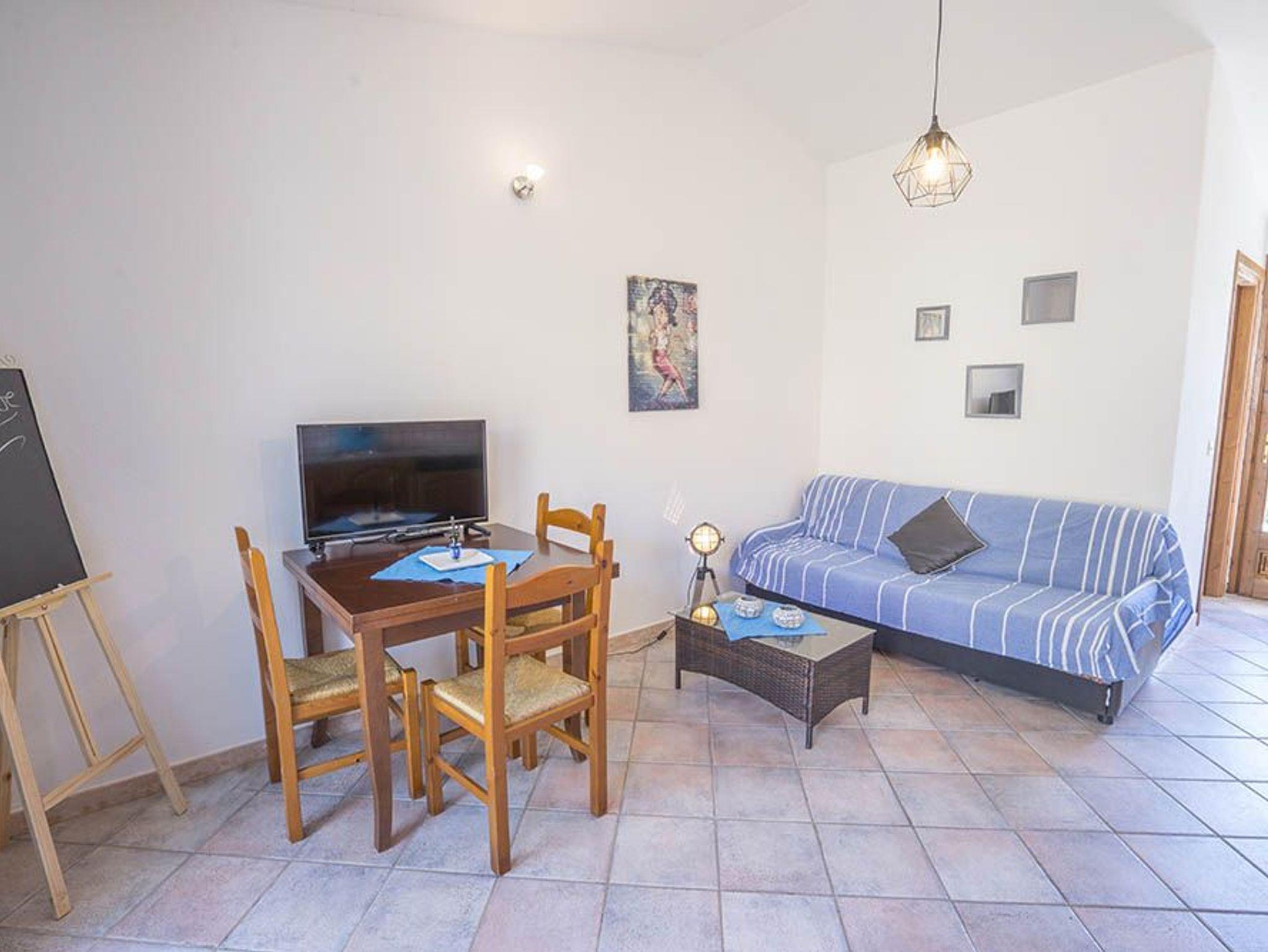 Hinter der großen Glasfront erwartet Sie der Wohn- Ess- Kochbereich der Villa Olivia. Gemütlich und funktionell sitzt man hier zusammen am Esstisch, oder auf dem Schlafsofa, um mit deutschem Fernsehen den Tag zu beenden. Durch den Gang nach hinten, betreten Sie das Bad, die BBQ-Terrasse und das gemütlich, ruhige Schlafzimmer mit Klimaanlage.