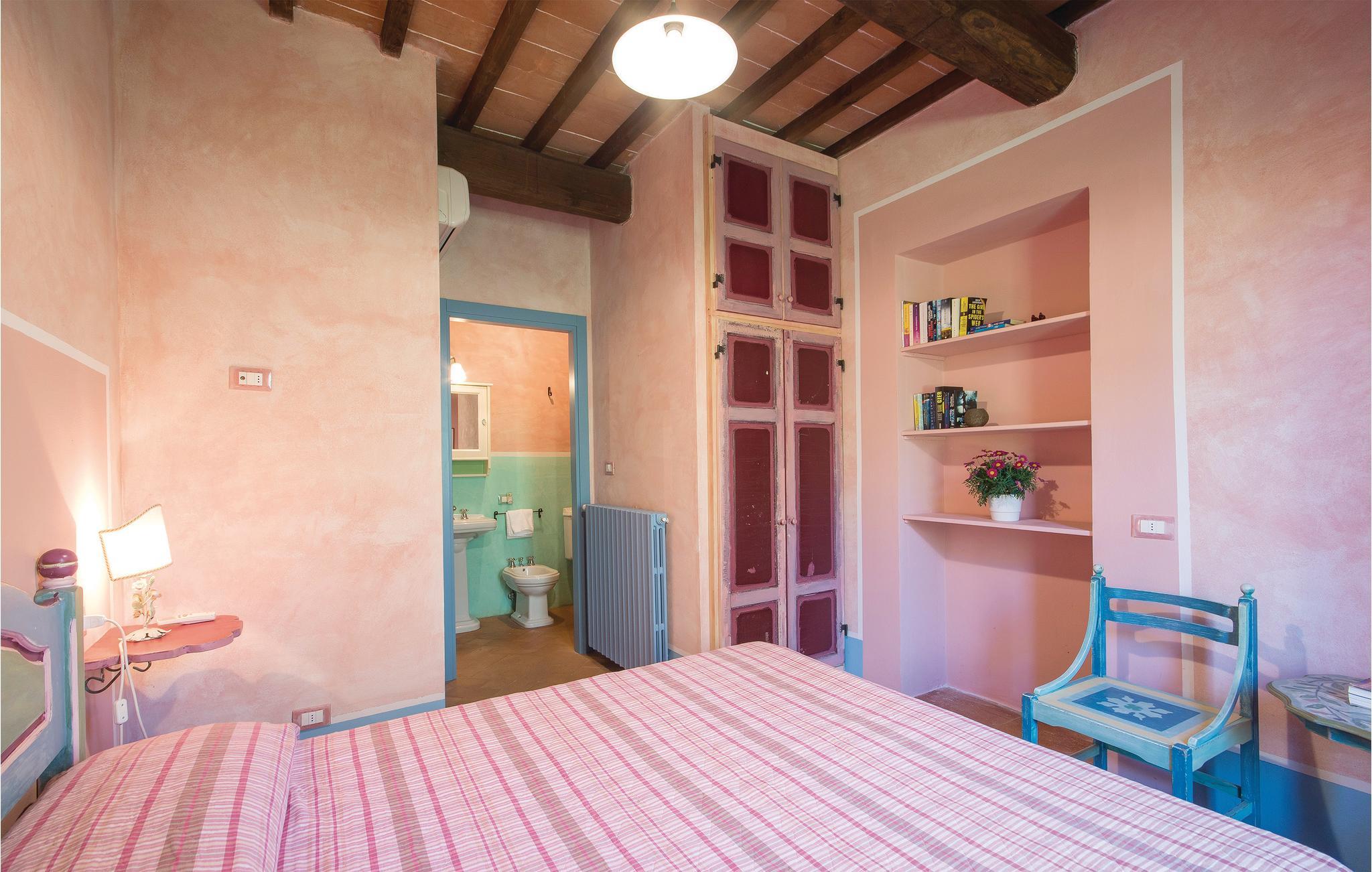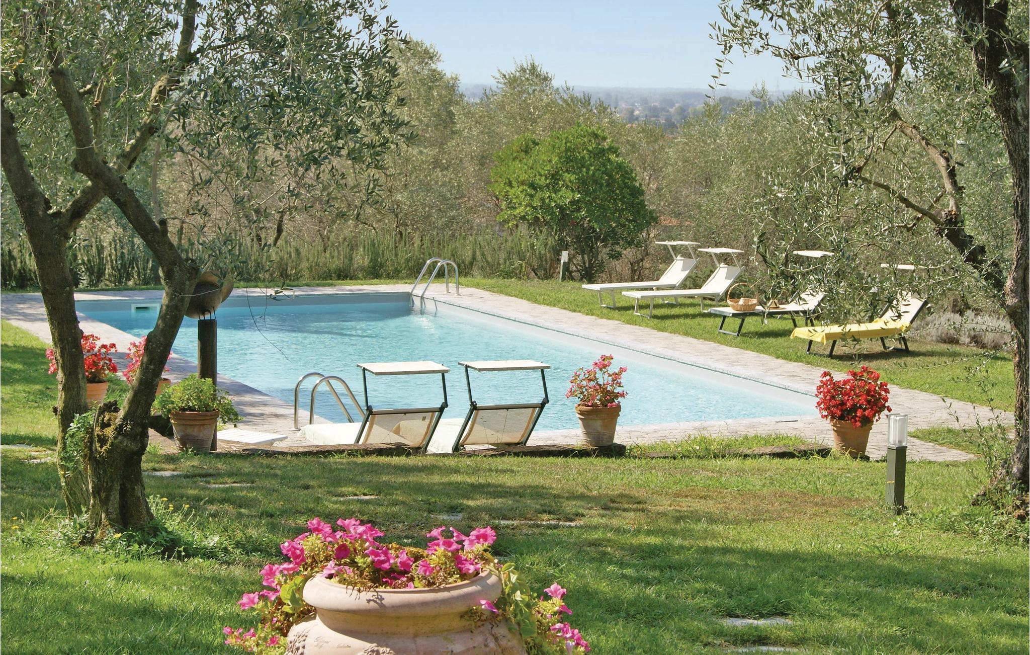 Frit beliggende landhus i de lave bakker (70 m.o.h) over kurbyen Montecantini Terme i området Valdinievole, mellem Pisa og Firenze. Huset ligger på en bakke med skøn udsigt ud ovre dalen og de omliggende bakker. Ejendommen ligger på en indhegnet 10.000 m² kuperet grund, med oliventræer, 1.200 m² er jeres have. Den dejlige pool er mellem 1 og 1,4 m dyb og på den overdækkede terrasse er der borde og stole til måltider i det fri og en stengrill hvor I kan bage helt autentiske pizzaer. I kan fiske i floden Pescia (6 km) og i en sø 10 km væk. I stueplan: over verandaen er der adgang til stuen i åben forbindelse med køkkenet, der er en stue med kamin (kun dekoration), tv med satellitkanaler og herfra også direkte udgang til haven og terrassen, dobbeltværelse med brusebad og direkte udgang til haven, dobbeltværelse med brusebad og direkte udgang til haven. Huset er indrettet i enkel rustik stil og der er fluenet for vinduerne. Skønne udflugtsmål: Montecantini Terme med berømte kurbade 4 km, Pistoia 20 km, Lucca 28 km, Pisa med sit skæve tårn 44 km, Viareggios strande 52 km og den pragtfulde kunstby Firenze 56 km. Huset ligger tæt på Pistoia, som var Italiens kulturhovedstad i 2017. Ankomst udelukkende mellem kl. 16 - 18.