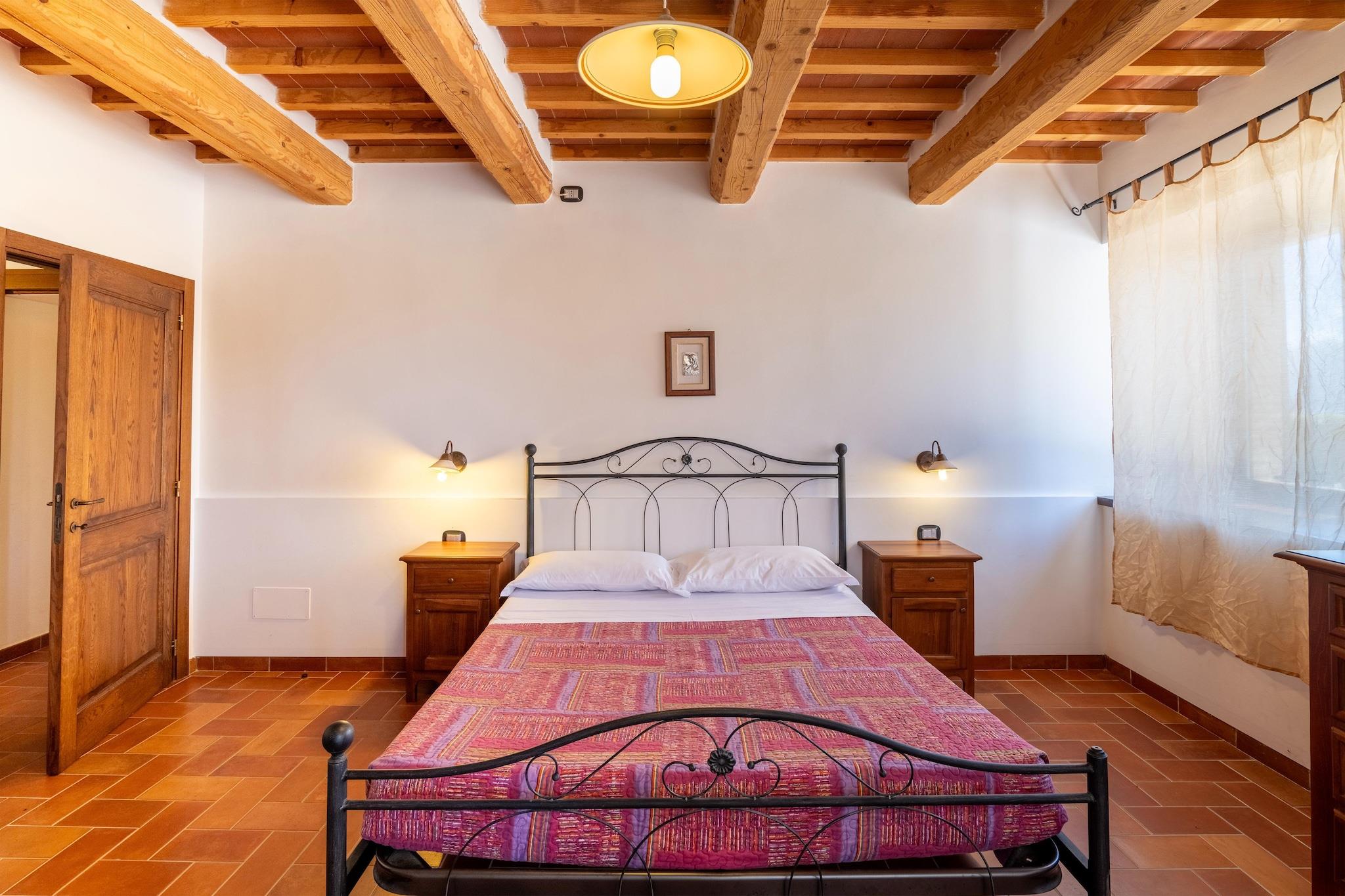 Dette smukt restaurerede landsted ligger på toppen af en fredelig bakke og tilbyder en fantastisk panoramaudsigt og rolige omgivelser for en perfekt familieferie. Stuehuset har rummelige, velindrettede lejligheder designet til komfort, der kombinerer rustik charme med moderne bekvemmeligheder. Placeringen er ideel til at udforske den kulturelle og kulinariske rigdom i Marche-regionen. Kun en kort køretur væk finder du maleriske landsbyer som Cagli, Fossombrone og Urbania samt historiske byer som Urbino og Fano. Madelskere kan nyde regionens specialiteter, herunder den berømte Acqualagna-trøffel, lokale vine fra nærliggende kældre og en række traditionelle italienske retter. Hver lejlighed har sit eget udendørsområde til udendørs spisning. En nærliggende swimmingpool med liggestole tilbyder et fredeligt sted at slappe af, mens en anden pool, kun 200 meter væk, har en bar og restaurant - perfekt til at nyde solnedgangsaperitiffer eller middage med regionale smag. En af lejlighederne, ideel til familier eller små grupper, ligger i stueetagen og omfatter fire soveværelser, to badeværelser, en rummelig stue med en dobbelt sovesofa og en udendørs spiseplads til fælles måltider i den friske luft.