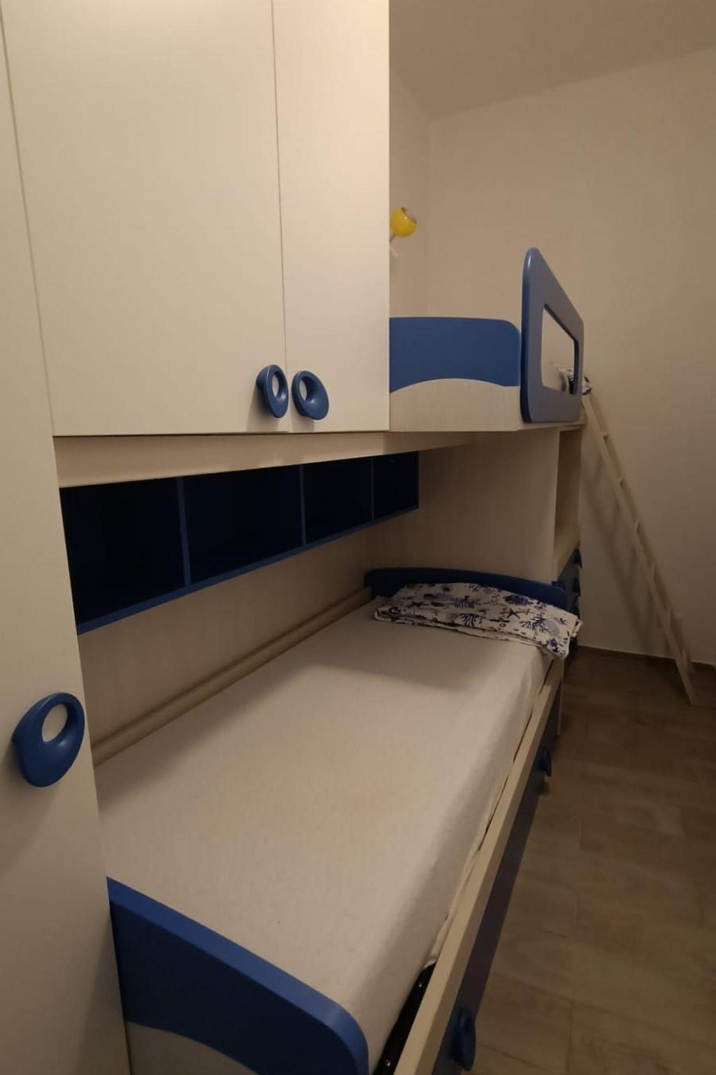The flat has a large interior space, distributed over 1 double bedroom 1 bedroom with bunk beds for adults and 1 bathroom with shower, an open-plan kitchen with a 1-person sofa, ensuring comfort and privacy for all guests. Air conditioning throughout the flat ensures a cool and pleasant environment even on the hottest summer days. Located on the first floor, it offers easy access and a practical and functional interior organisation, including a fully equipped gas kitchen for preparing delicious meals to be enjoyed together.