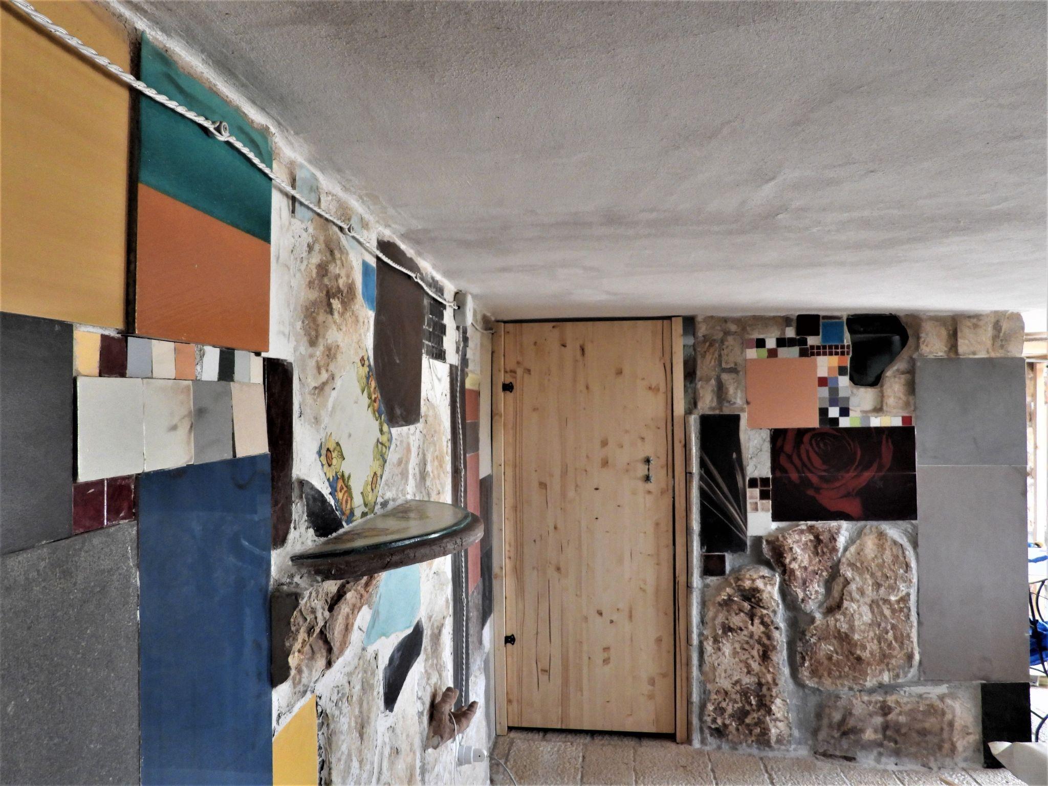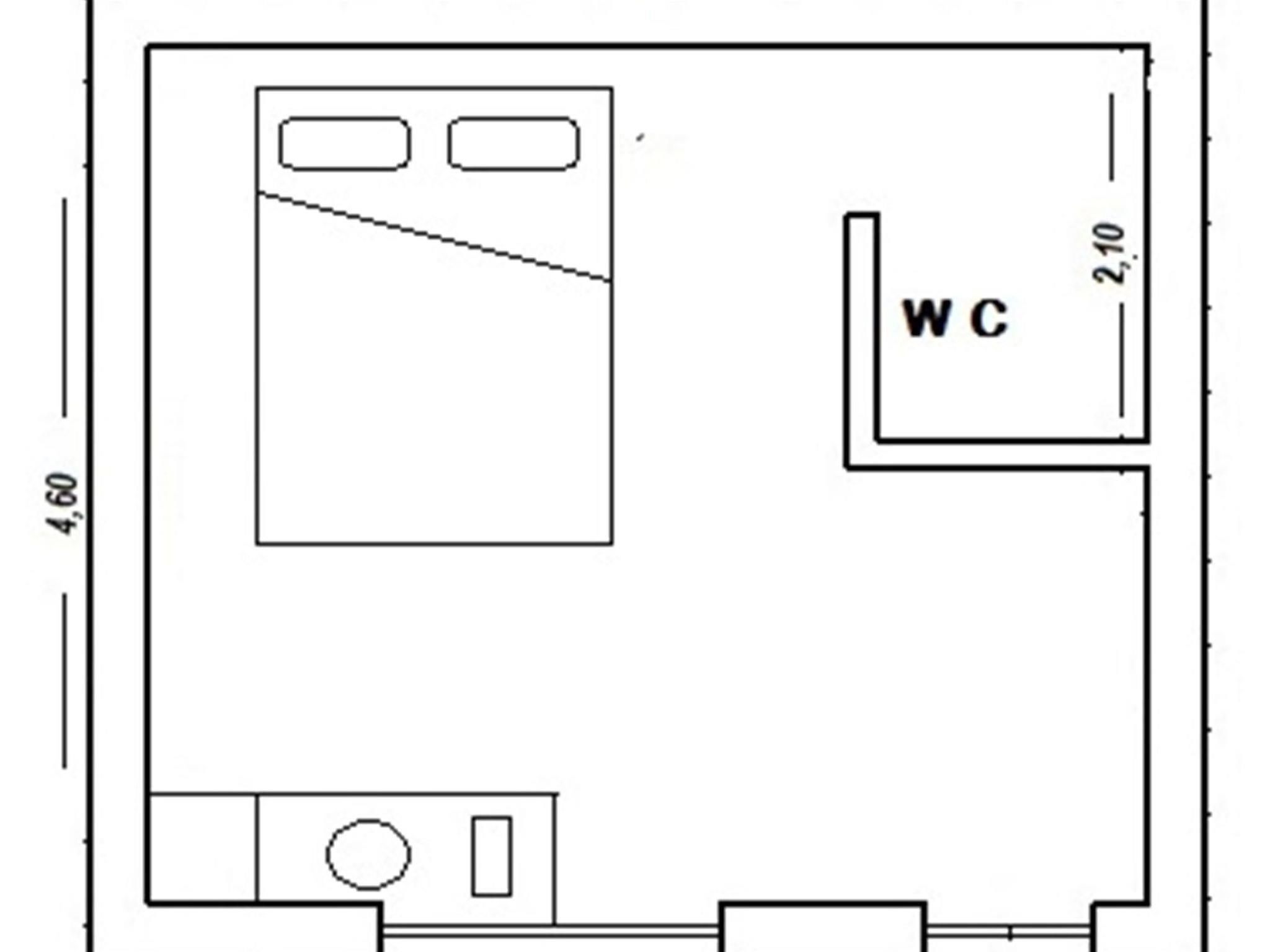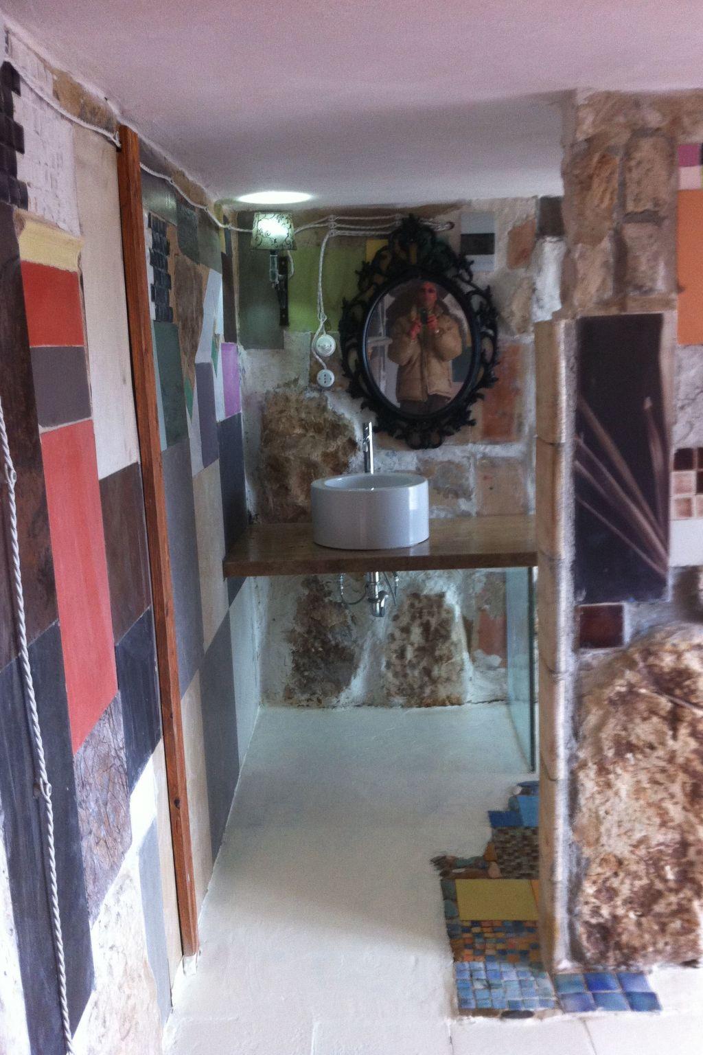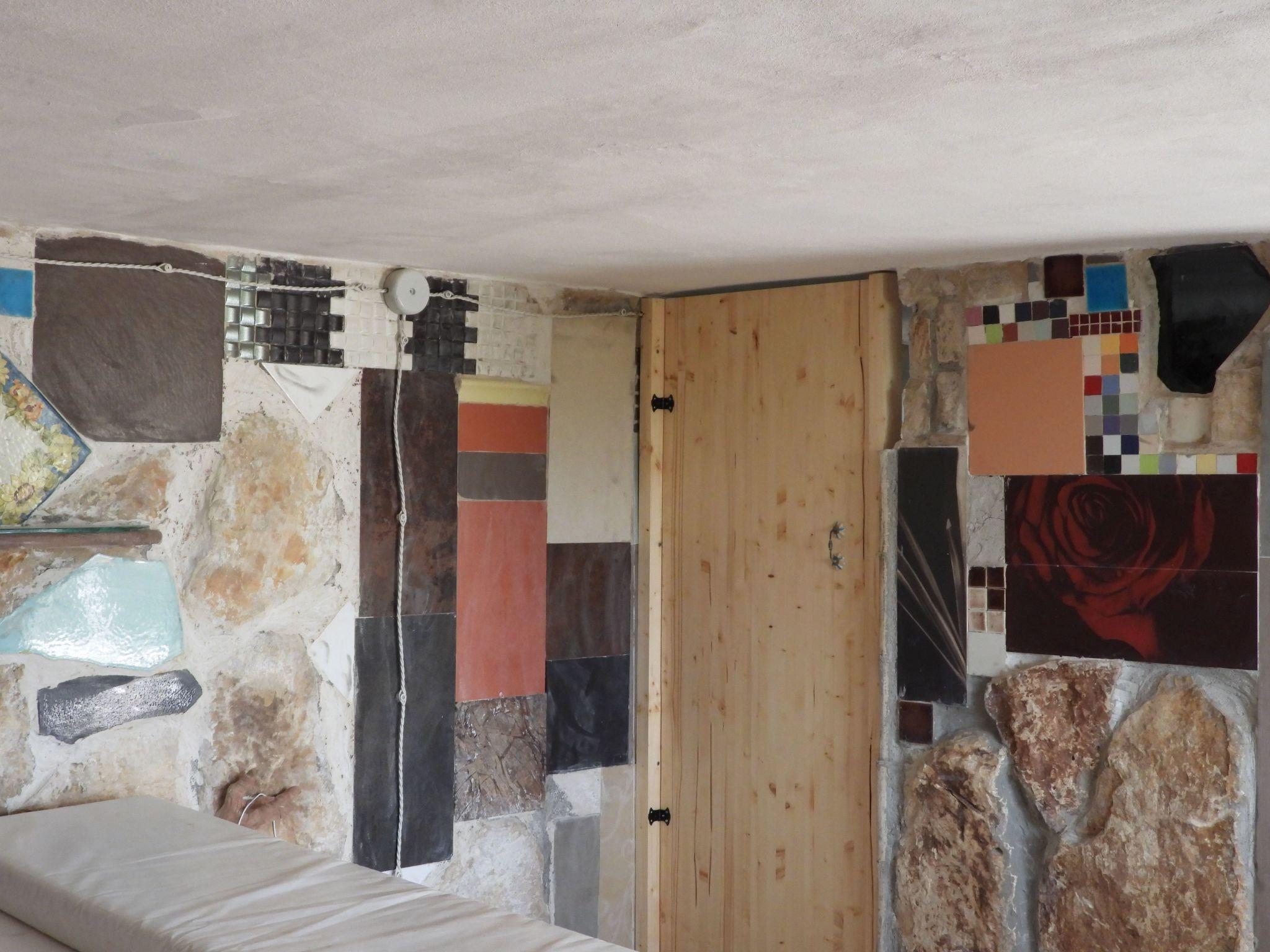 The accommodation comprises a room with a double bed, an open kitchen with simple equipment (two gas cookers and a refrigerator) and a small wooden table with three chairs. The modern bathroom with its equally original and colourful decoration includes a shower, washbasin, WC and bidet.