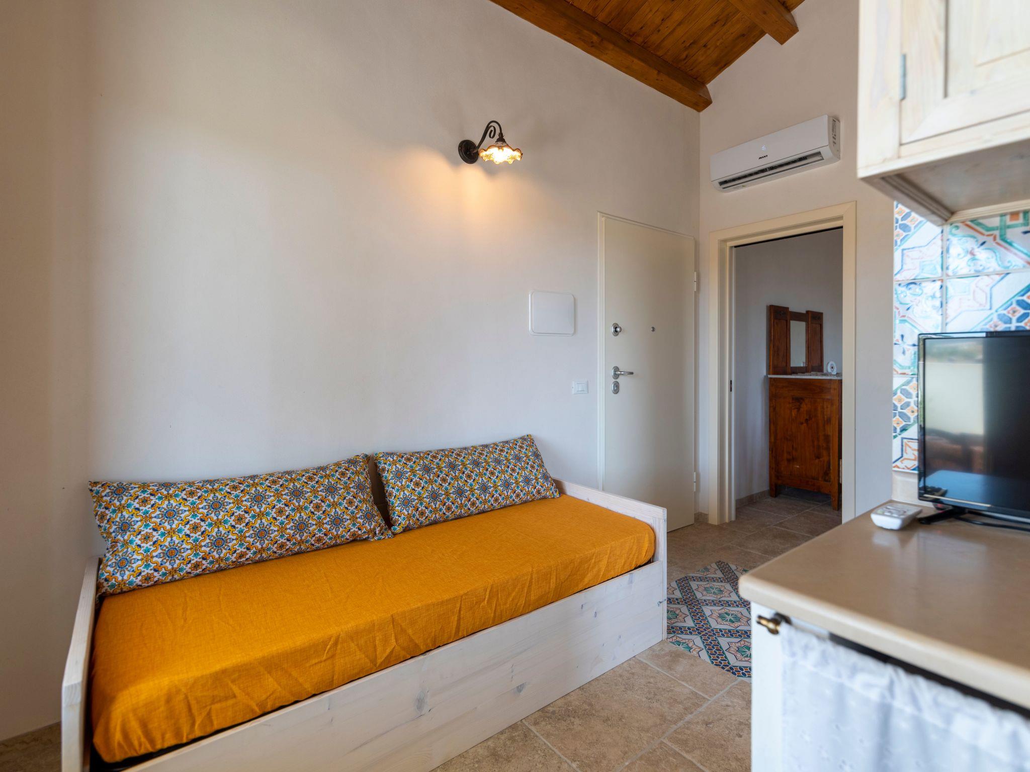Two-room apartment consisting of double bedroom, bathroom with shower, living room/kitchen with sofa bed for 1/2 person. Brickwork kitchen with induction hob, dishwasher, microwave oven, with all the accessories and utensils needed for cooking. The house is mainly furnished with poor antique furniture, with great attention to detail (ceramics from S. Stefano di Camastra, period photos, typical dishes), accessories made by local craftsmen