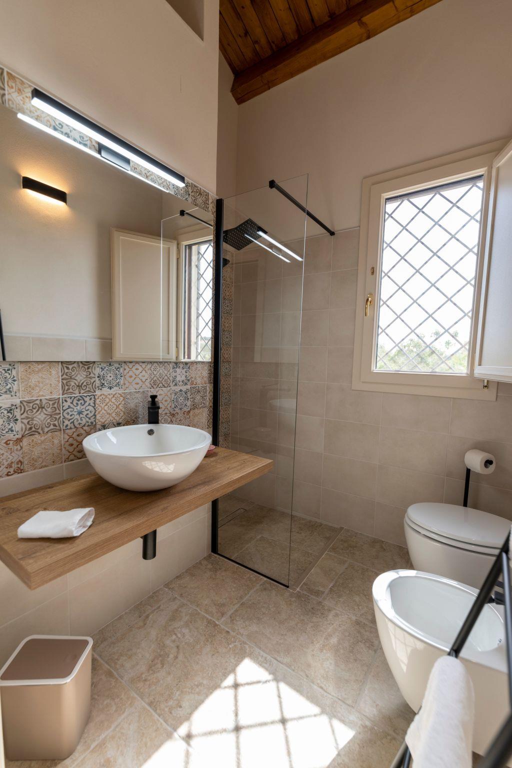 The house recalls the architectural forms of a Sicilian Baglio, an enclosed country residence with rustic annexes and was built with the latest energy-saving criteria and is powered by a photovoltaic system. Near the baglio, guests will find a small vegetable garden and orchard offering produce according to seasonality. There is ample covered parking with a charging station for electric vehicles. A detailed guide is available for guests to enjoy their holiday to the full and our support is available to guide those interested in exploring the food and wine of the area